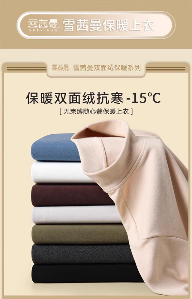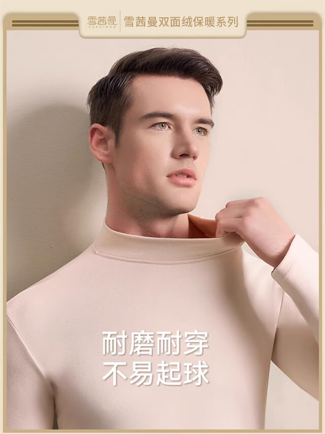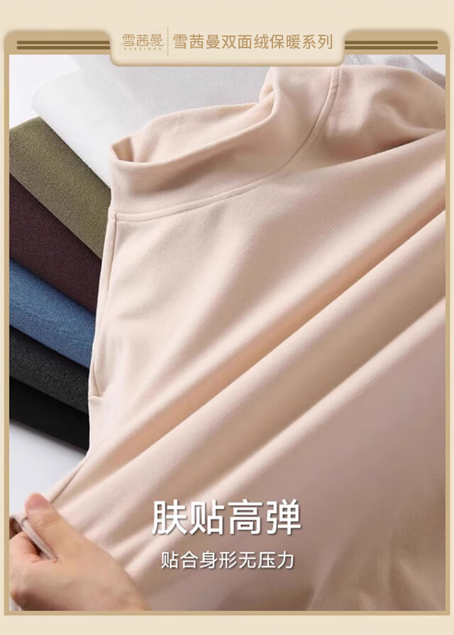 Xue Qianman's bottoming shirt men's new autumn velvet mid-high collar long-sleeved double-sided brushed fashion versatile warm top