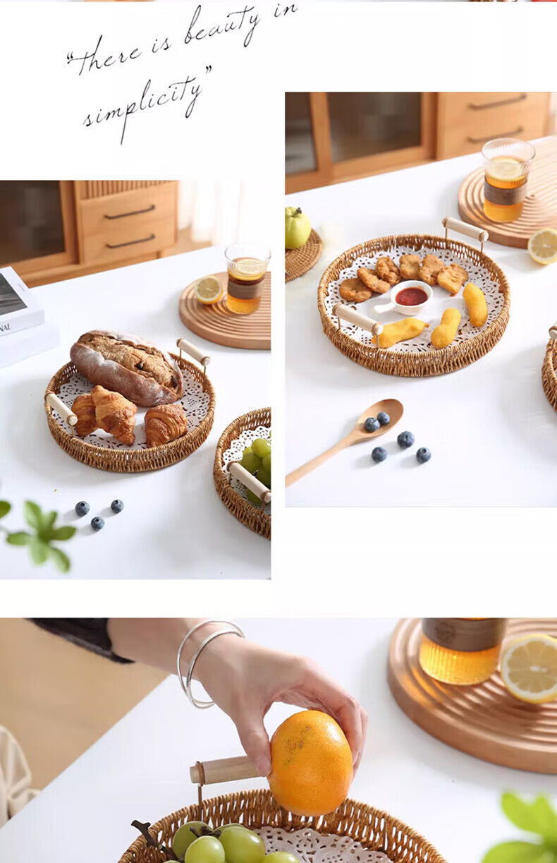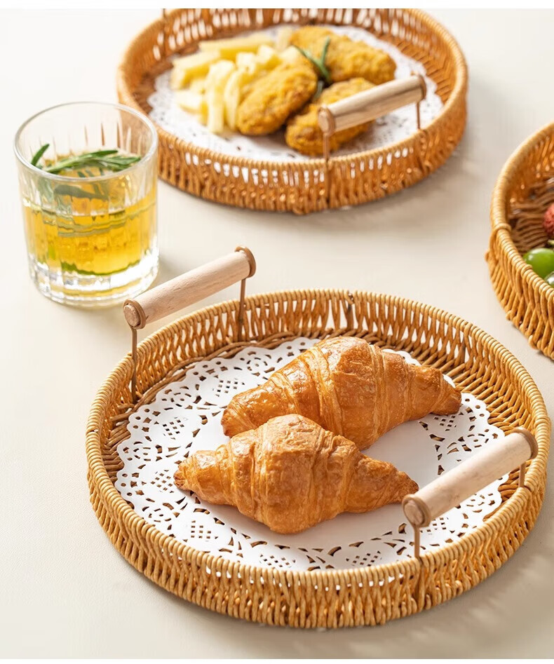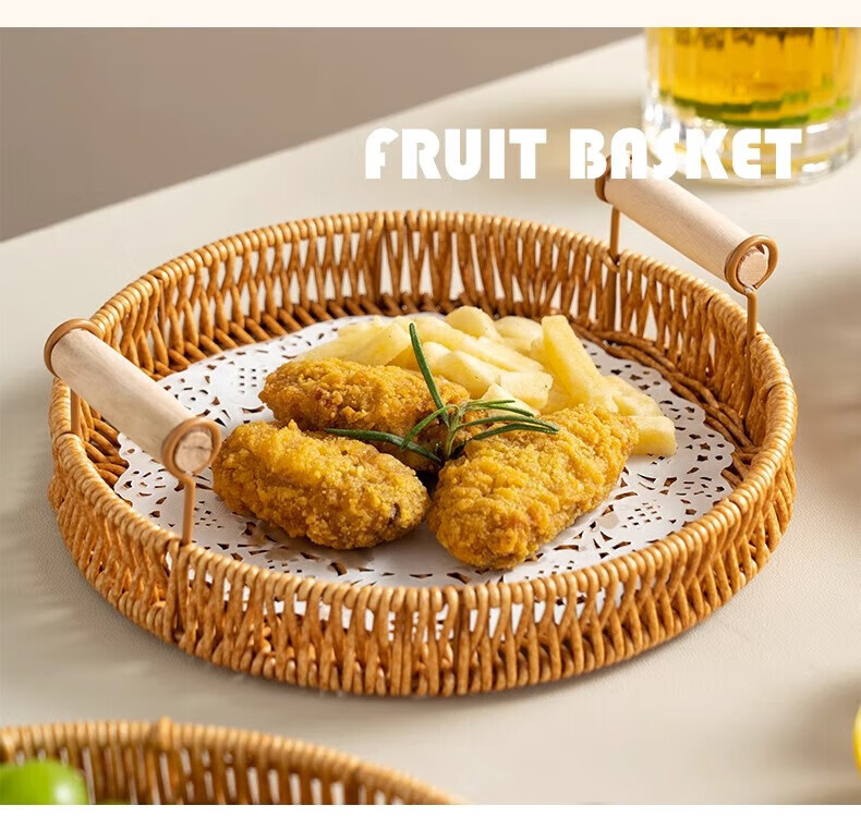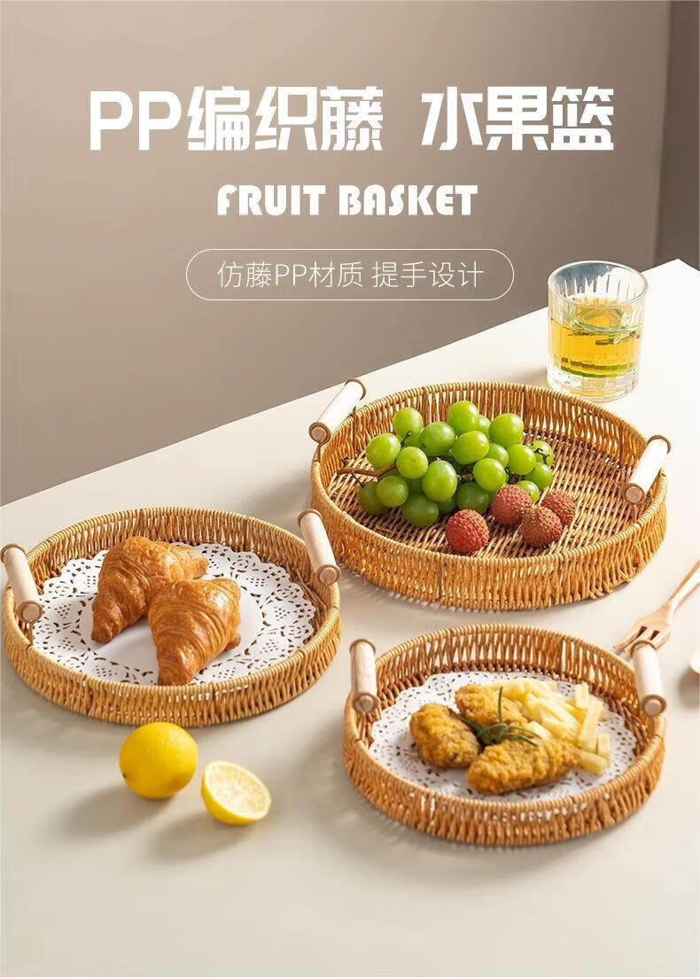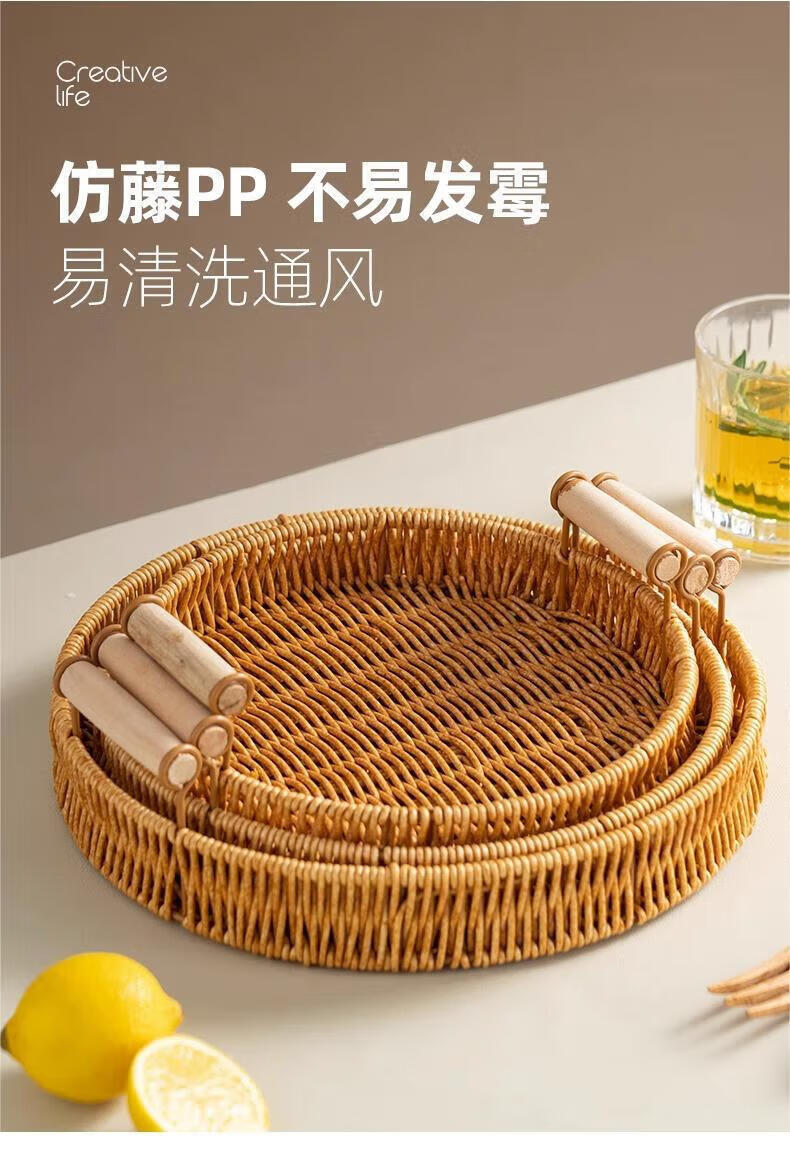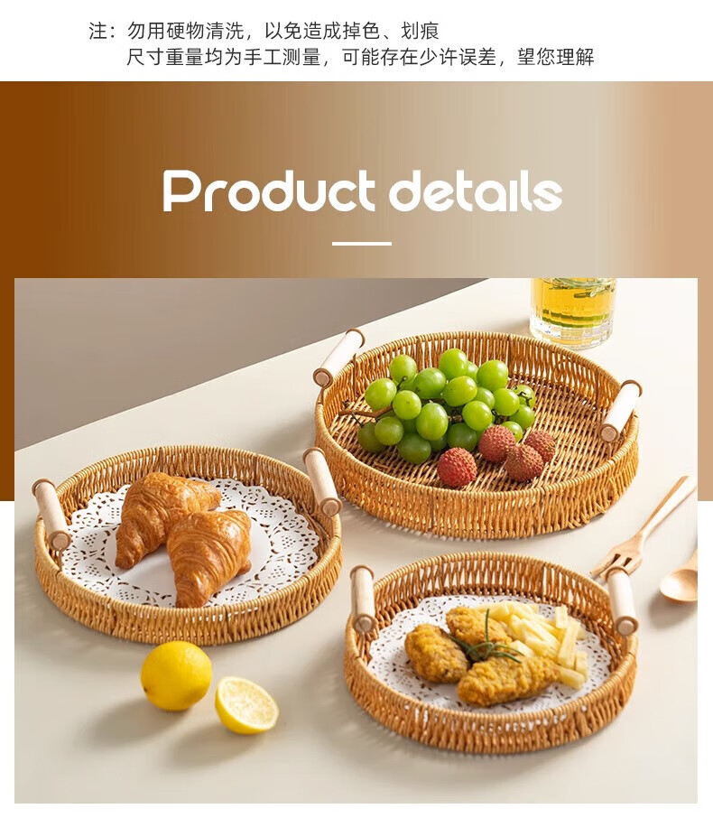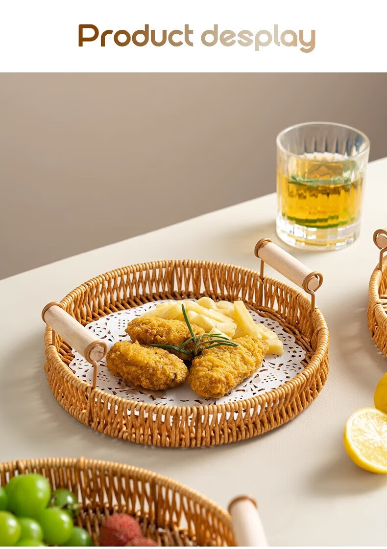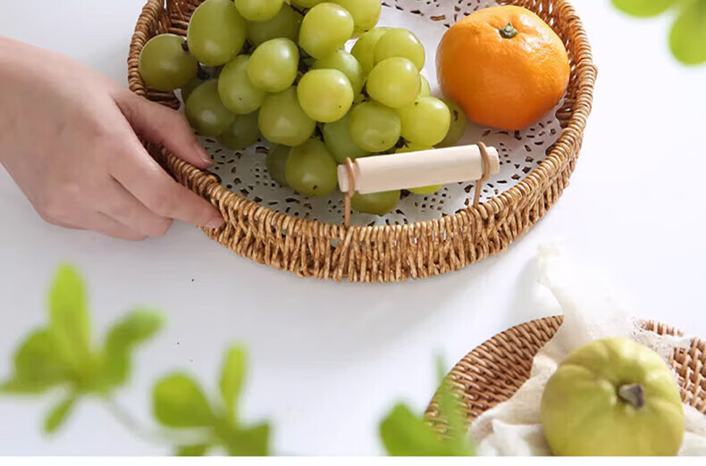 Yijia (IJARL) rattan fruit plate, fried plate, living room dry fruit plate, snack plate, outdoor steamed bun basket tray, rattan fruit plate, large size