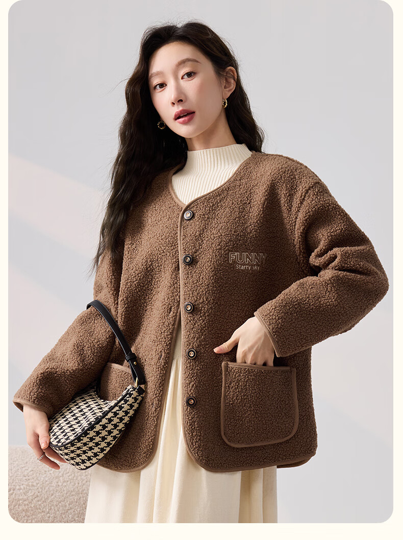 Langsha Lamb Plush Jacket Women's 2024 Autumn and Winter Soft and Lazy Lady's Small Fragrance Wind Polar Fleece Small Jacket Top for Women