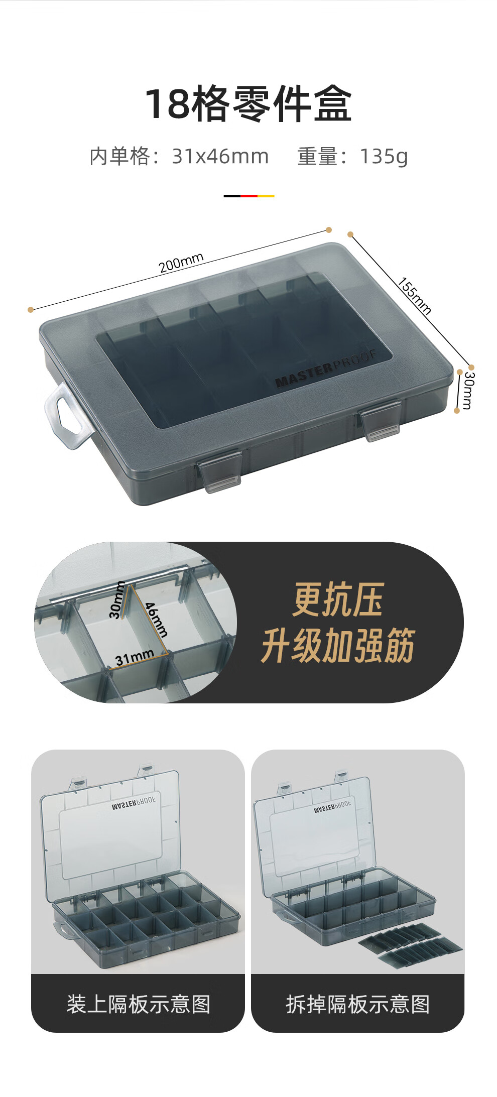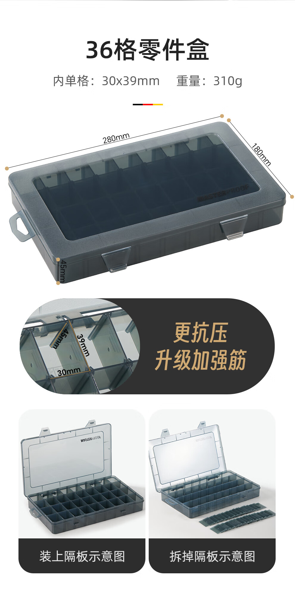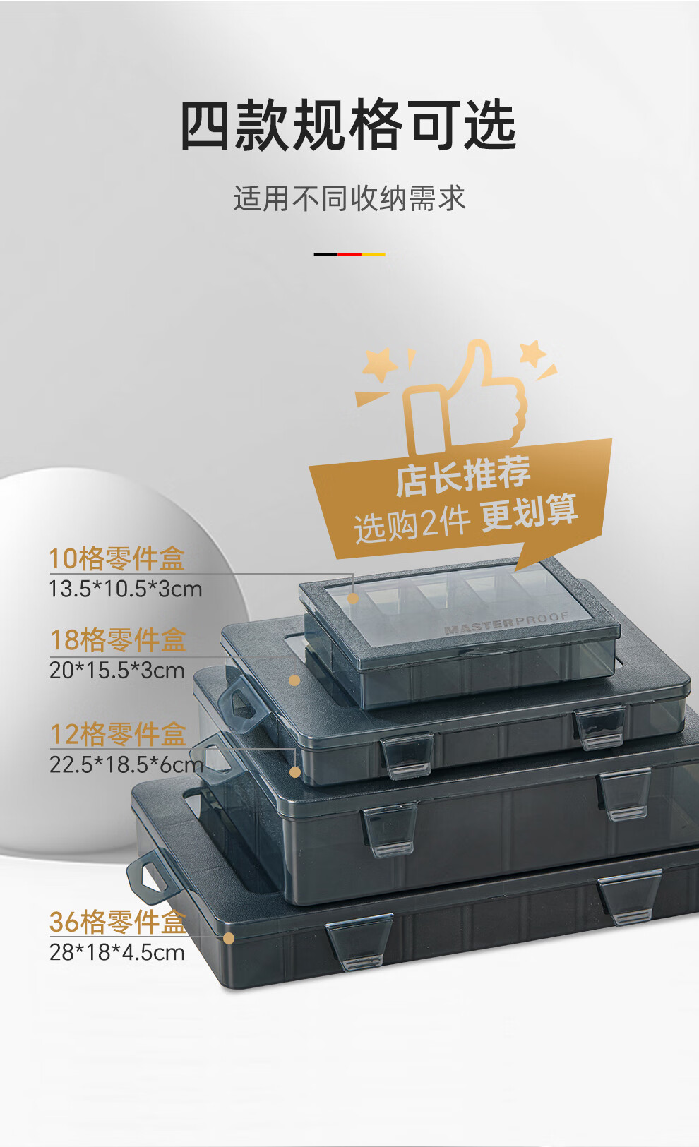 MASTERPROOF 36-grid screw storage box small box Lego parts compartment storage box detachable material box drill bit storage box