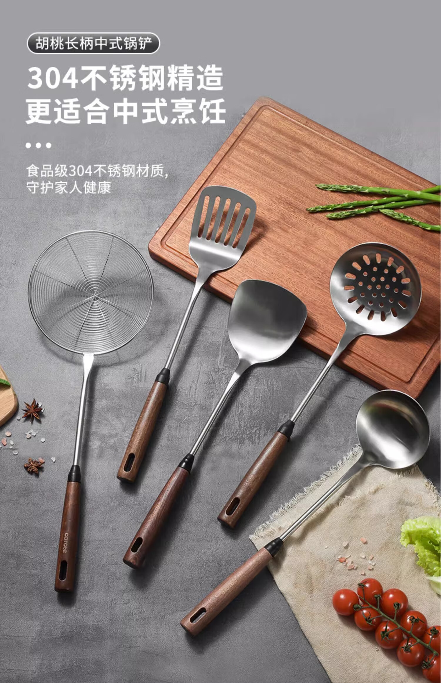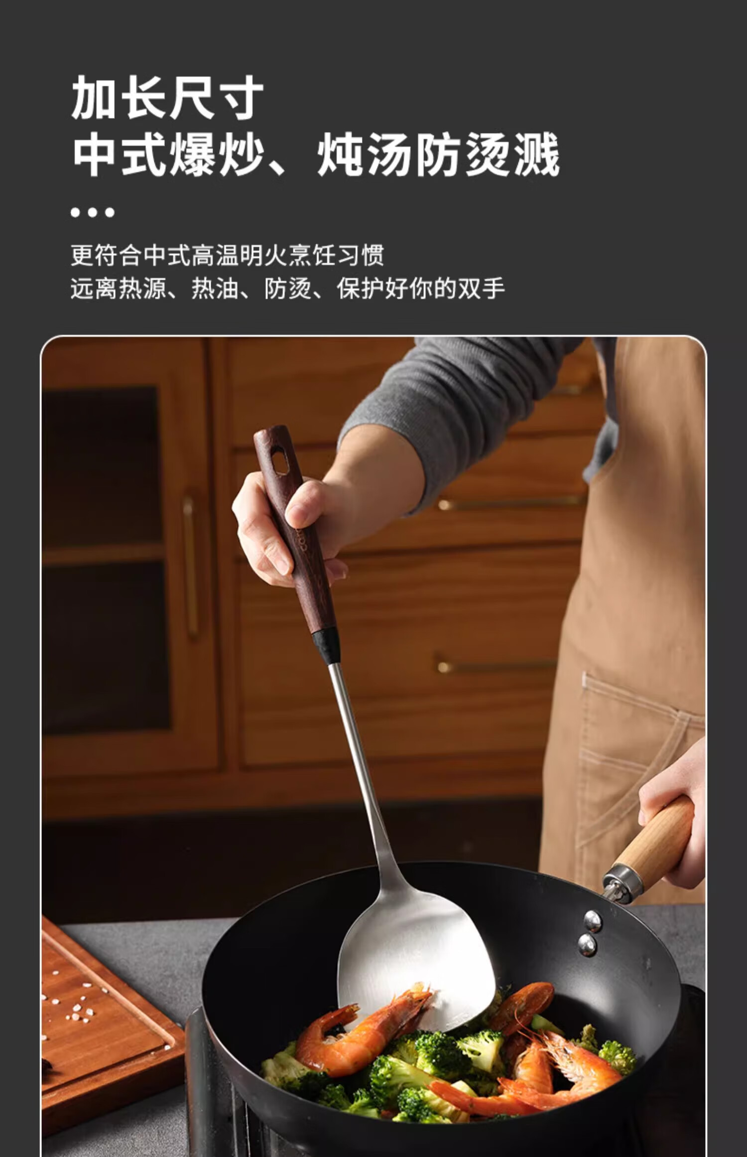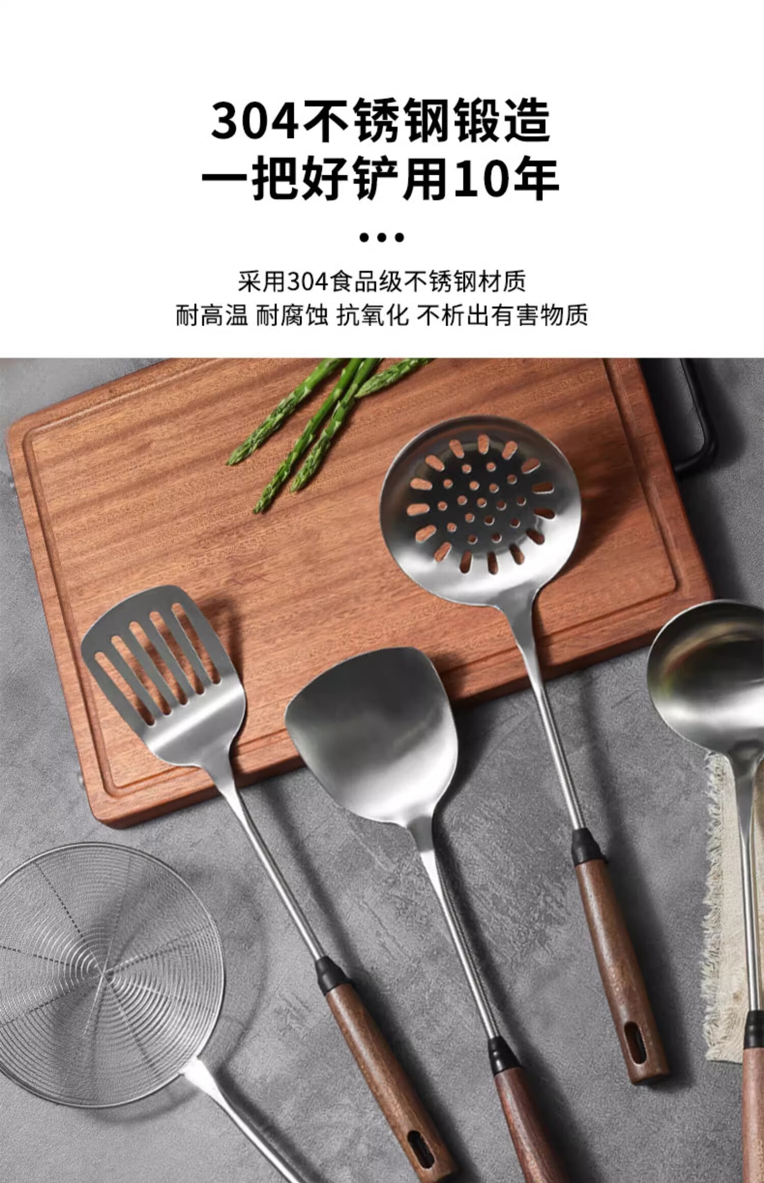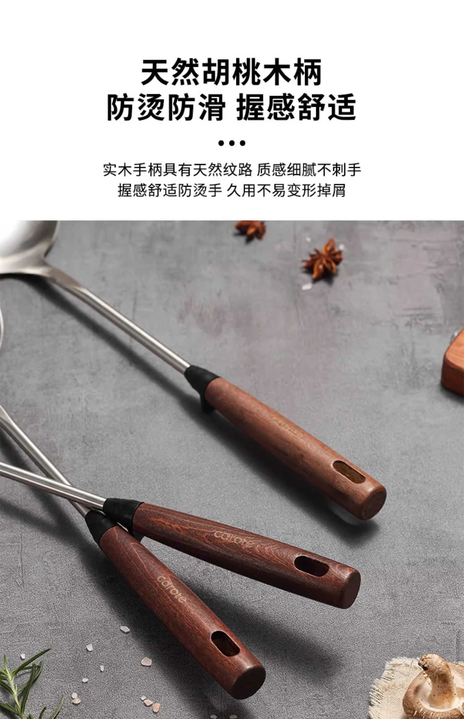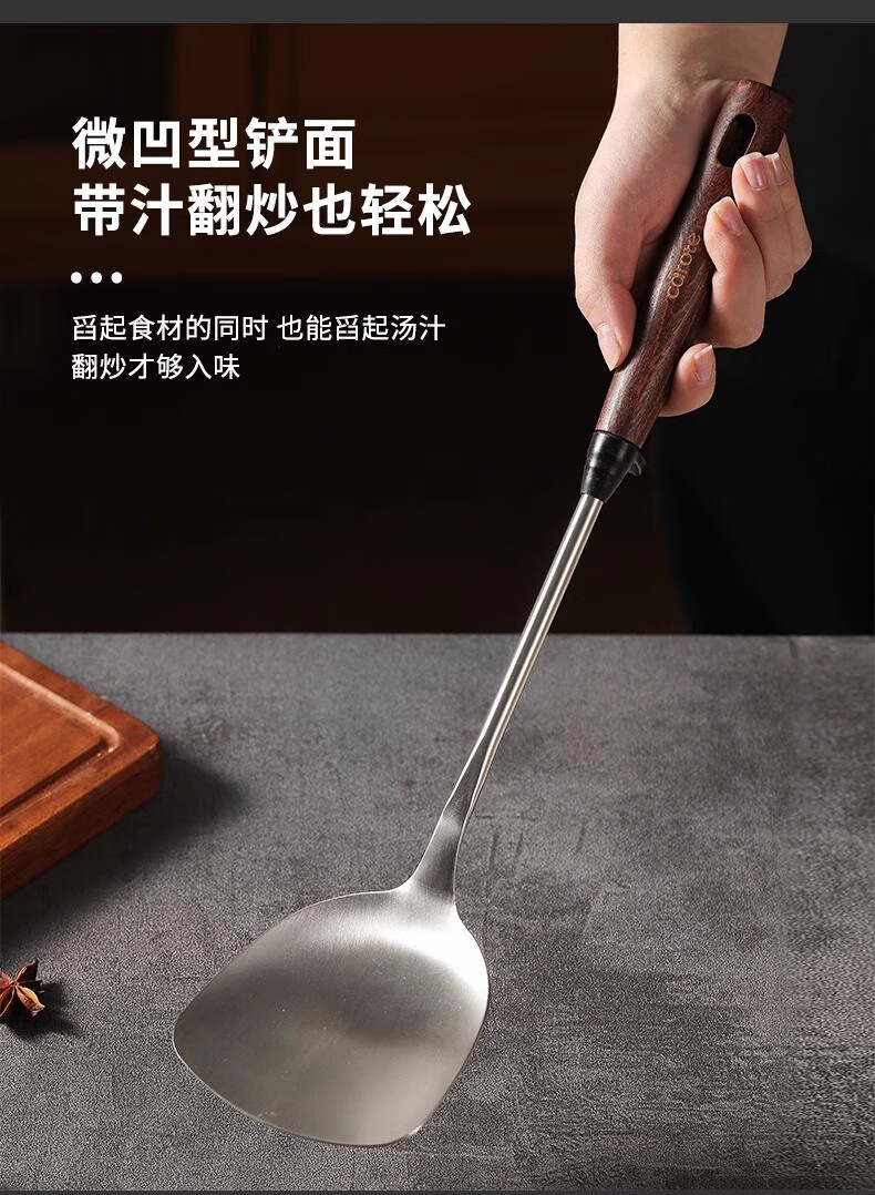 Carrot stainless steel spatula household cooking spatula walnut handle 304 iron spatula frying spoon walnut spatula