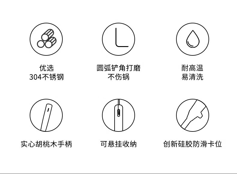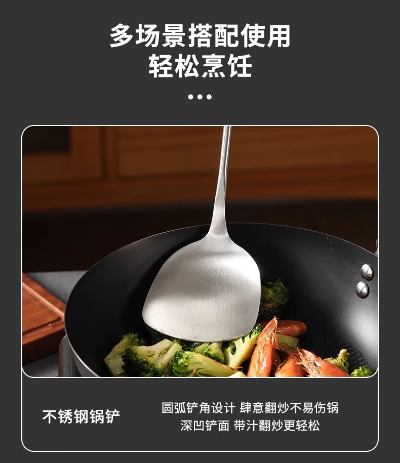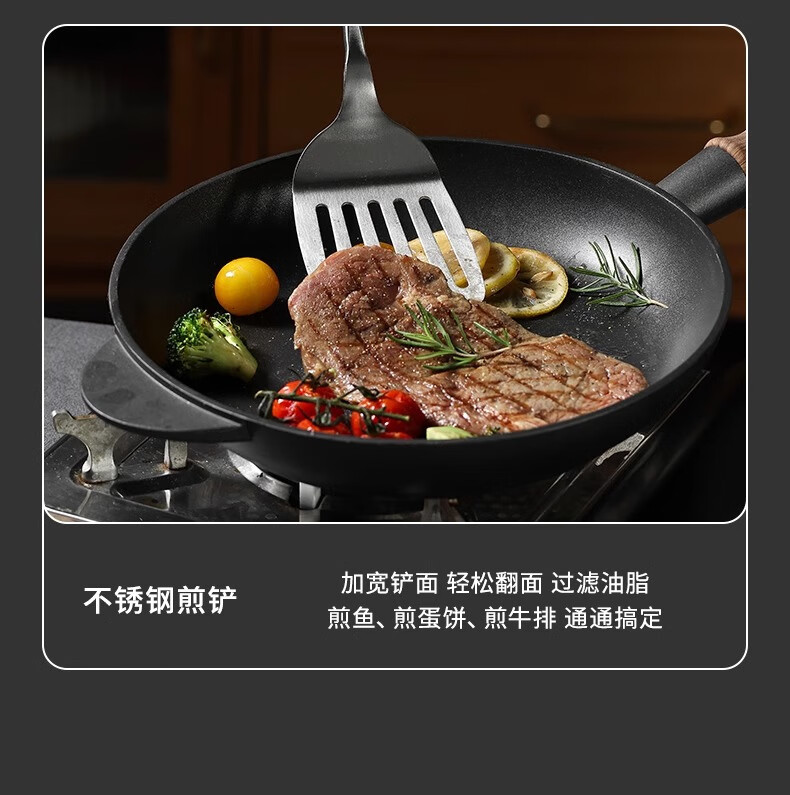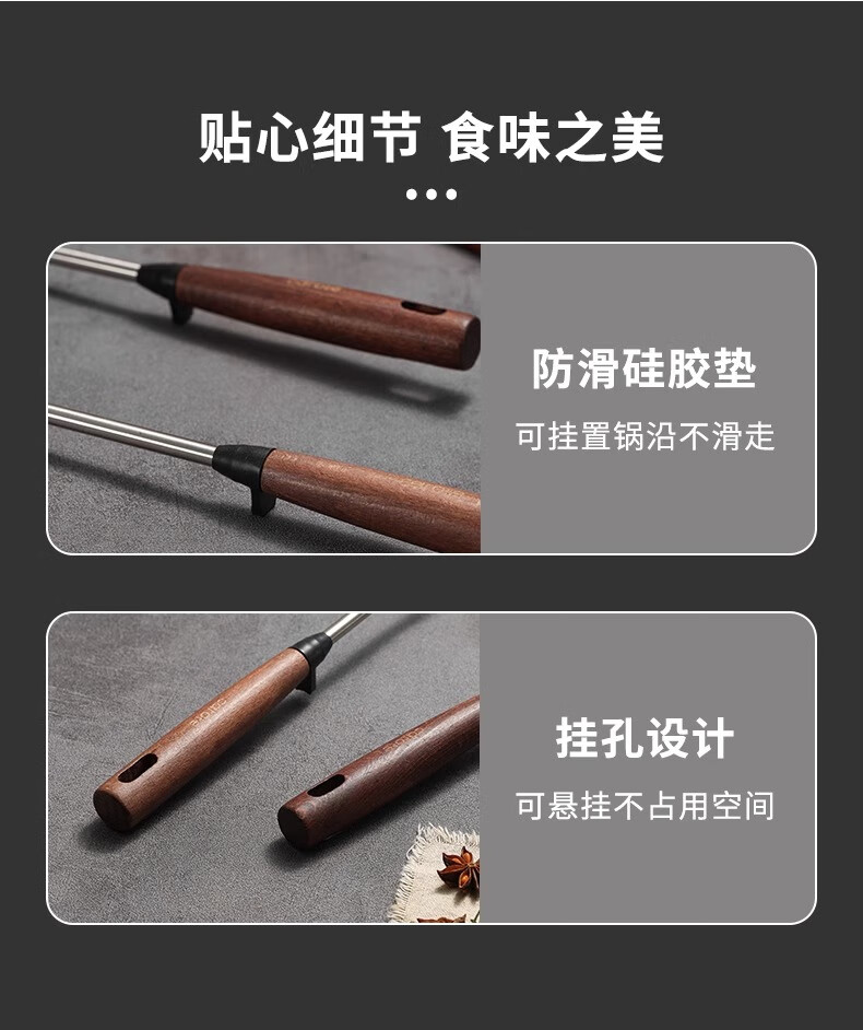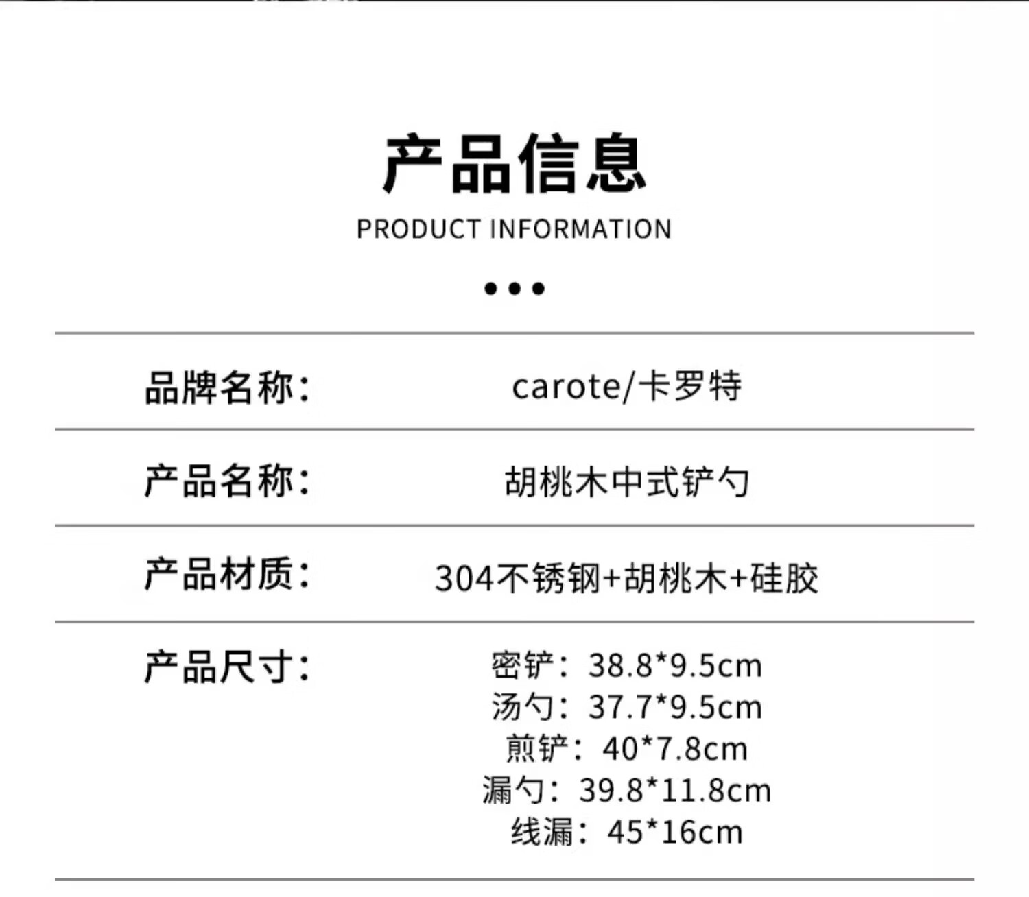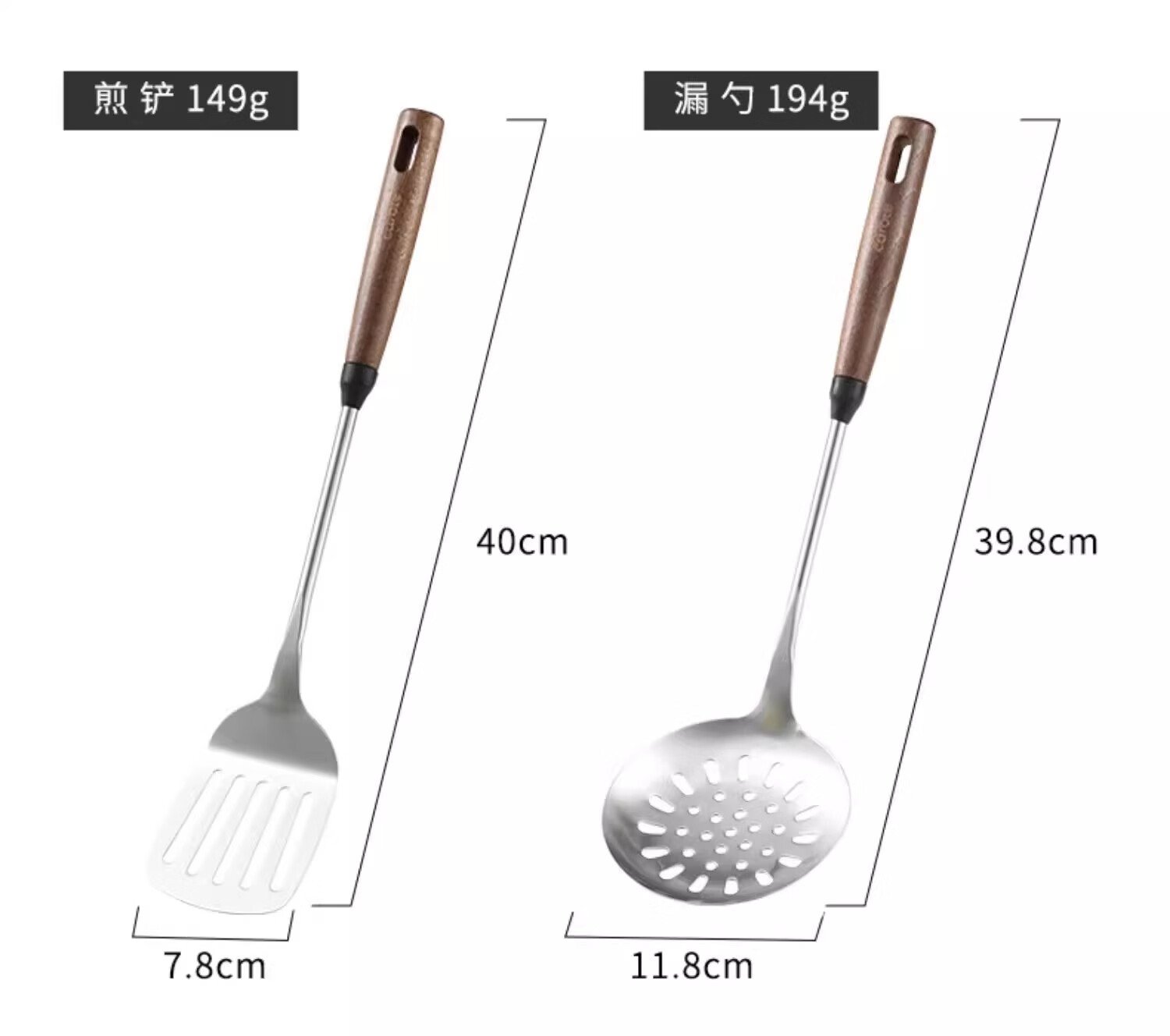 Carrot stainless steel spatula household cooking spatula walnut handle 304 iron spatula frying spoon walnut spatula