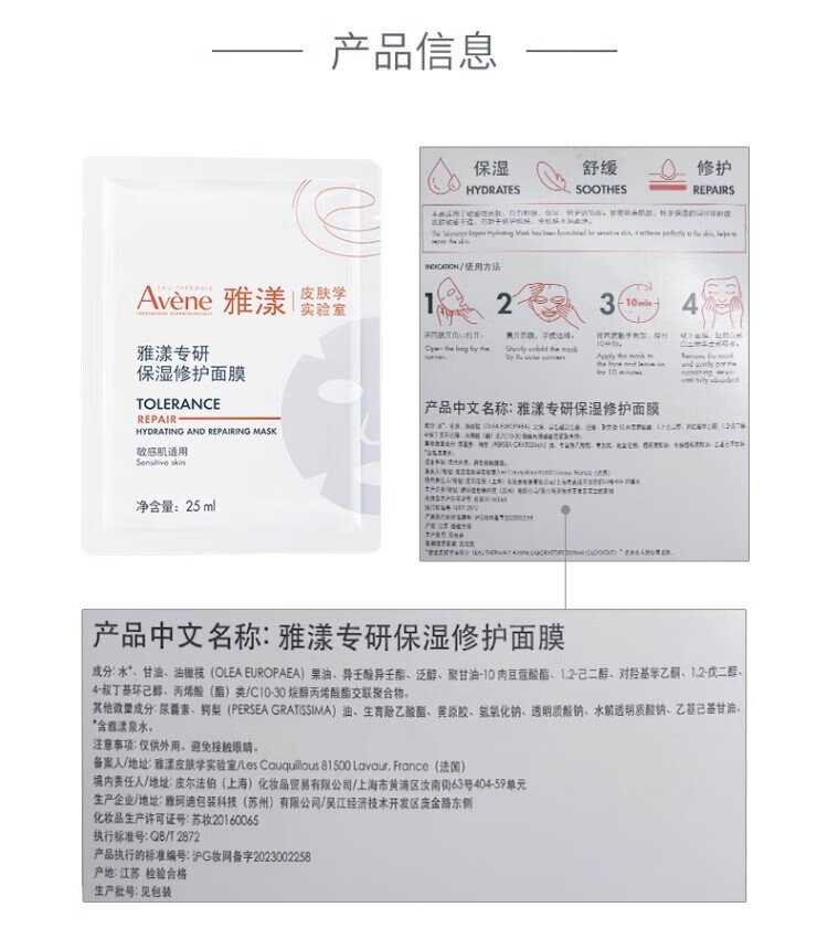 Avène specializes in moisturizing and repairing facial mask 25ml*5 pieces, soothes redness, refines and brightens, is on clearance.