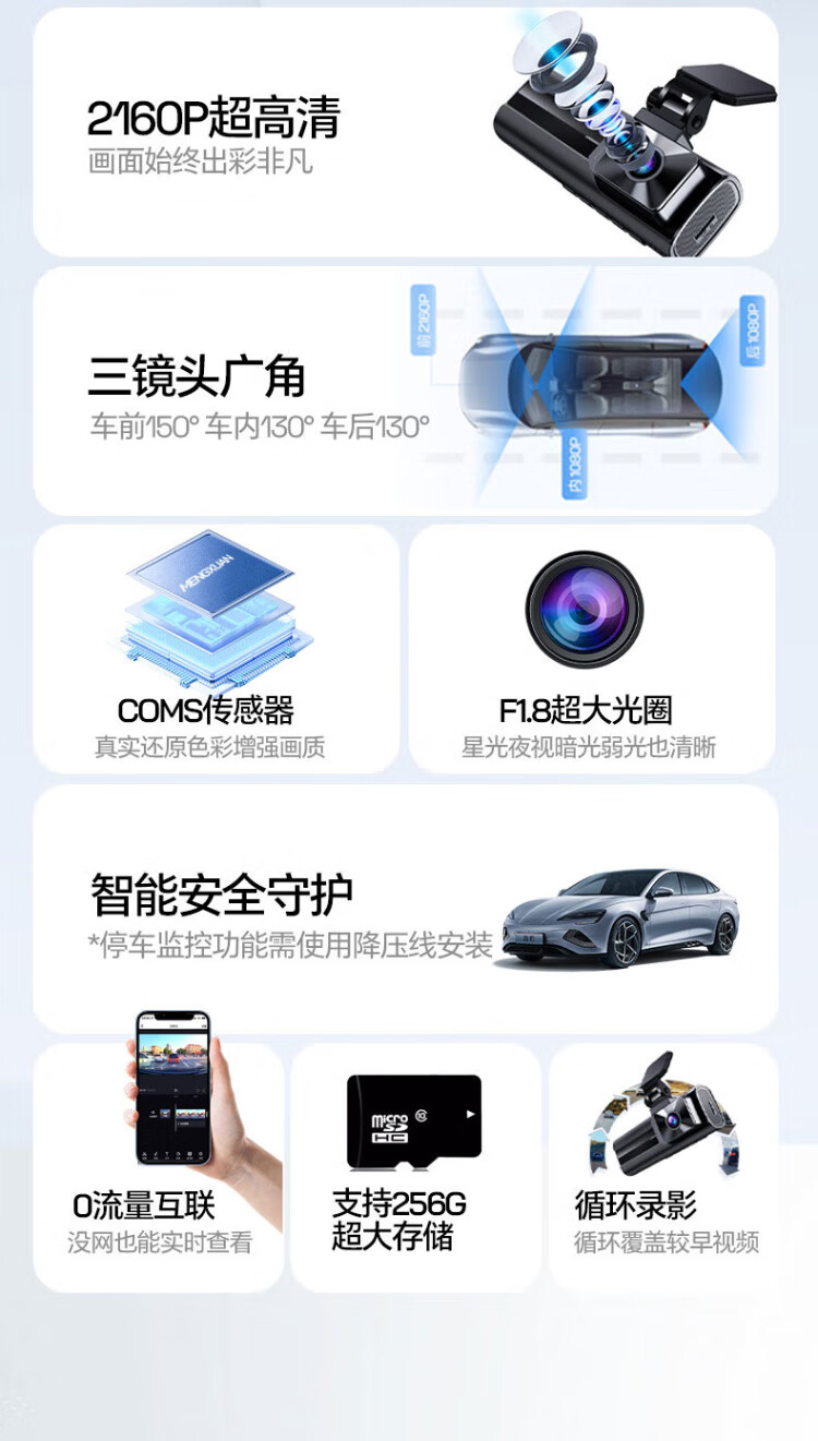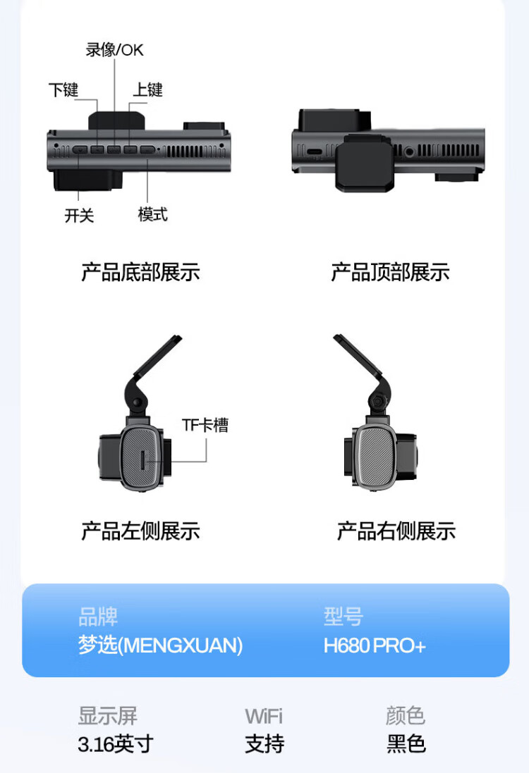 Mengxuan online car-hailing driving recorder panoramic 360-degree 24-hour recording of dual-recording parking monitoring and reversing images inside and outside the car