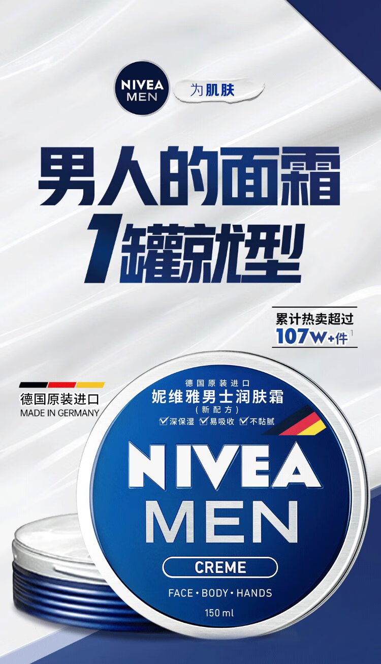 NIVEA Men's Moisturizer 150ml*2 Hydrating and Moisturizing Cream Skin Care Products Refreshing and Non-greasy