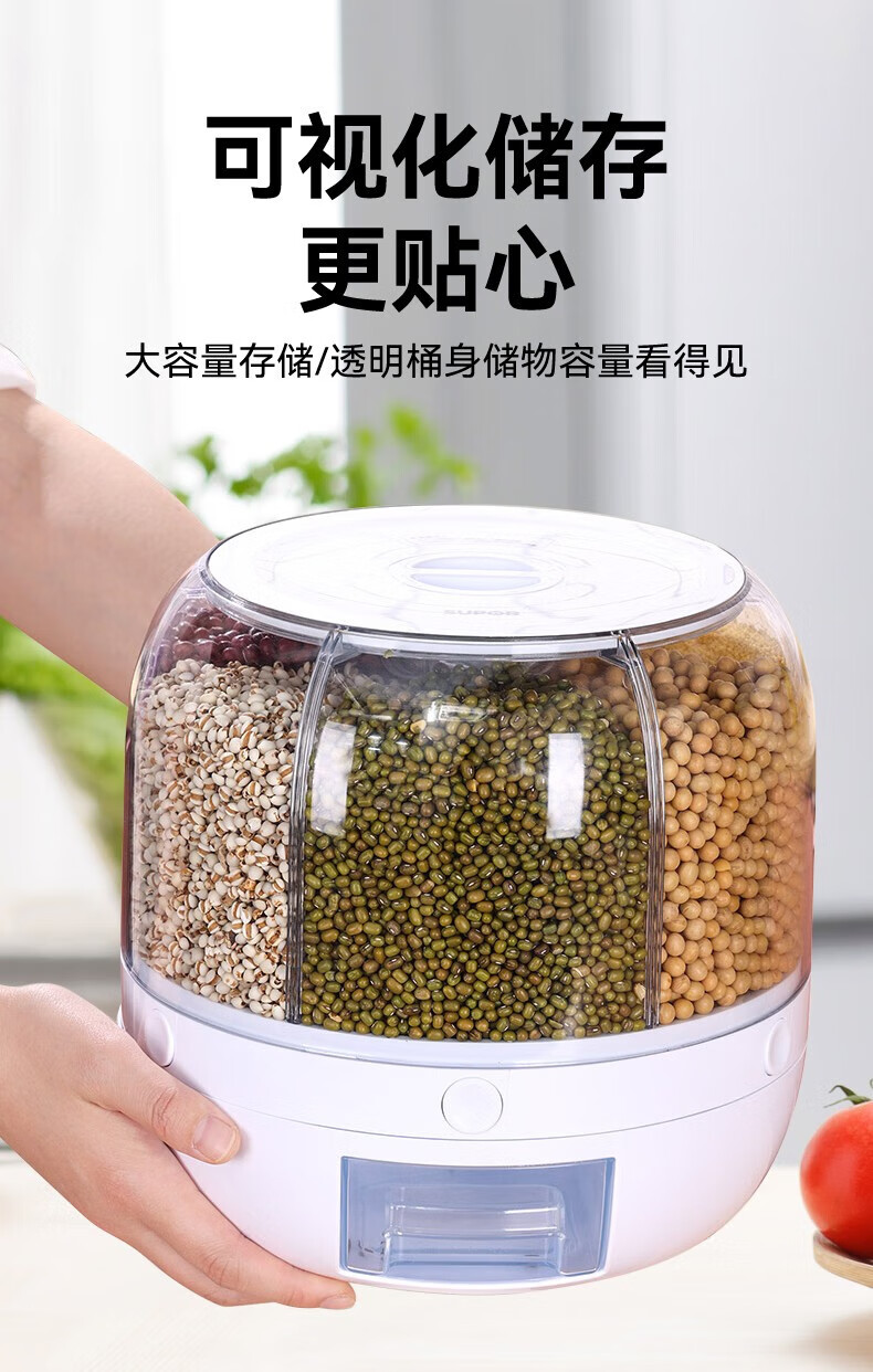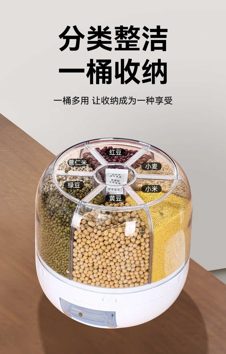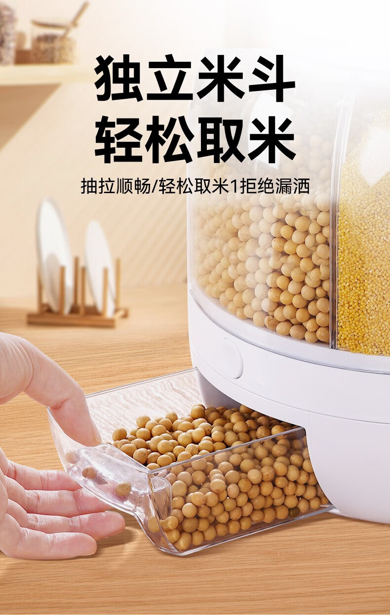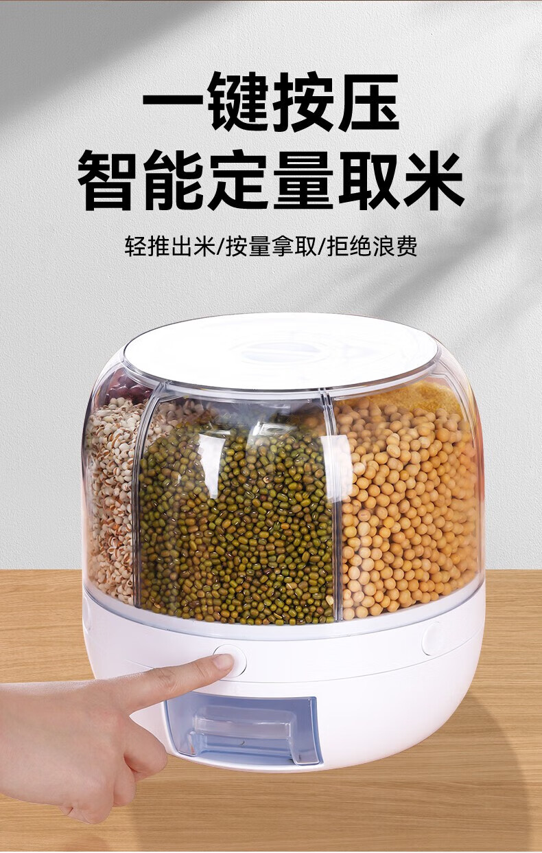 No Mi high-quality rice buckets, insect-proof and moisture-proof rice storage boxes, rotating push-type rice-discharging large-capacity compartmentalized grain storage boxes