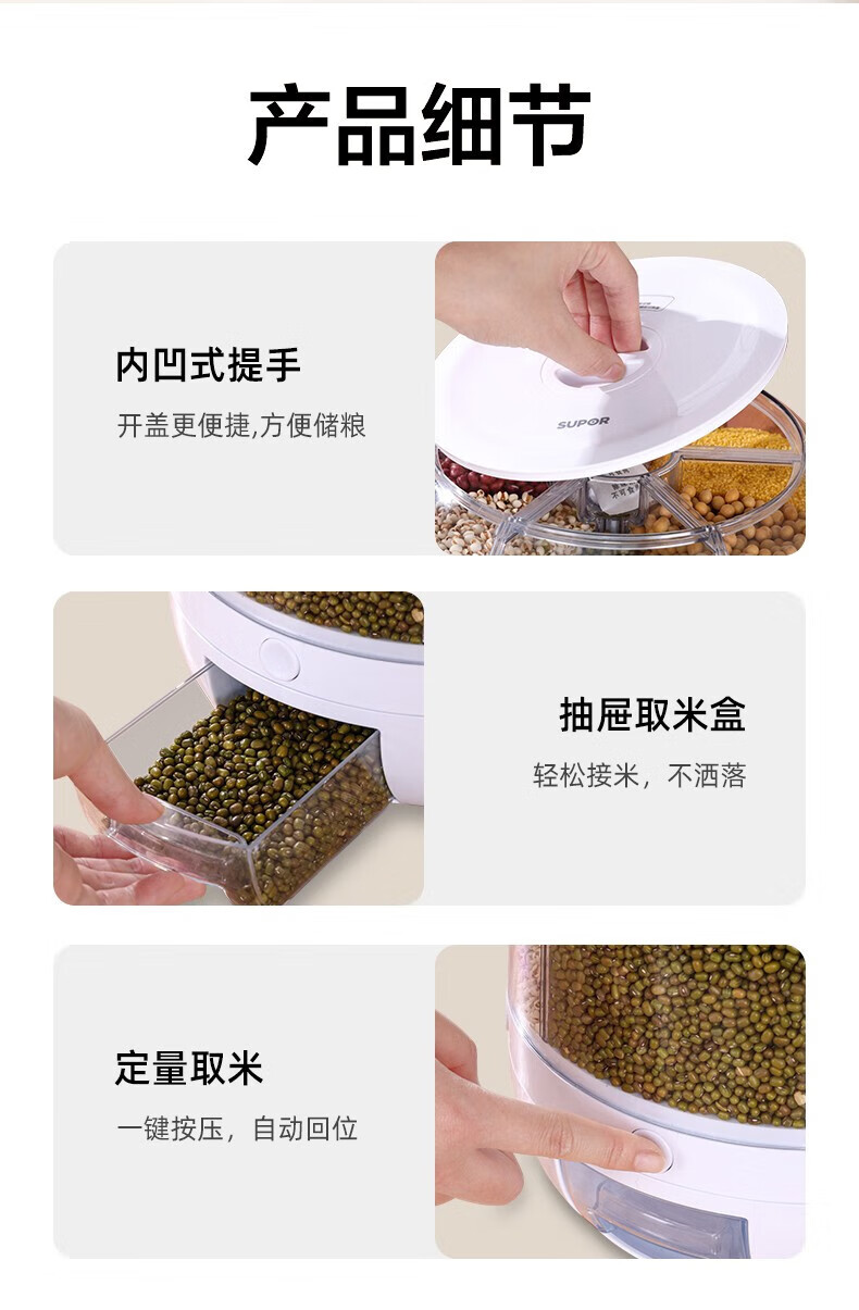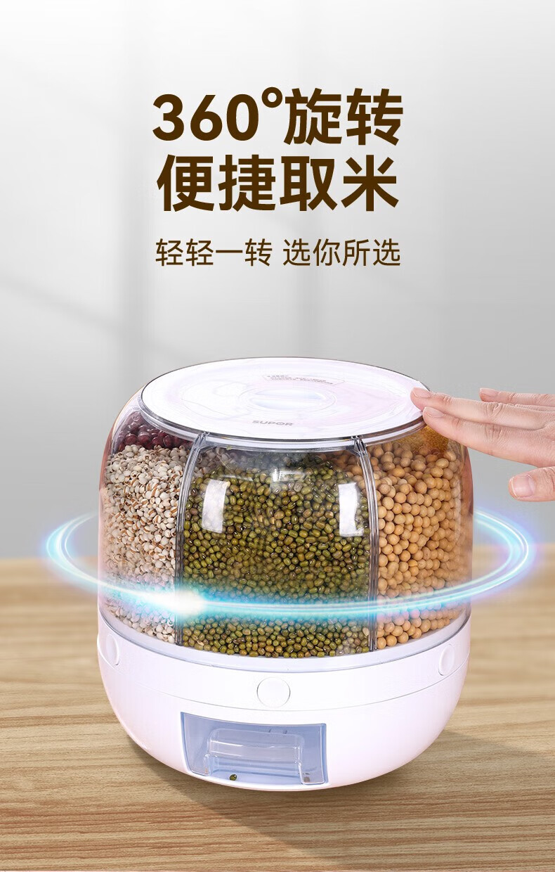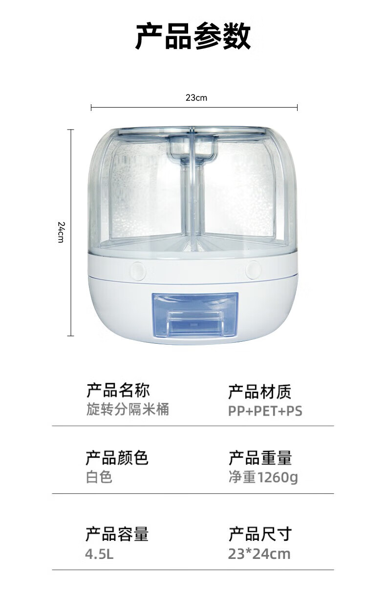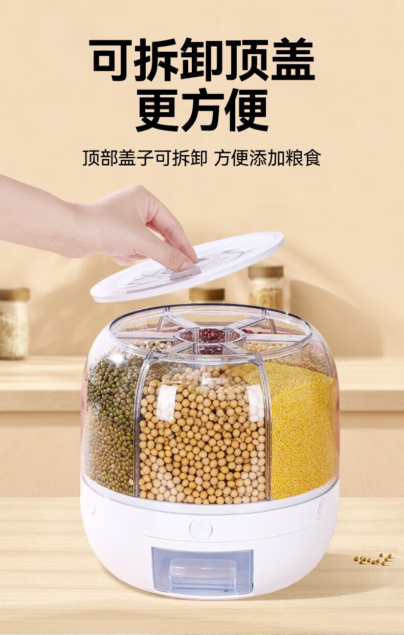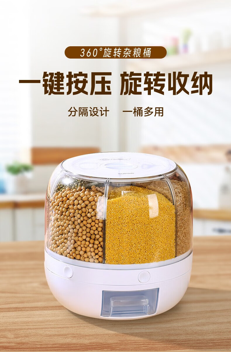 No Mi high-quality rice buckets, insect-proof and moisture-proof rice storage boxes, rotating push-type rice-discharging large-capacity compartmentalized grain storage boxes