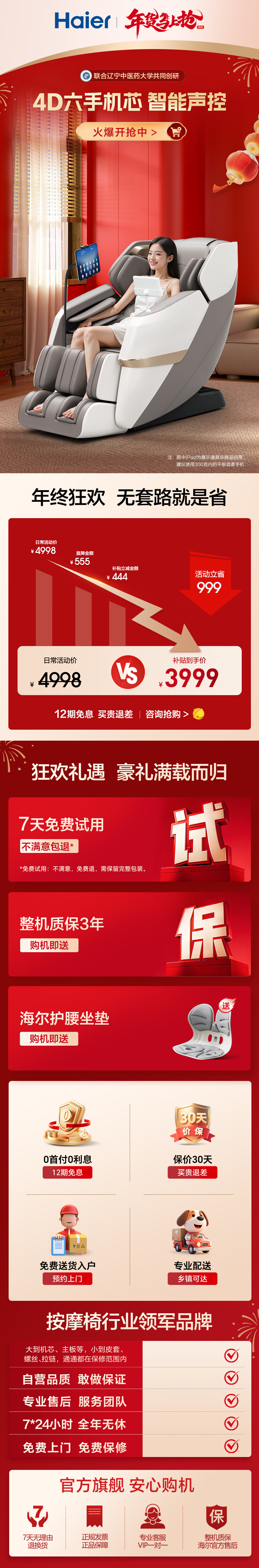 Haier Massage Chair Home Full Body Space Capsule Zero Gravity 2025 Top Ten Brands Electric Smart Massage Sofa Chair Rocking Chair Birthday Gift Practical for Parents H3-317-WU1