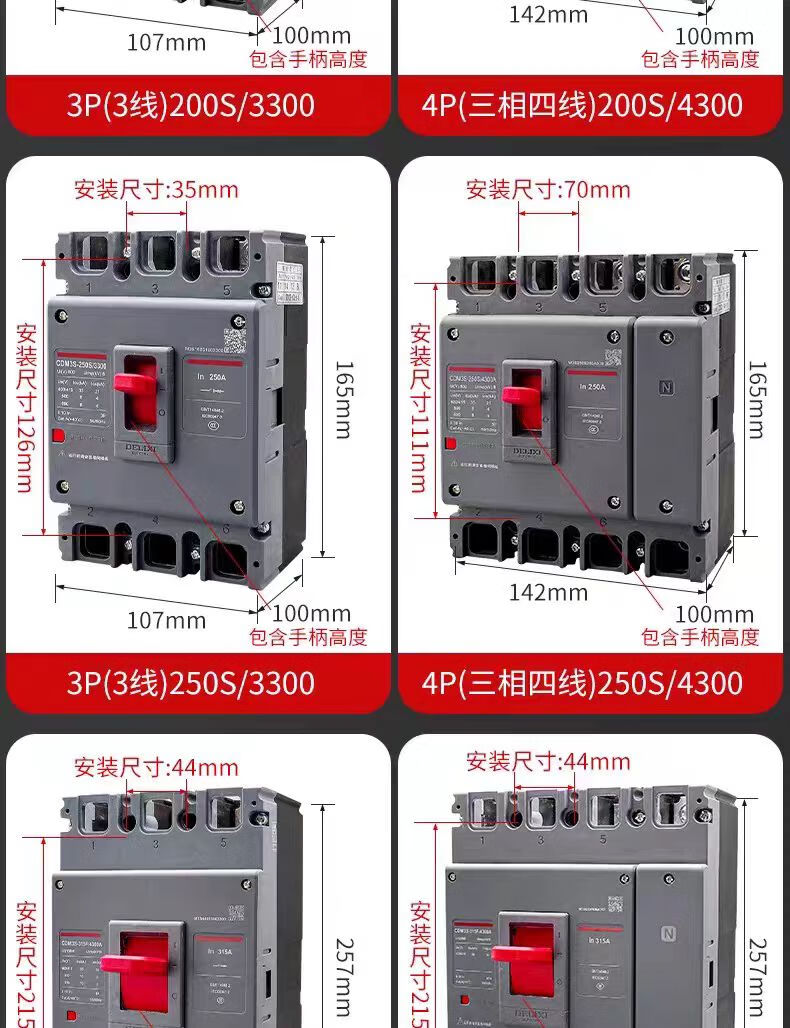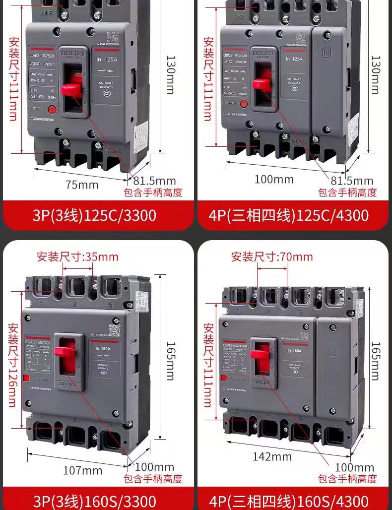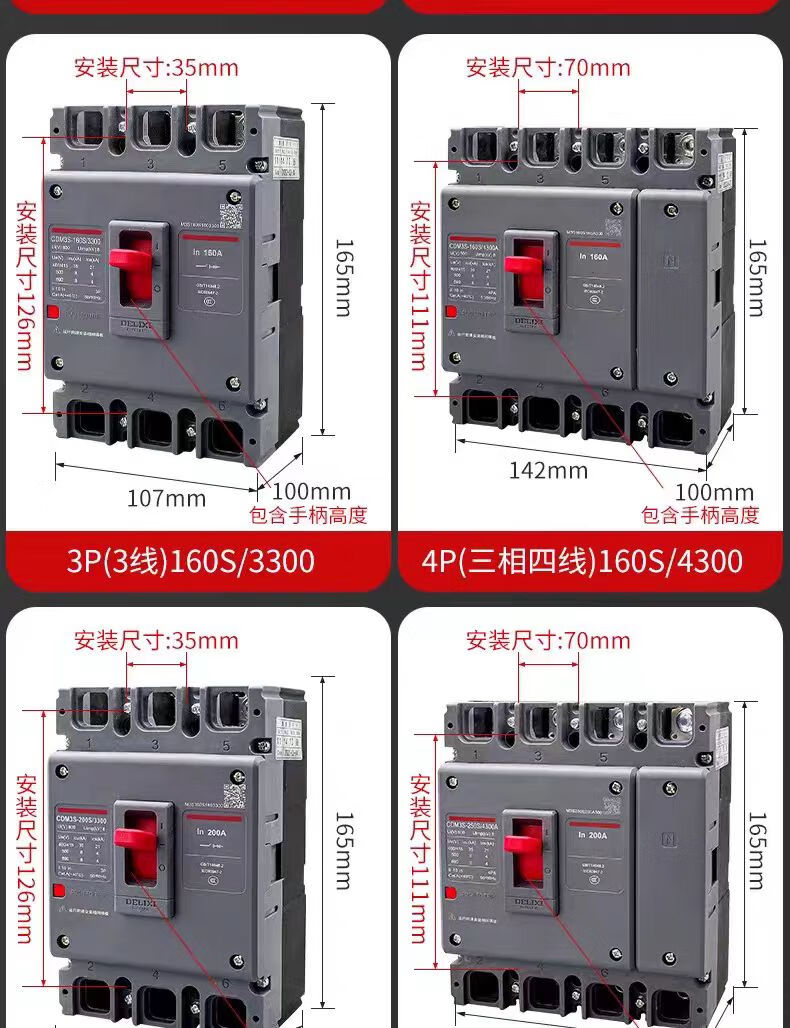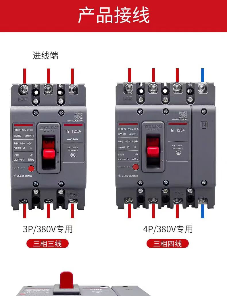 Delixi plastic case circuit breaker CDM3S three-phase four-wire air switch CDM3S-125S/3300 100A
