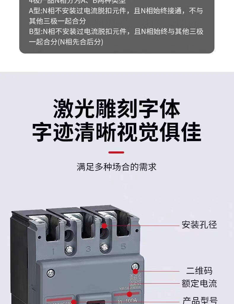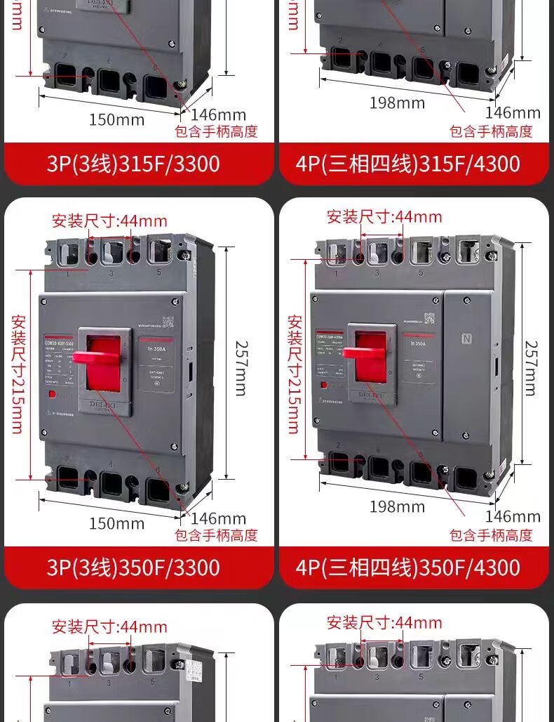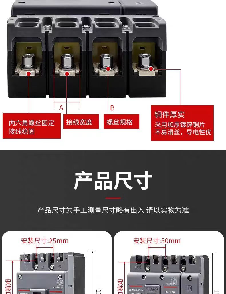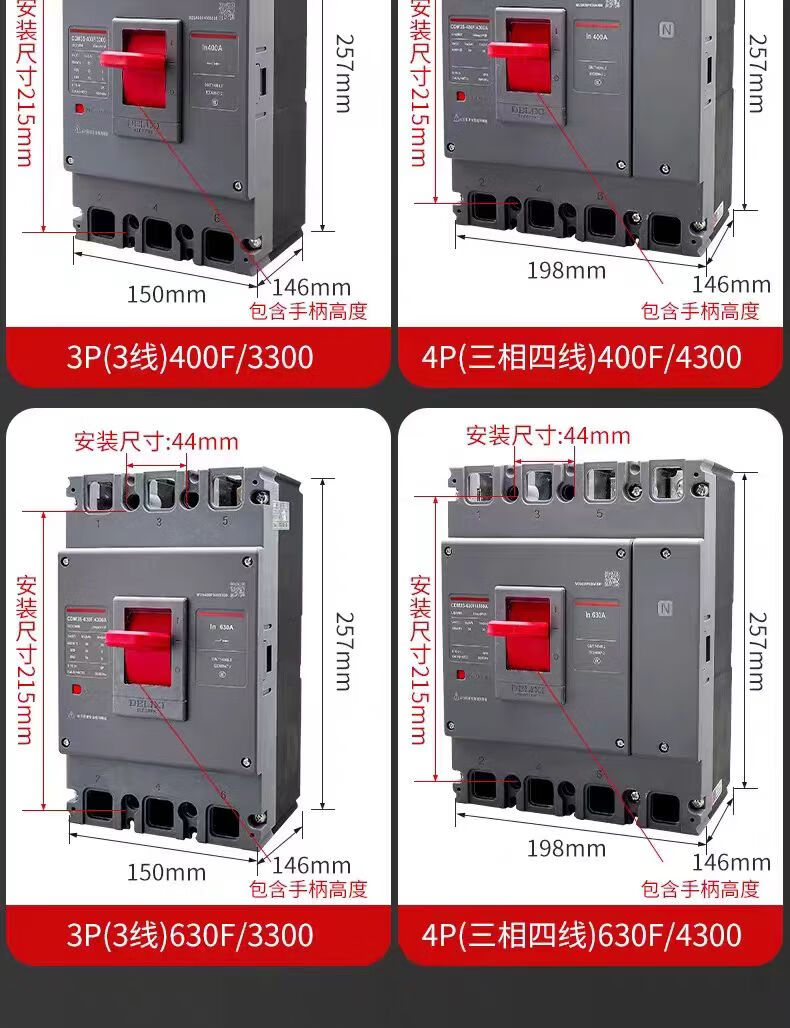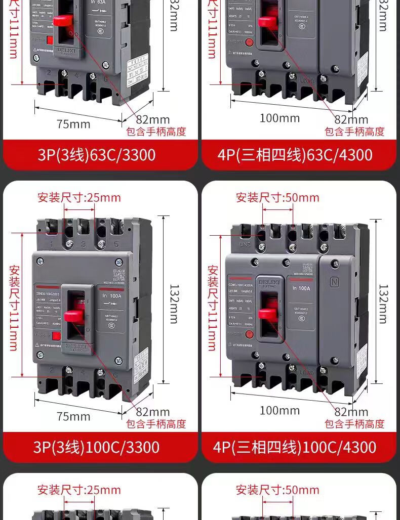 Delixi plastic case circuit breaker CDM3S three-phase four-wire air switch CDM3S-125S/3300 100A