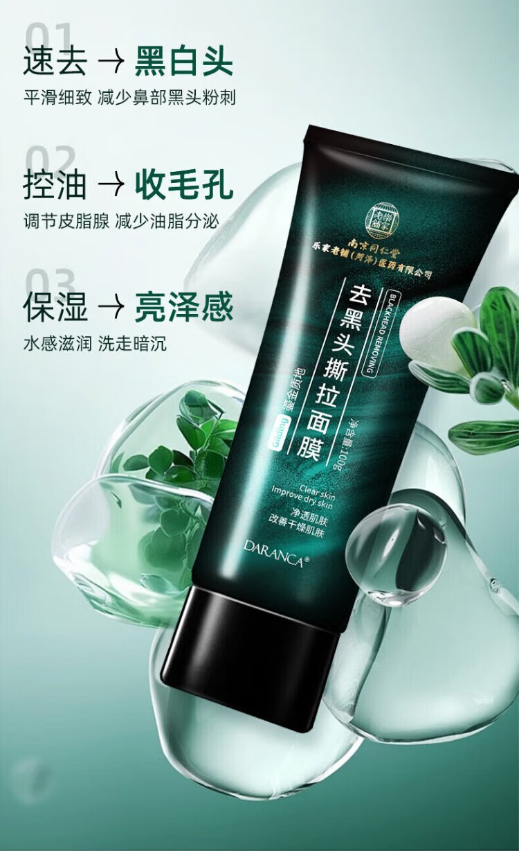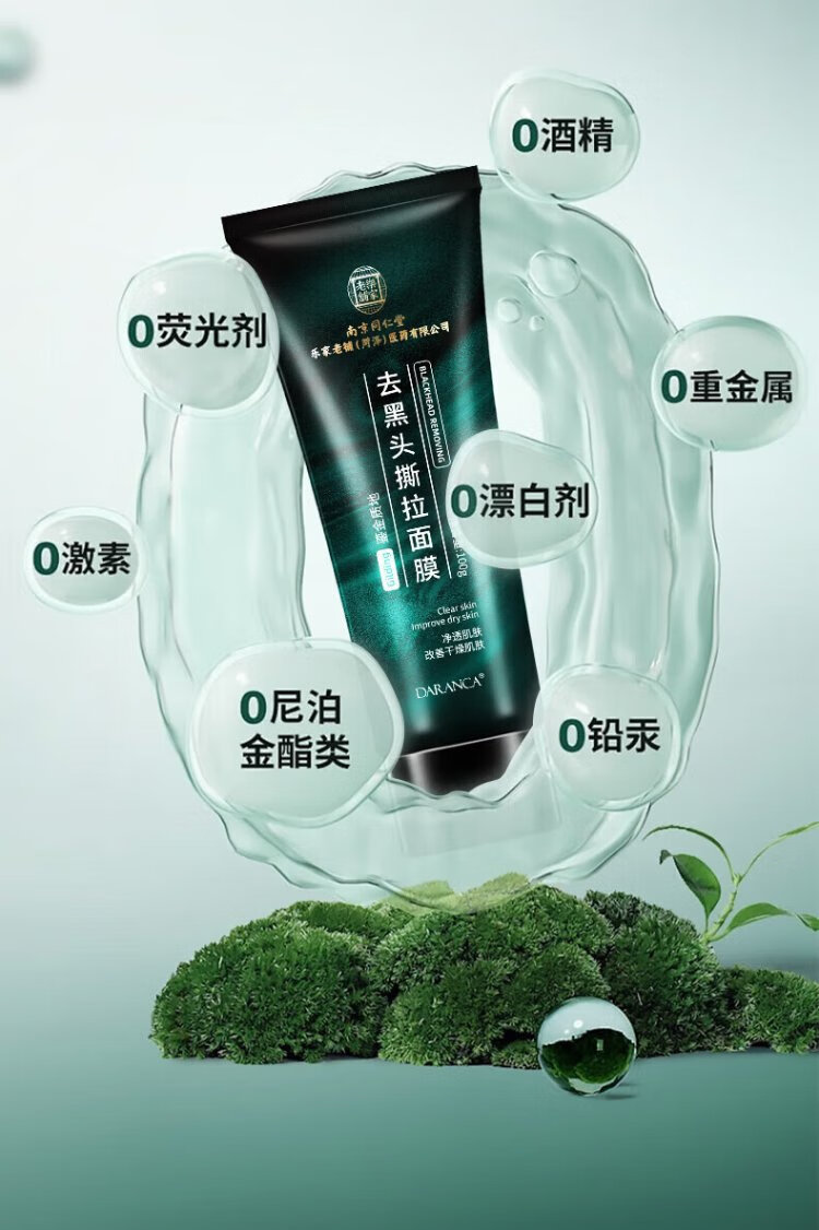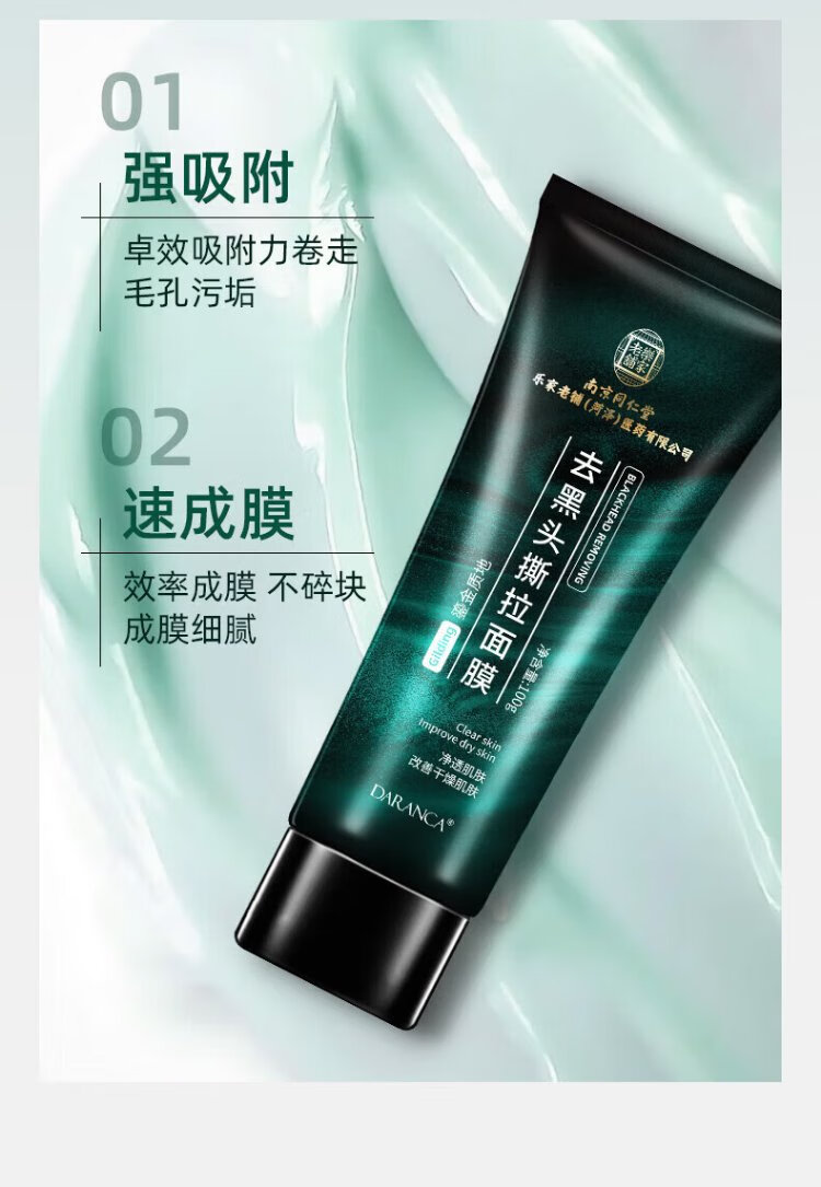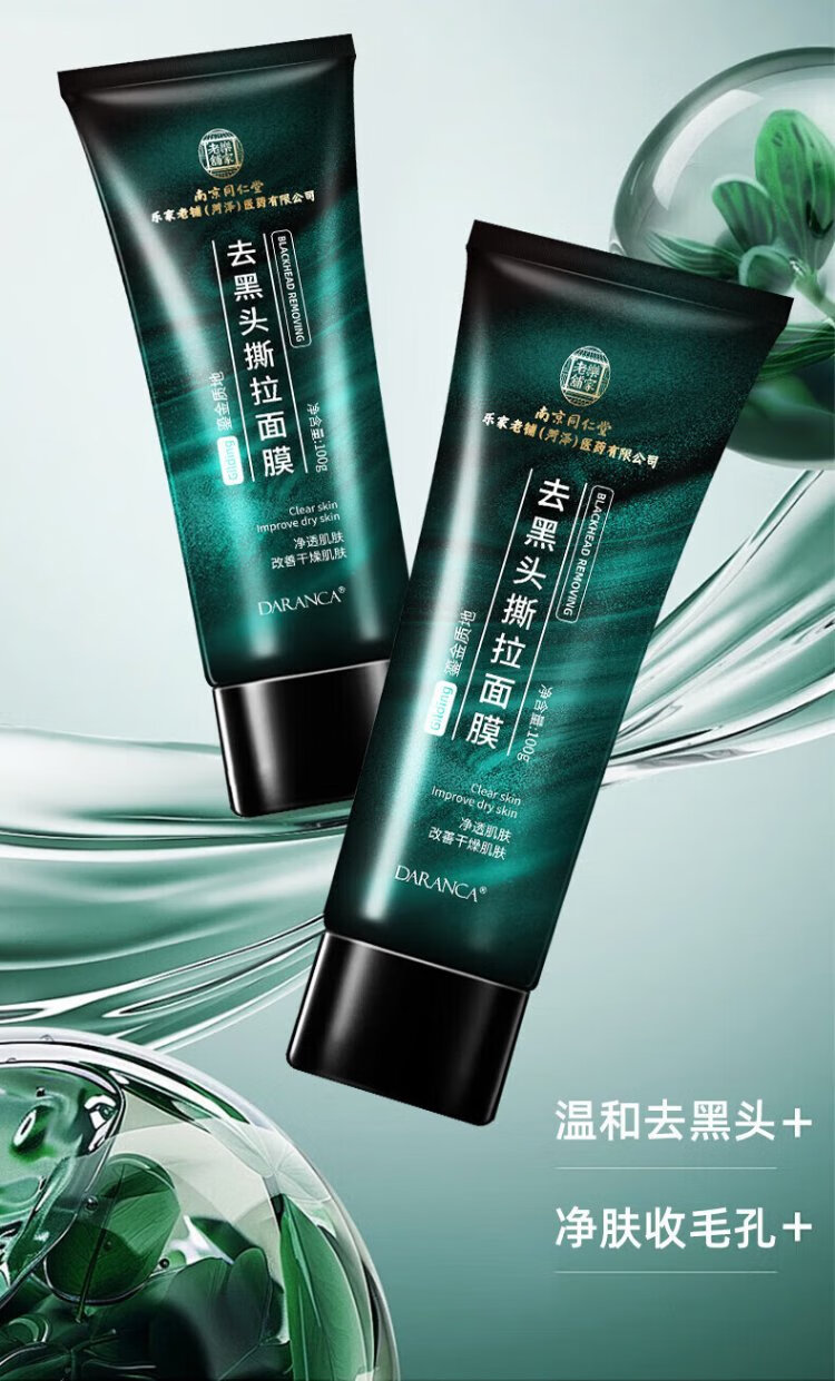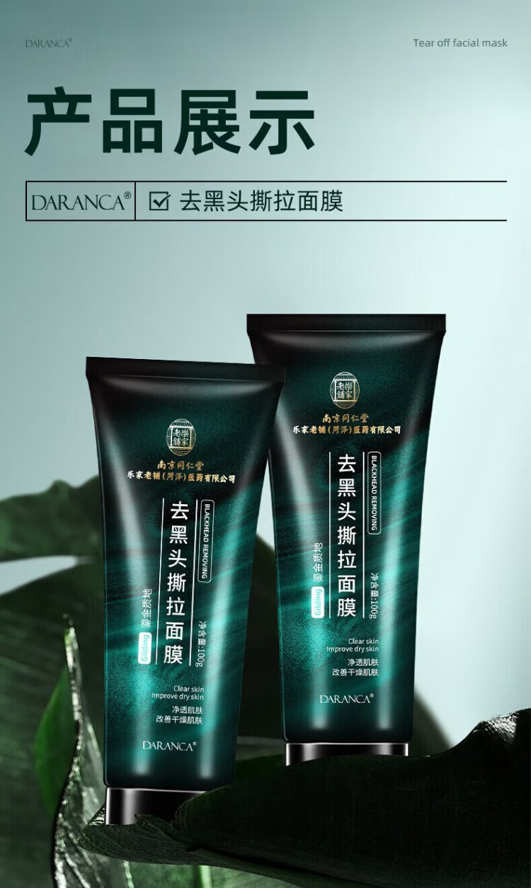 Tongrentang blackhead removal peel-off mask, repair pores, shrink pores, remove acne and close mouth, universal for men and women 100g