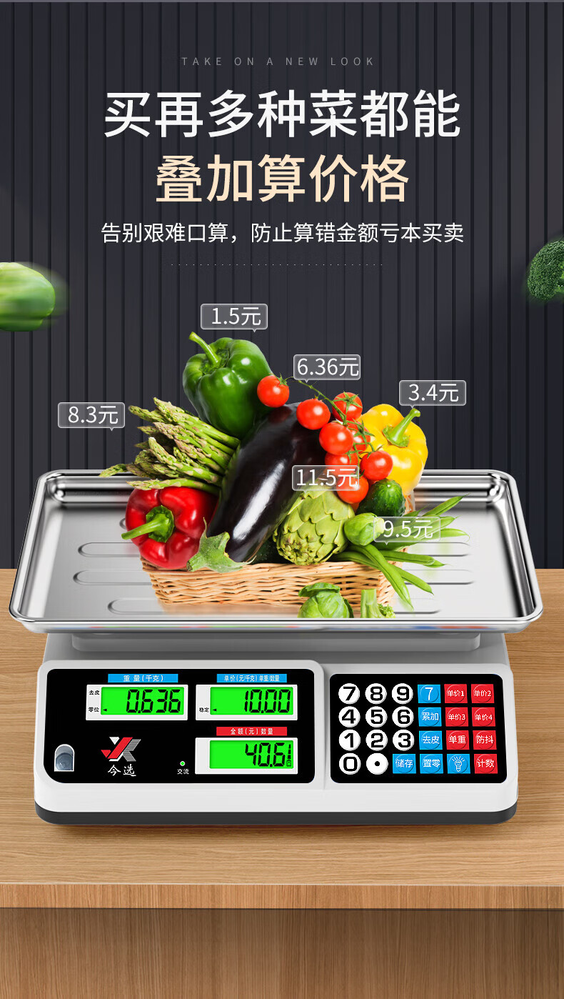 Jinxuan weighs vegetable selling electronic scales, commercial stall scales, small pricing food food kitchen scales, high-precision electronic scales for supermarkets