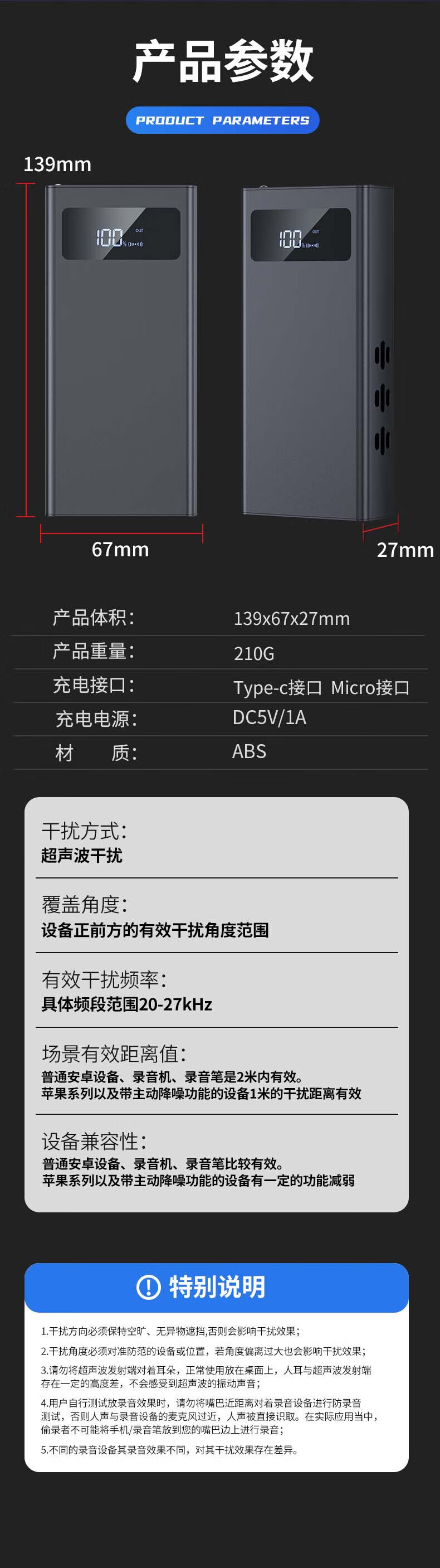 Plande anti-recording interference equipment recording and video anti-monitoring guard anti-eavesdropping detection portable anti-video detector
