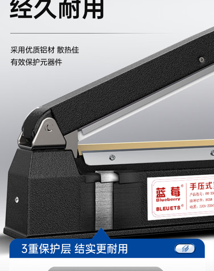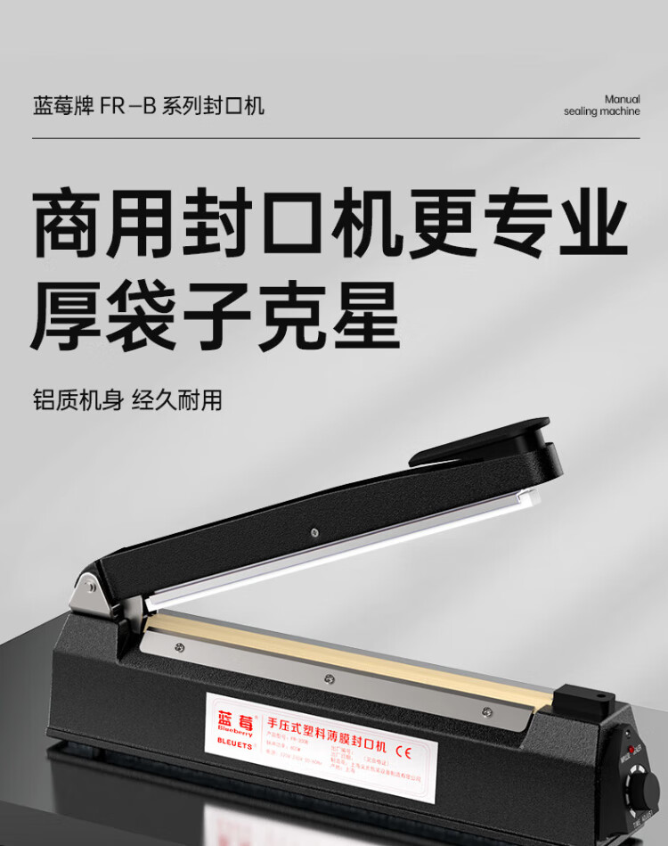 Blueberry hand pressure sealing machine plastic film moon cake tea bag opening sealing packaging machine FR-400B (8mm sealing width)