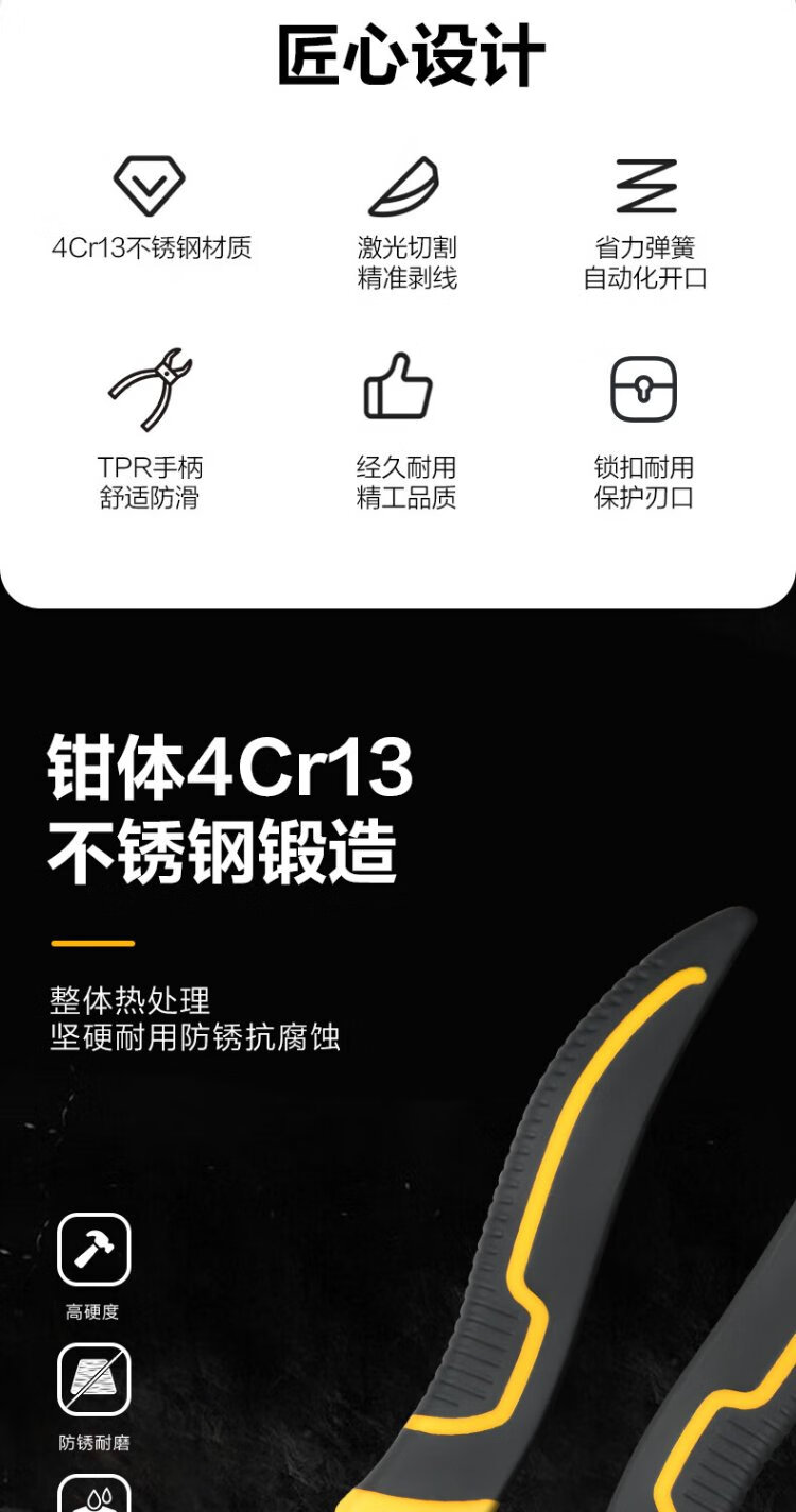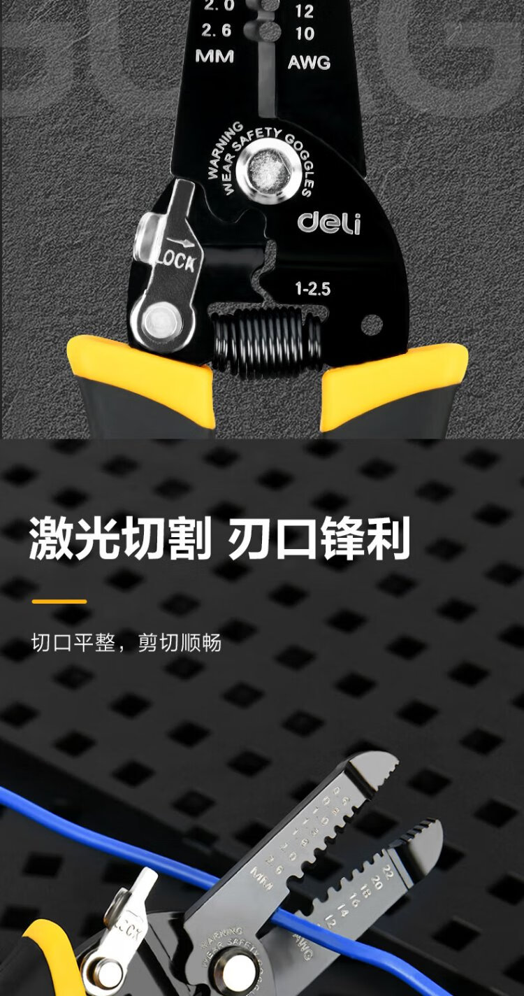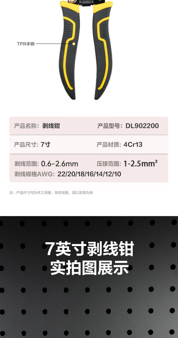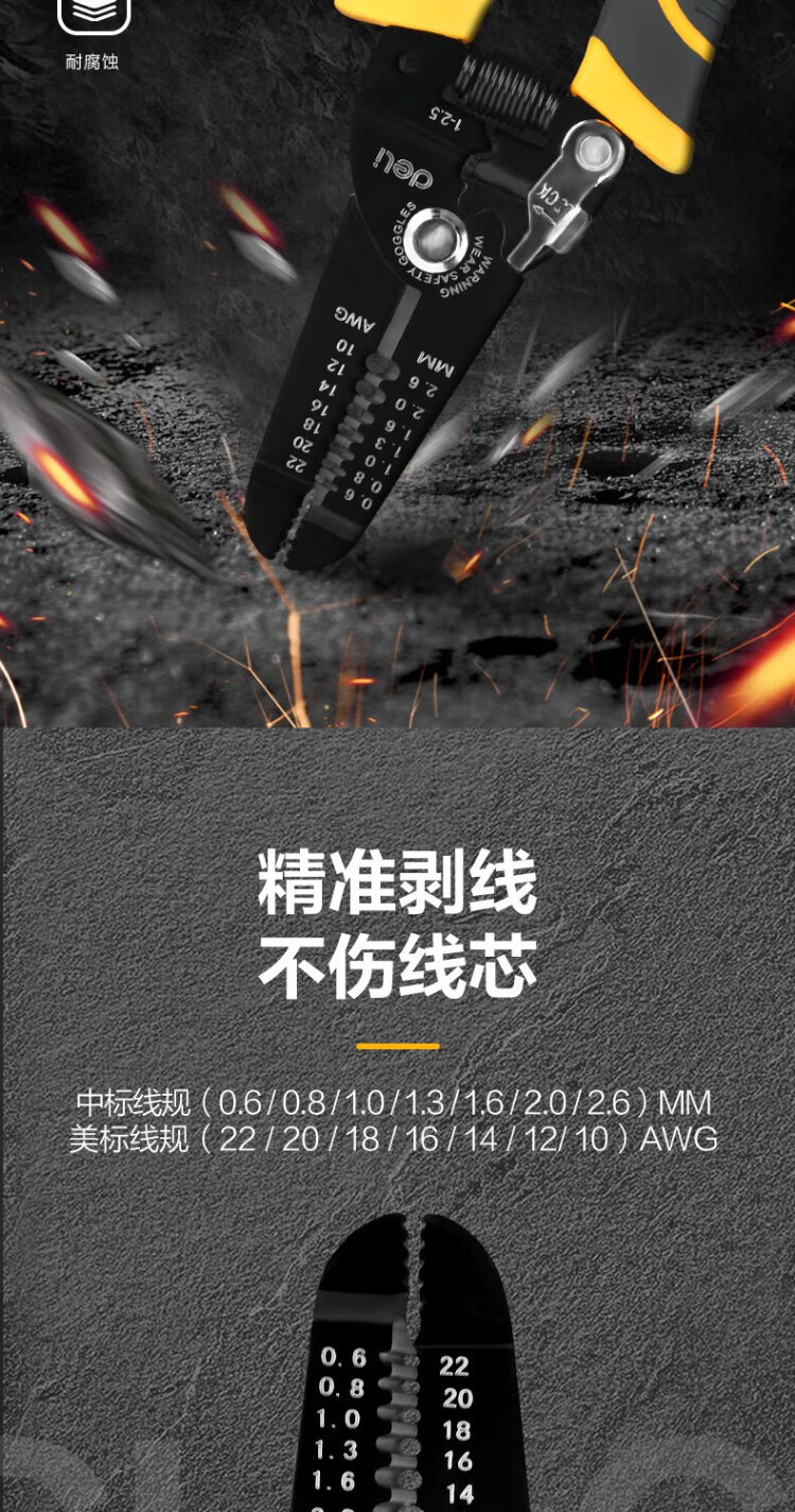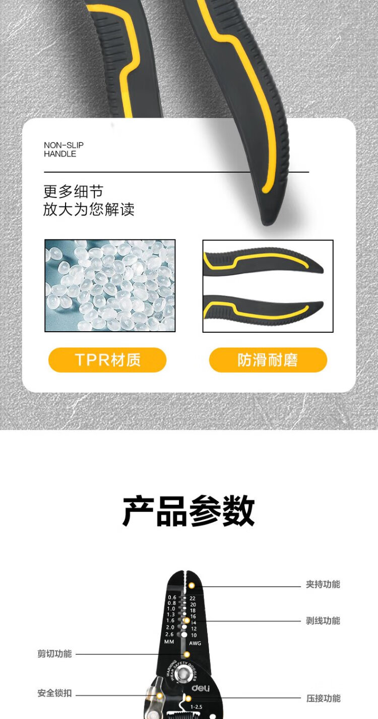 Deli (deli) 7-inch stripper, cutter, multi-function wire stripper, wire crimper, electrician's pliers, wire puller, wire puller, wiring tool pliers
