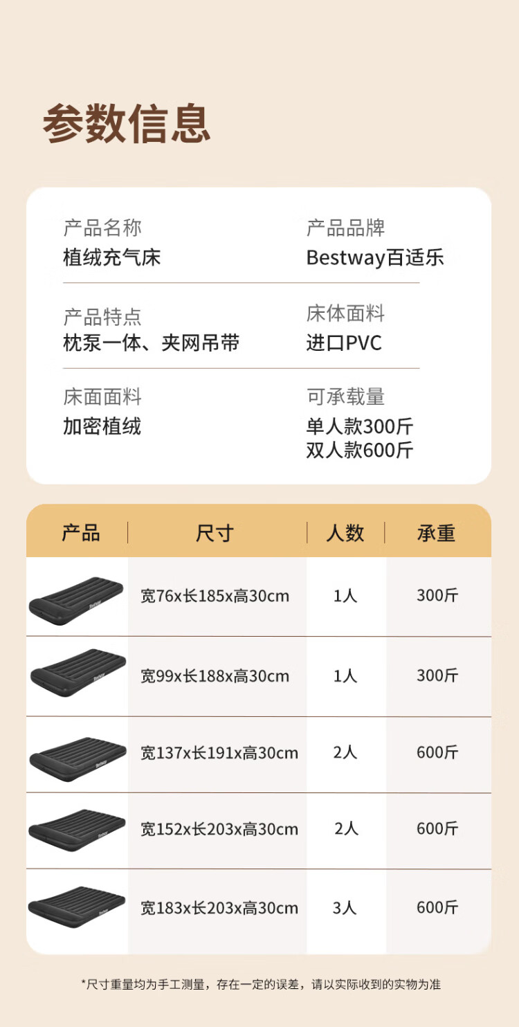 Bestway inflatable mattress household air mattress outdoor moisture-proof mat tent mat companion mattress 203*183*30cm+electric pump