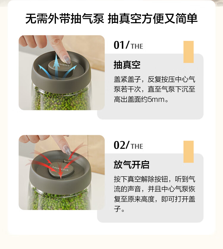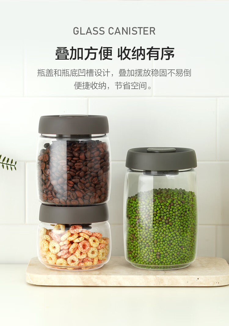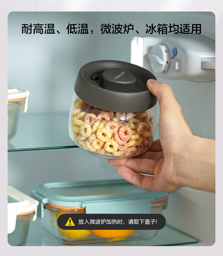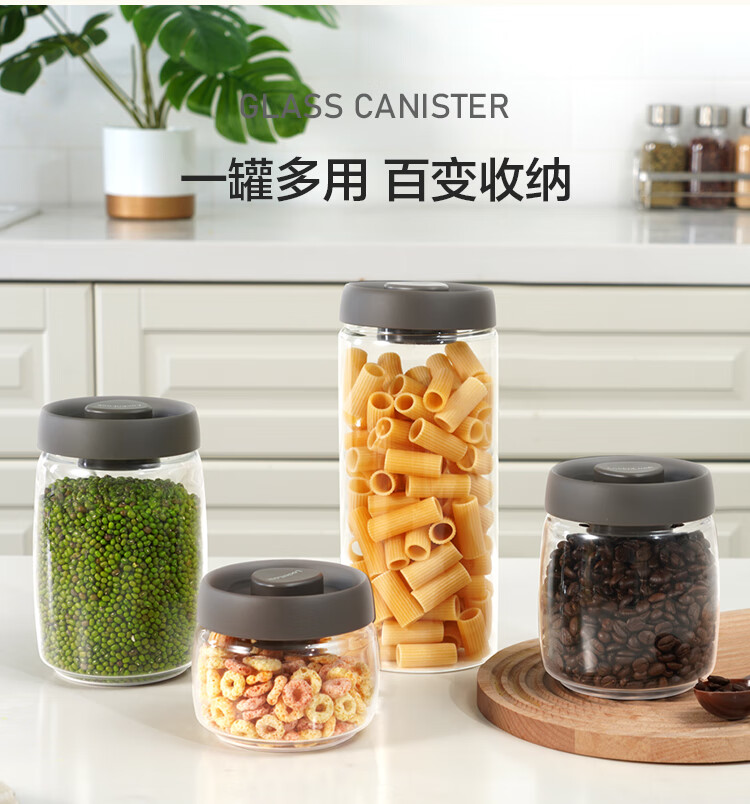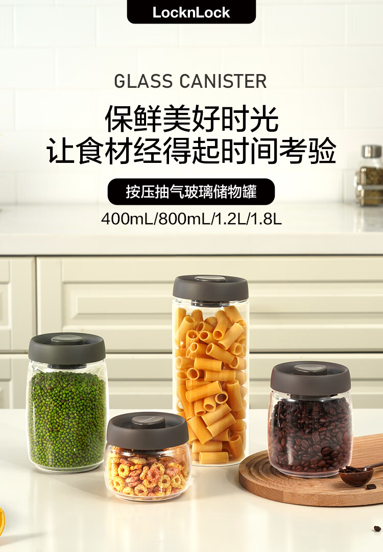 LOCK & LOCK press-pump glass sealed jar miscellaneous grains tea kitchen dry goods storage jar milk powder jar 1.2L gray