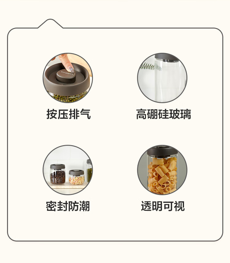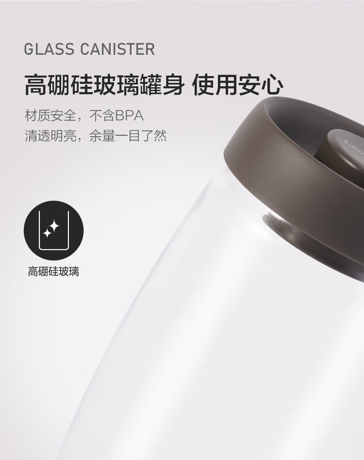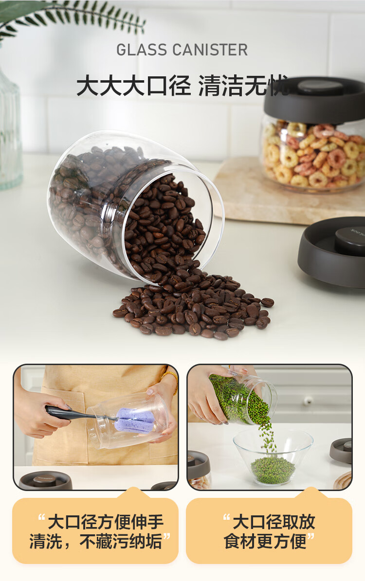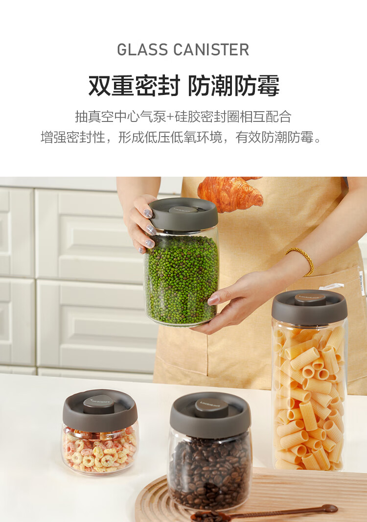 LOCK & LOCK press-pump glass sealed jar miscellaneous grains tea kitchen dry goods storage jar milk powder jar 1.2L gray