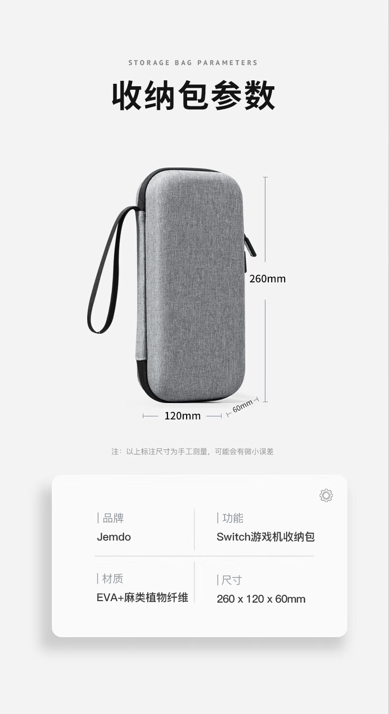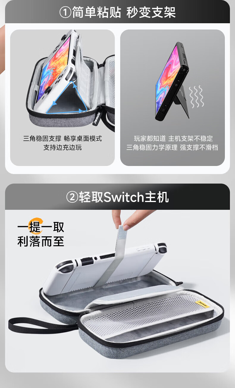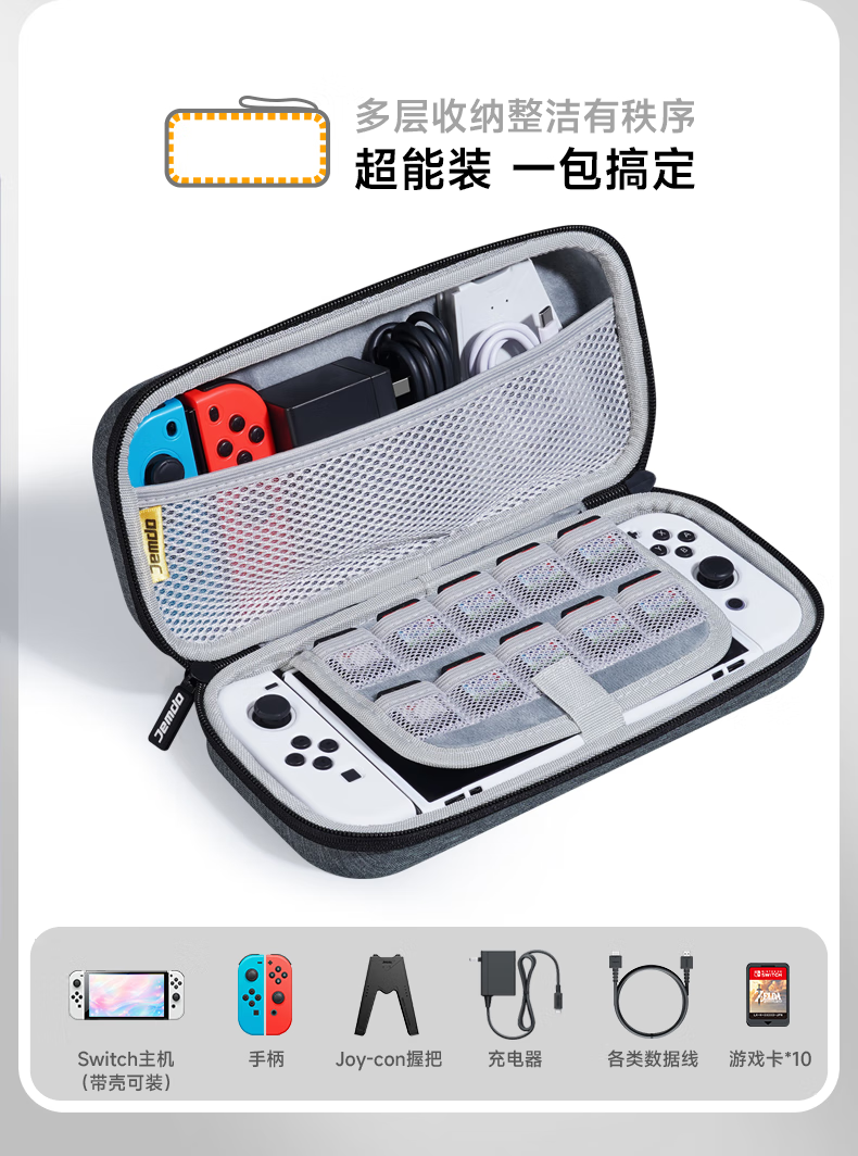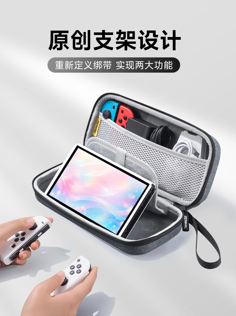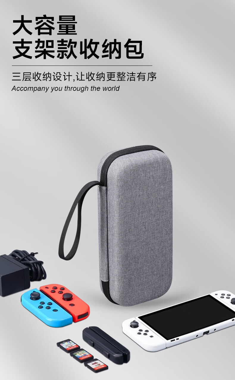 Jemdo is suitable for Nintendo Switch storage bag game console protective box NS/OLED game handheld multi-functional portable storage box large capacity protective bag storage bag gray