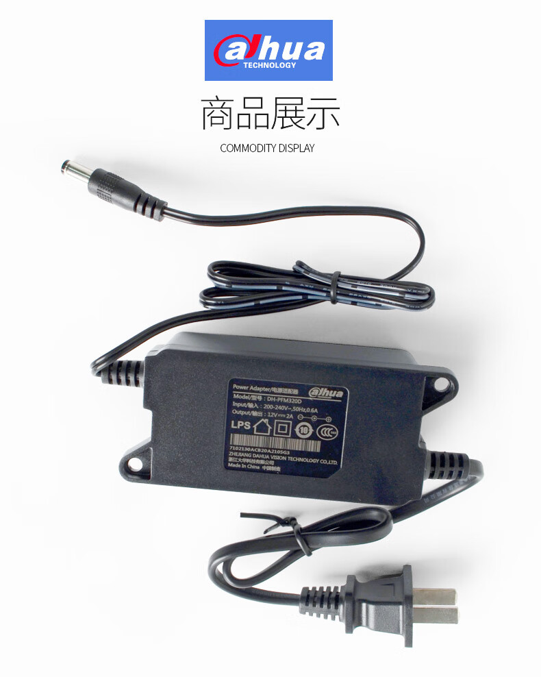 Dahua Dahua monitor power supply DC12V indoor monitoring power supply desktop 12V2A power adapter monitoring wall power supply DH-PFM320/D
