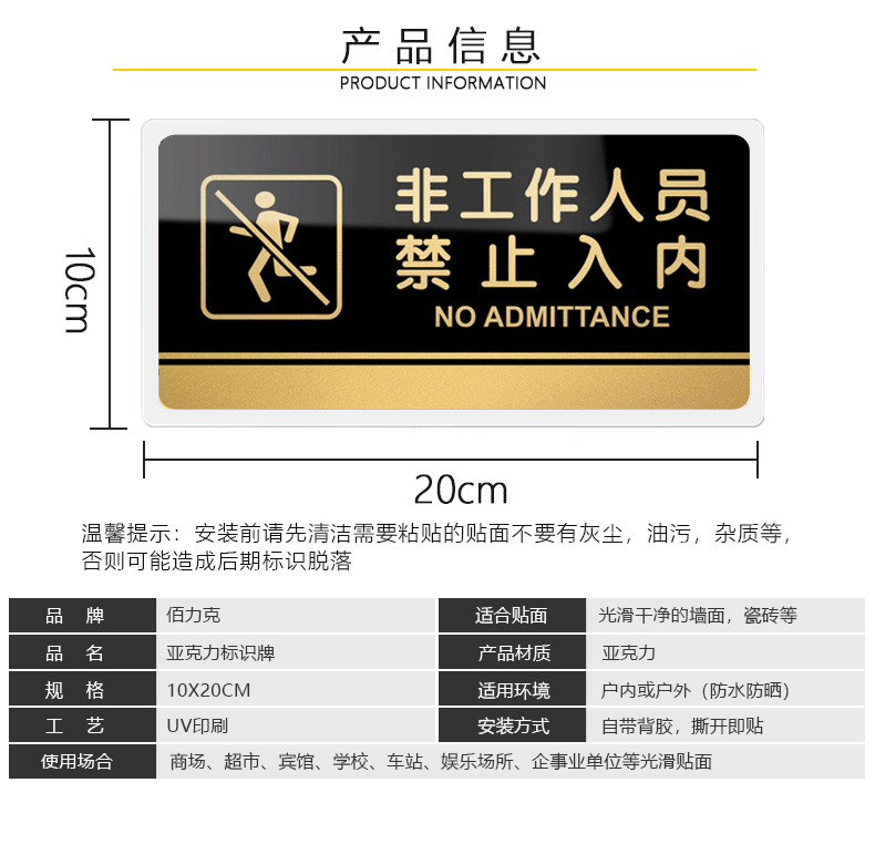 BELIK bathroom 1 piece acrylic door sign sign station shopping mall public place warm reminder sign warning sign 10X20cm BYKL02