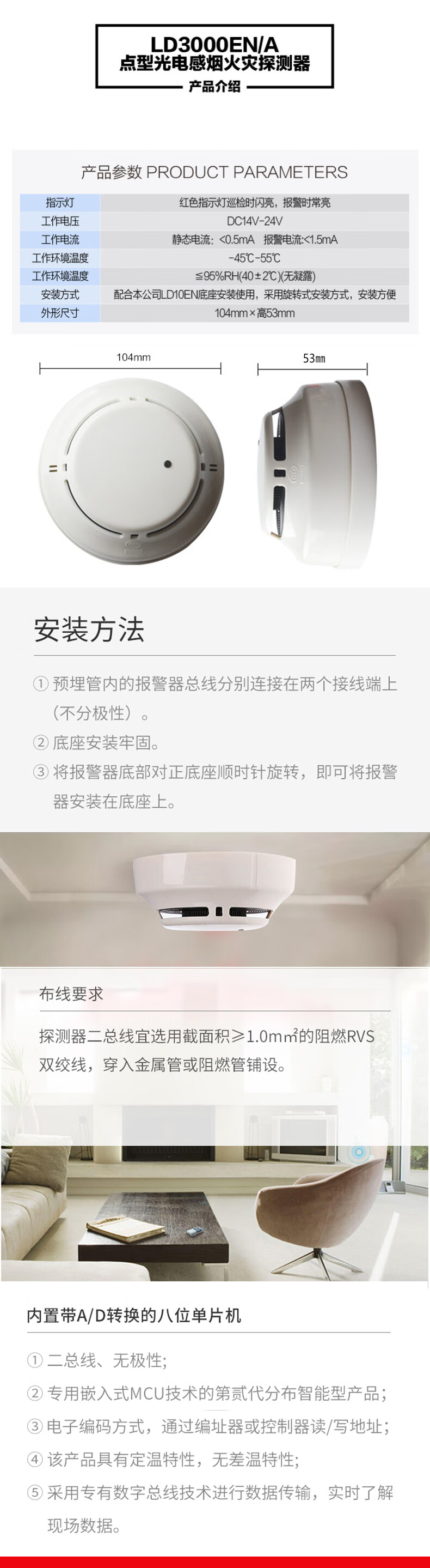 Lida JTY-GM-LD3000EN/C/A smoke detector (without base) point type photoelectric smoke detector coded type