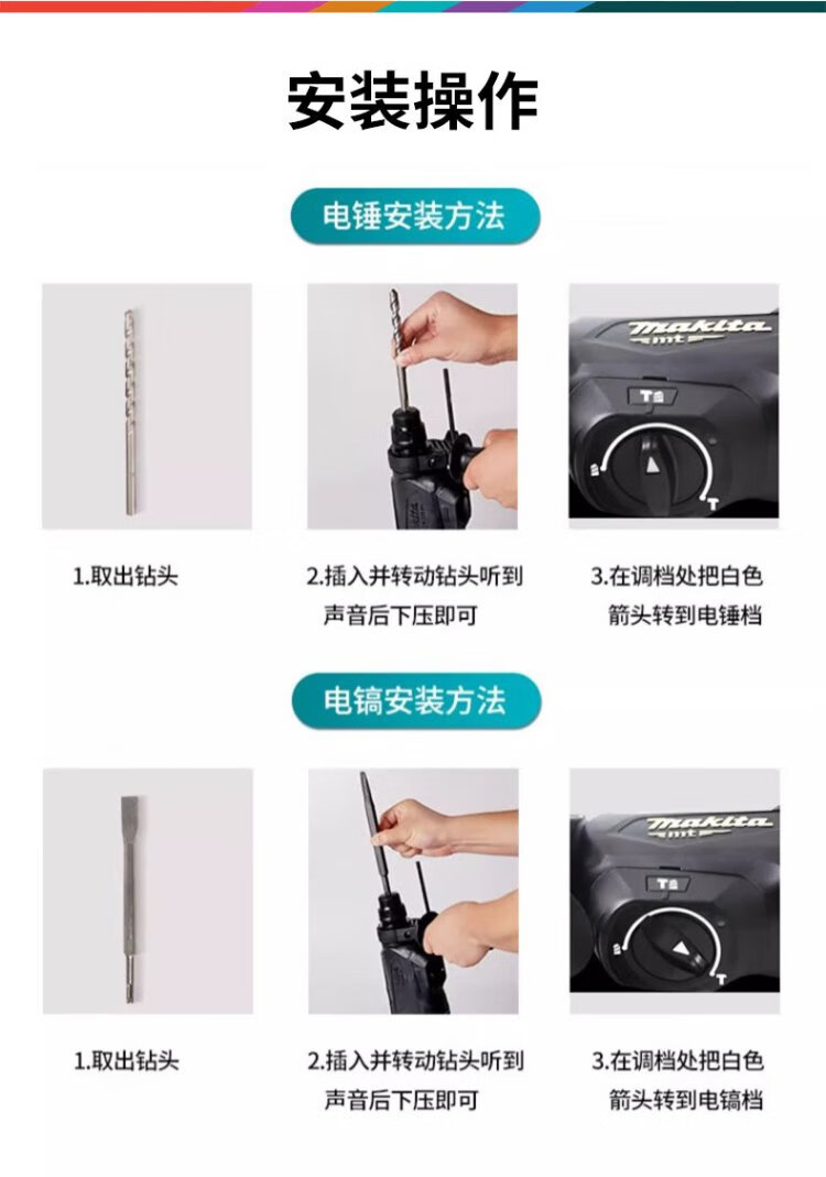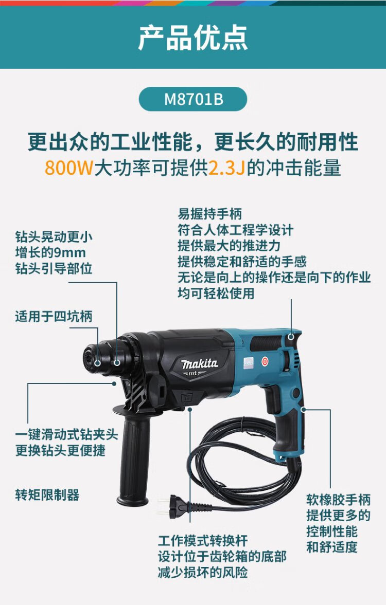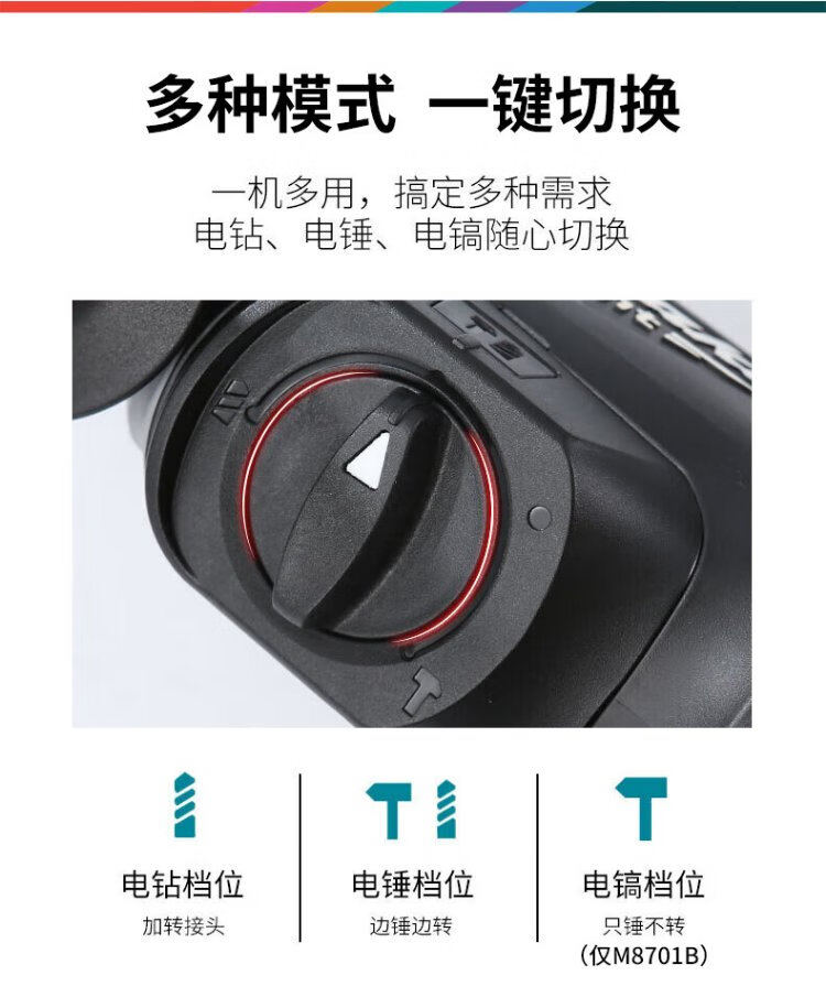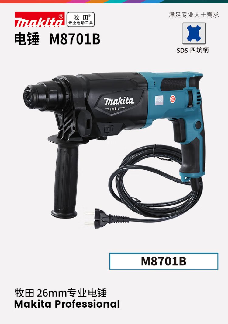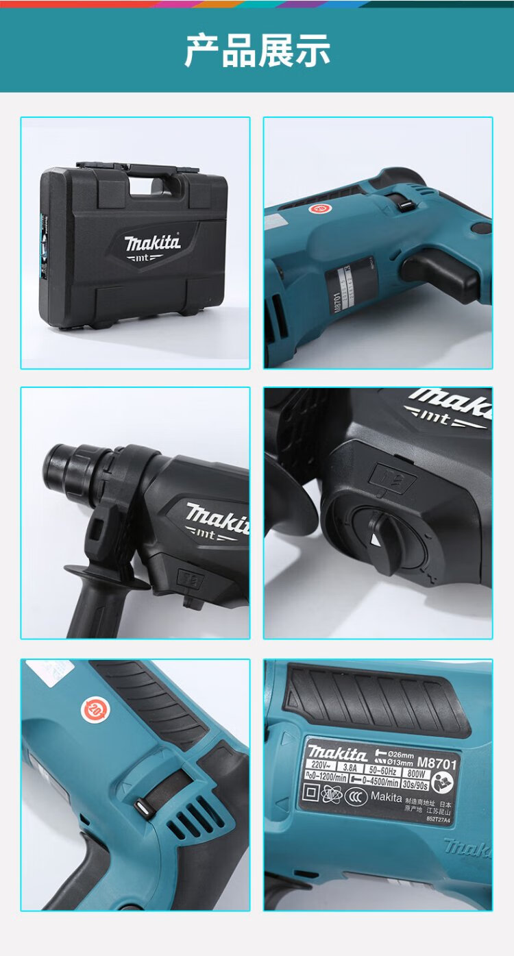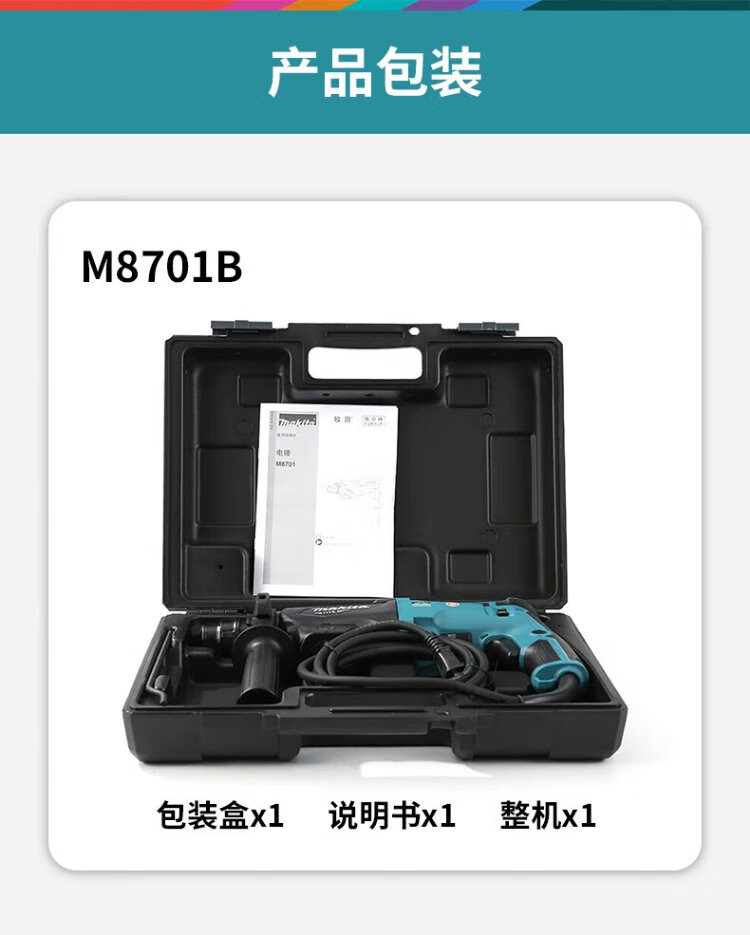 Makita (MAKITA) electric hammer three-function electric hammer impact drill electric pick 800W 26mm plastic box M8701B