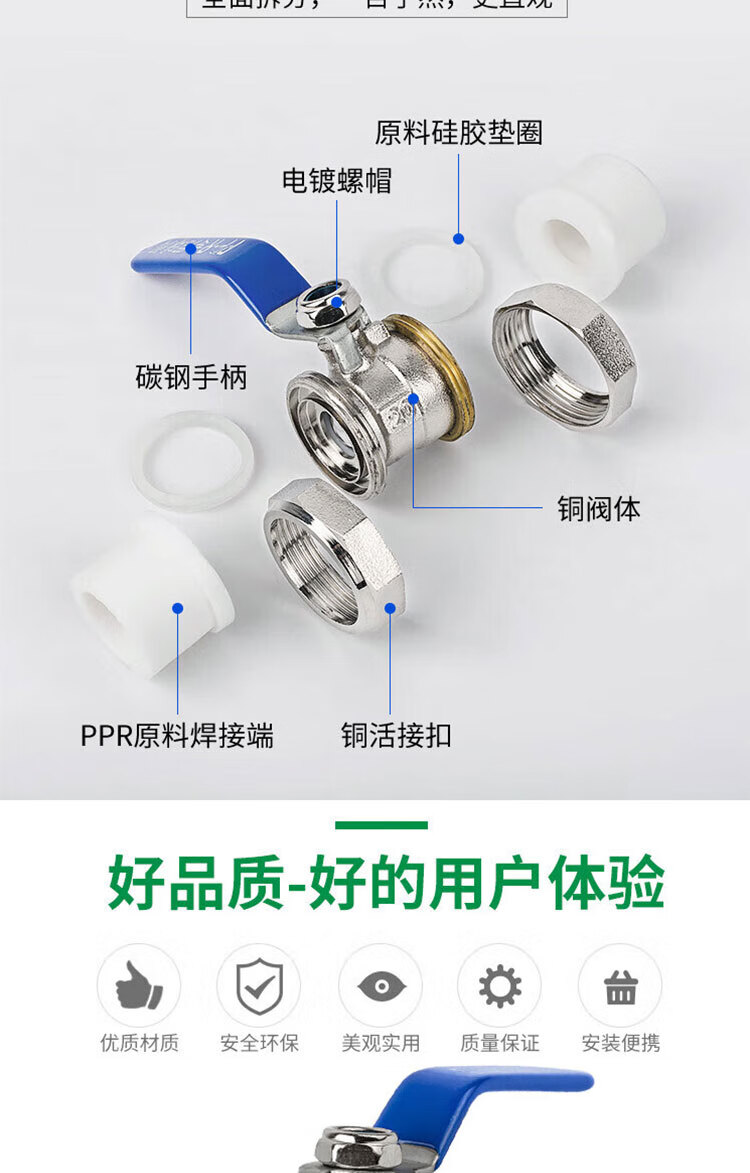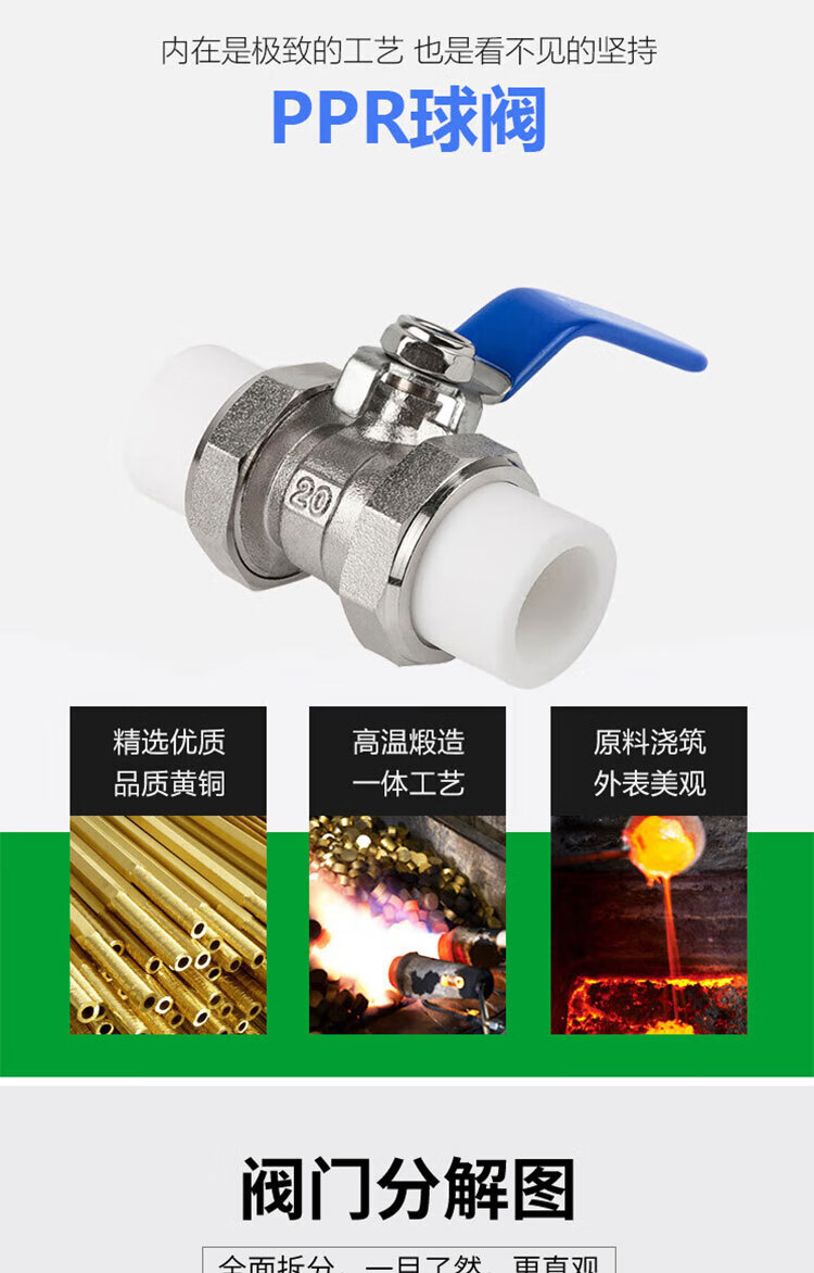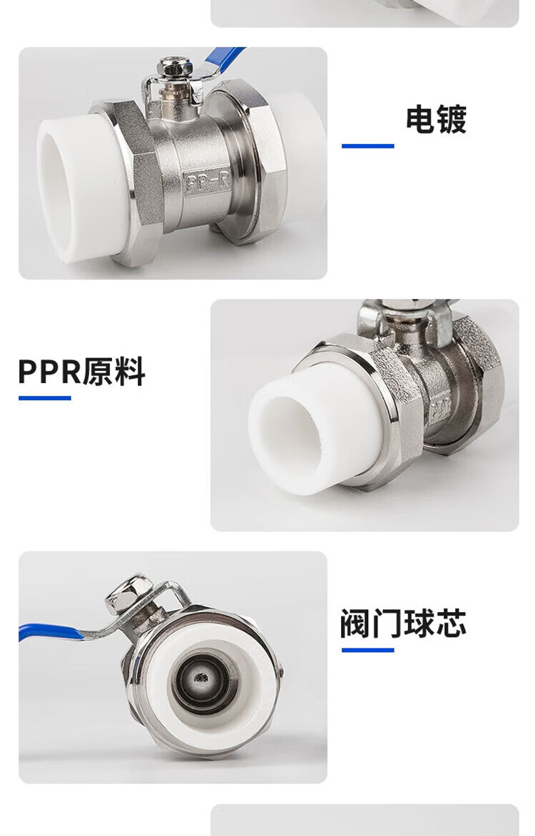 Zhuqin brass electroplated double union PPR ball valve hot melt welded water pipe valve switch PPR ball valve one price 1 inch 32mm