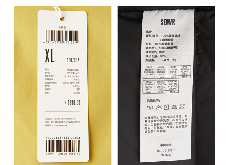 Semir protective jacket | Geography series down men's winter fashion four-proof goose down jacket 109724113115