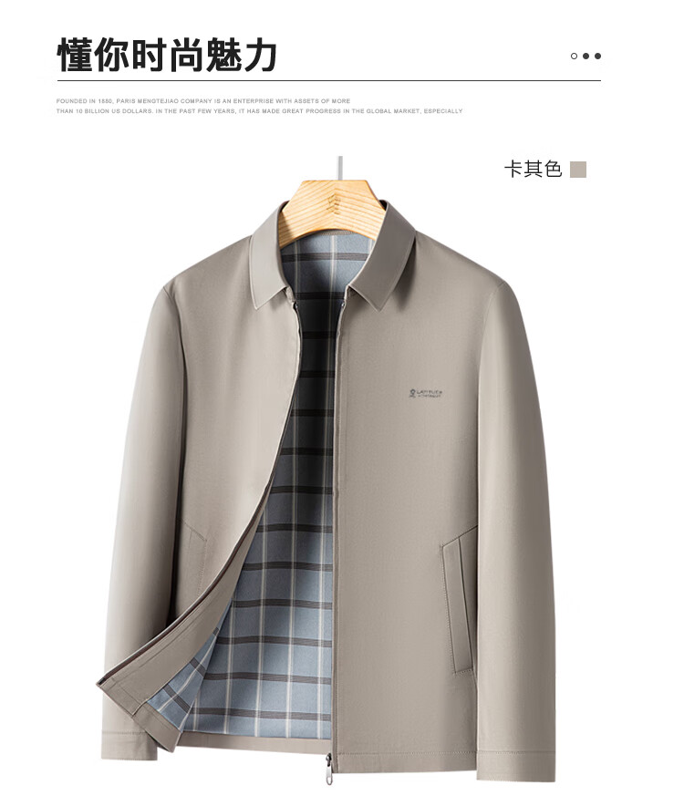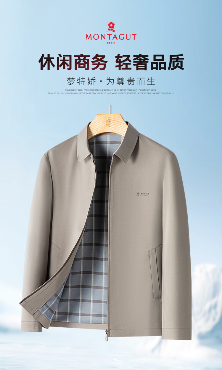 MONTAGUT Mulberry Silk Men's Breathable Jacket Casual Lapel Inner Plaid Solid Color Men's Jacket JC Khaki XL