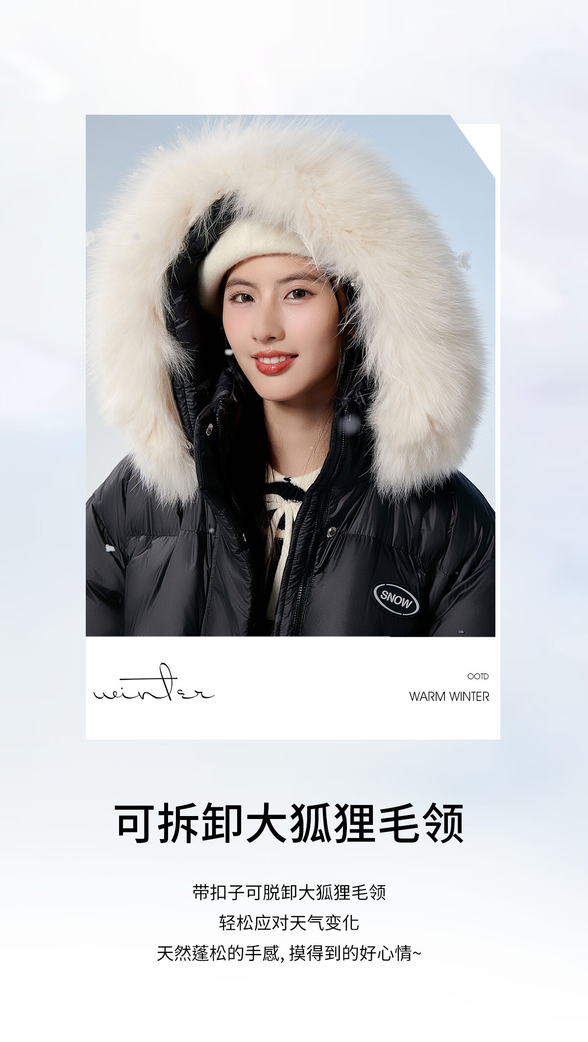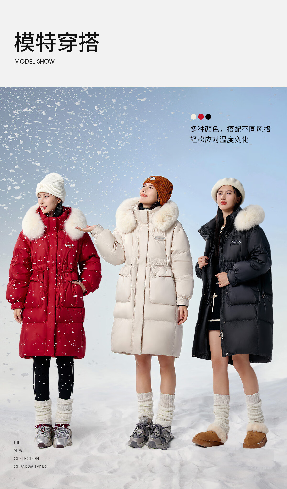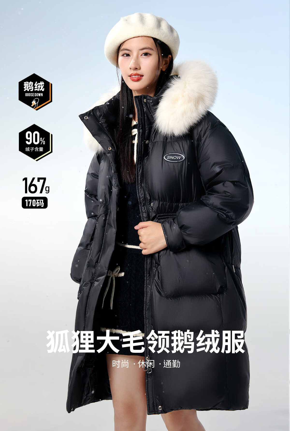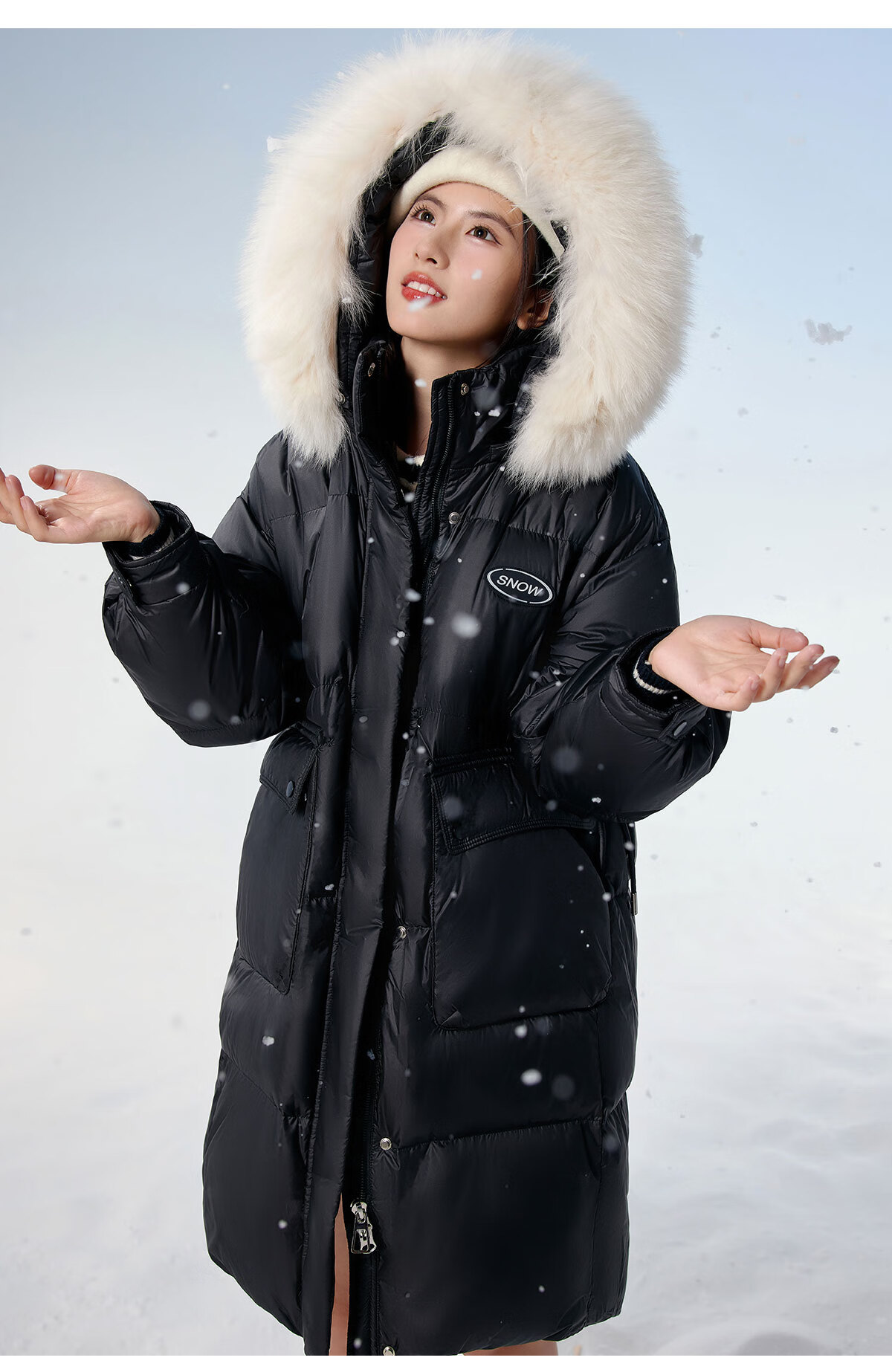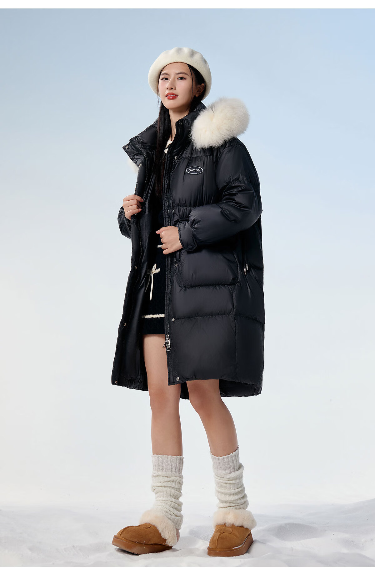 Flying in the Snow 2025 Autumn and Winter Down Jacket Women's Mid-Length Loose Goose Down Fox Fur Collar Warm Women's Jacket Gemstone Black M