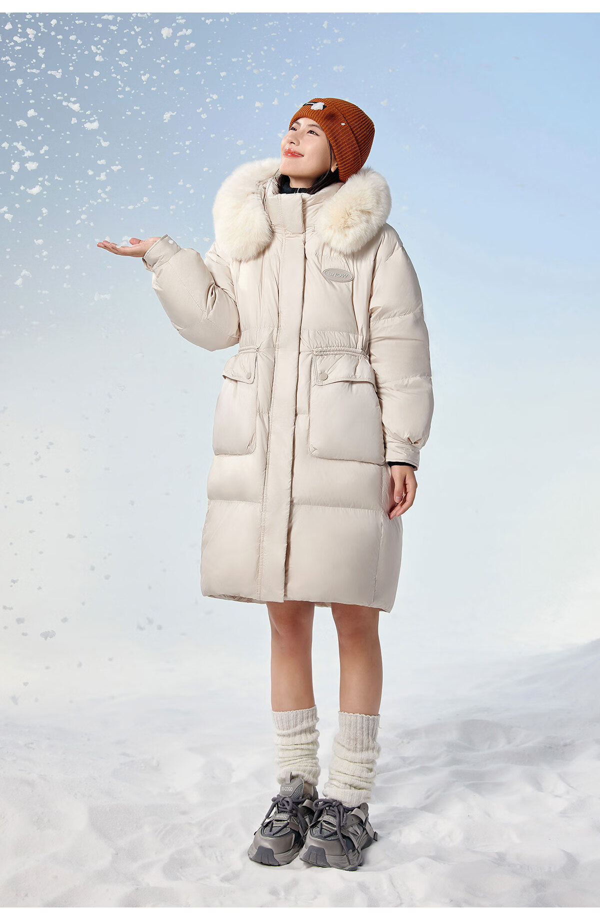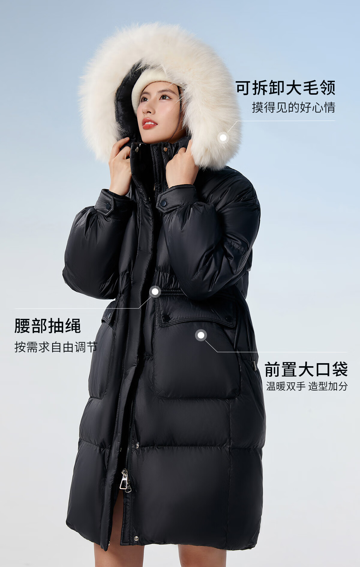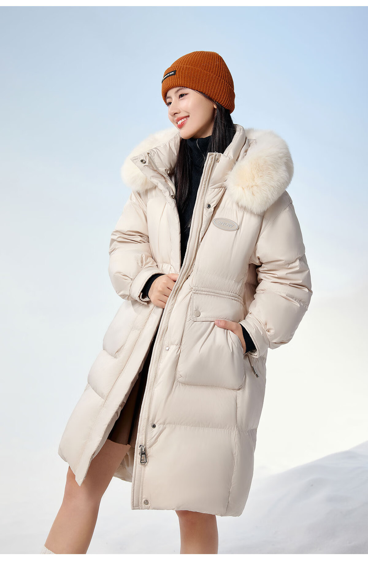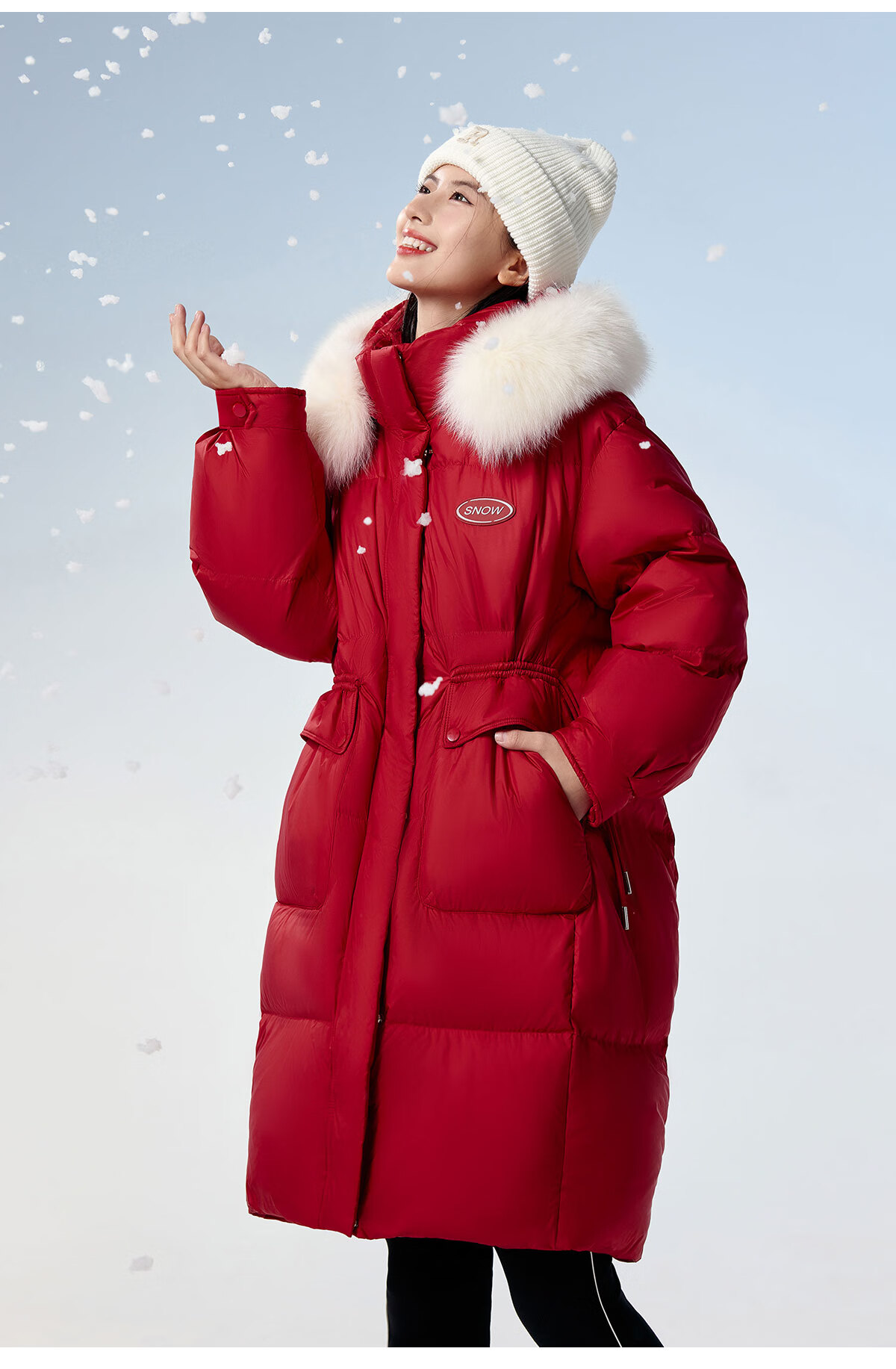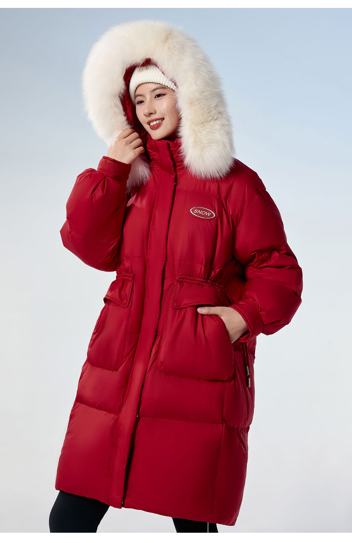 Flying in the Snow 2025 Autumn and Winter Down Jacket Women's Mid-Length Loose Goose Down Fox Fur Collar Warm Women's Jacket Gemstone Black M