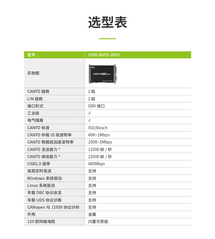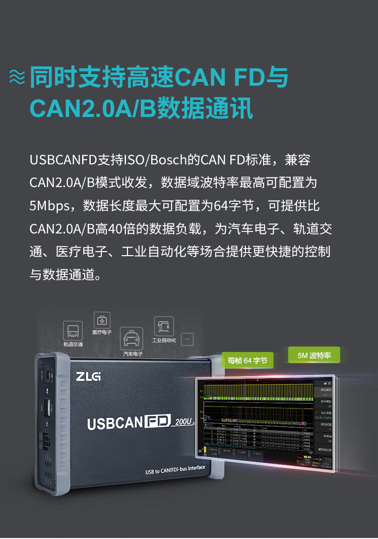 ZLG Zhiyuan Electronics Industrial-grade USB to CANFD interface card 2-way CANFD2-way LIN USB to CANFD box USBCANFD-200U