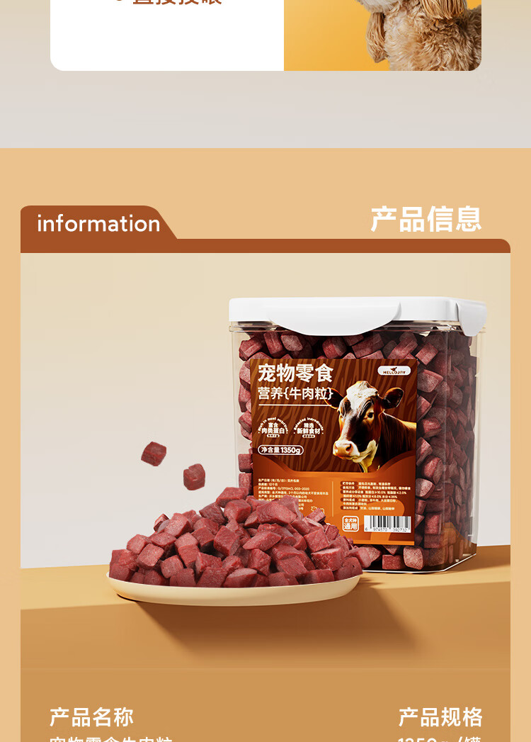 HELLOJOY Dog Snacks Pet Teddy Golden Retriever Puppy Adult Dog Training Reward Nutritious Beef Grains 2.7 catties
