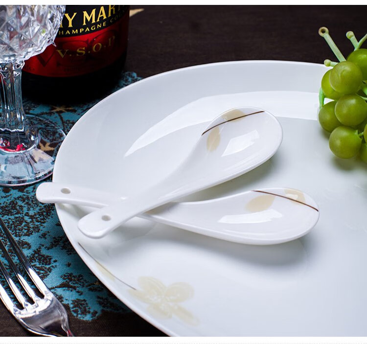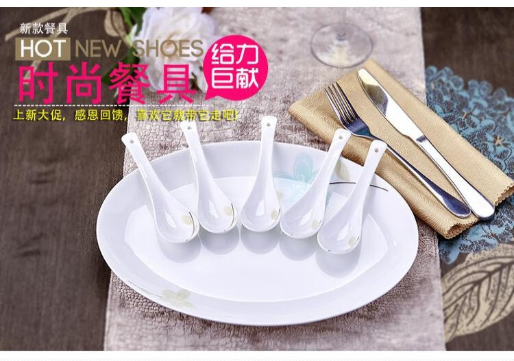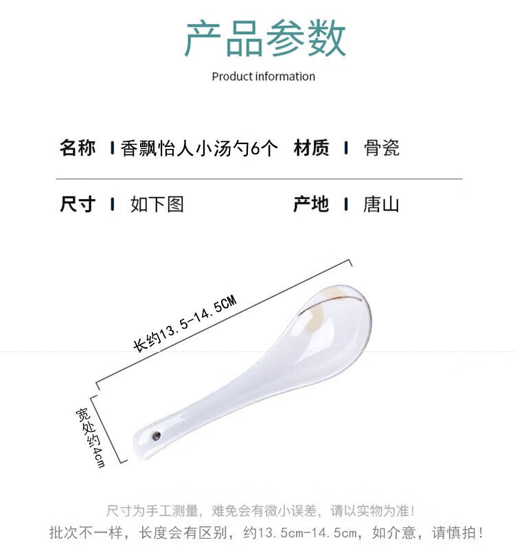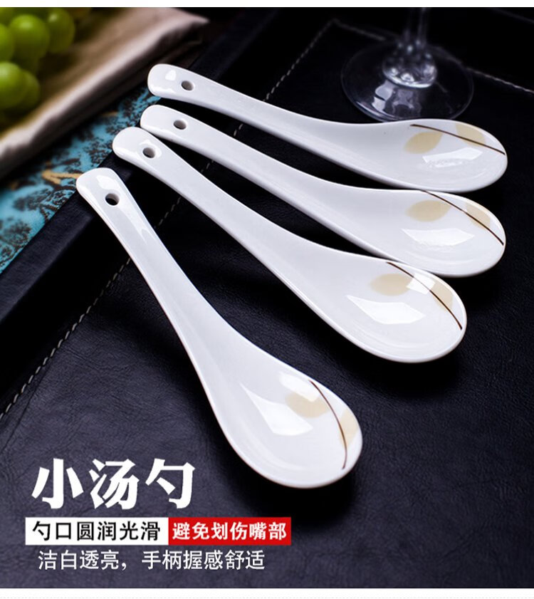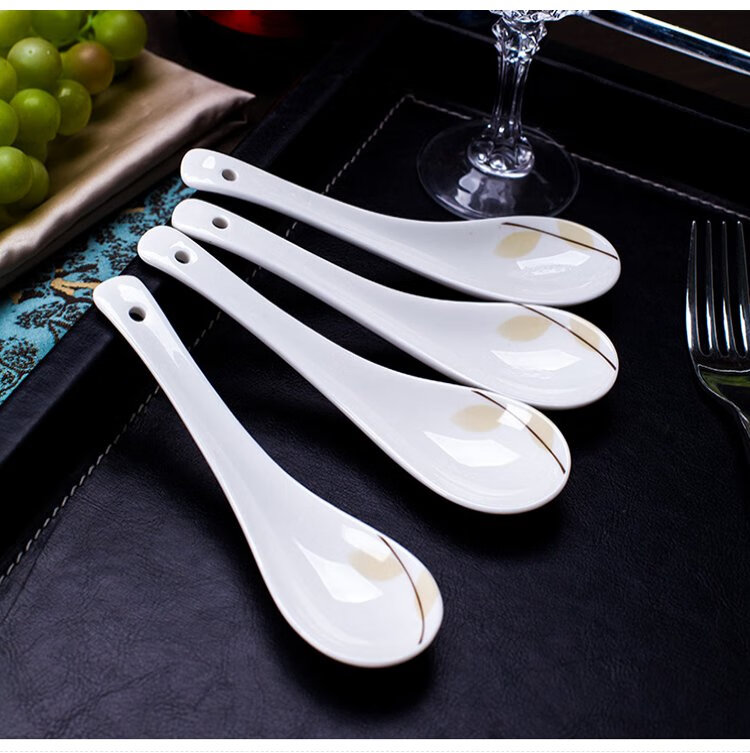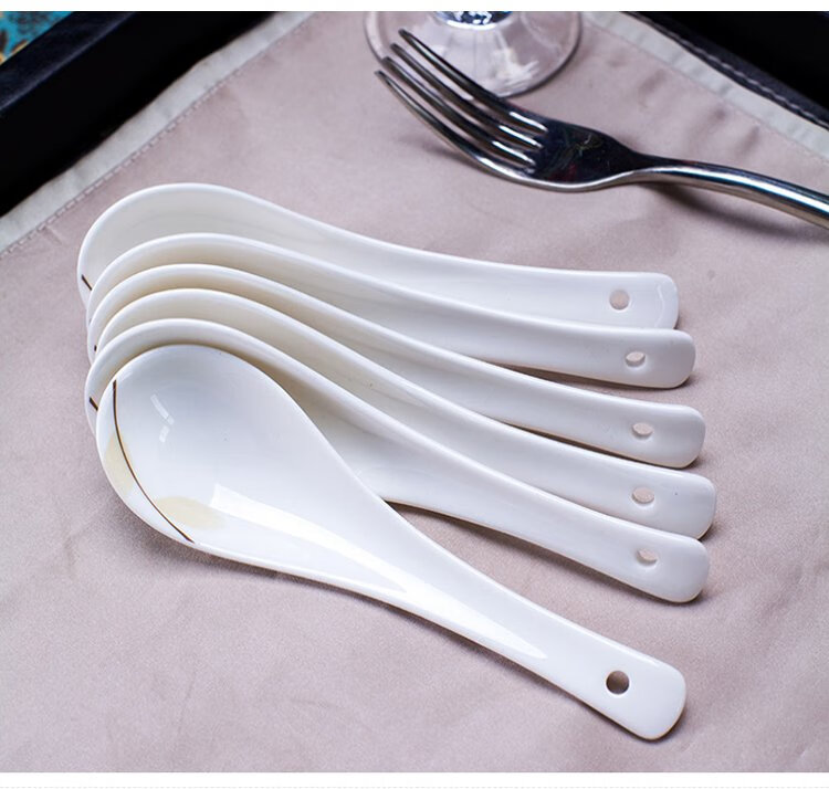 Remec Bone China Fragrant Small Soup Spoon 6 Pack Ceramic Spoon Rice Spoon Simple Bone China Spoon