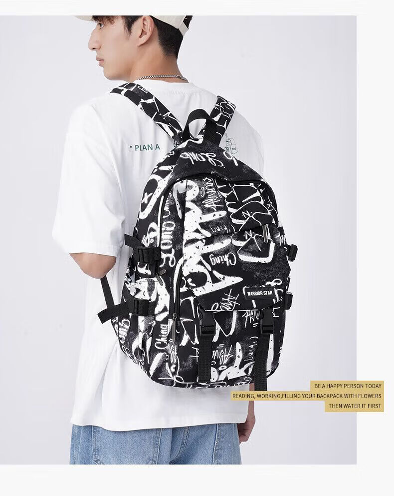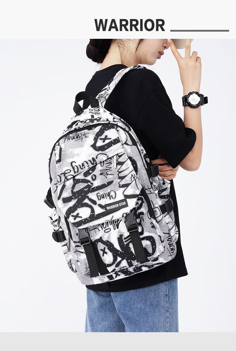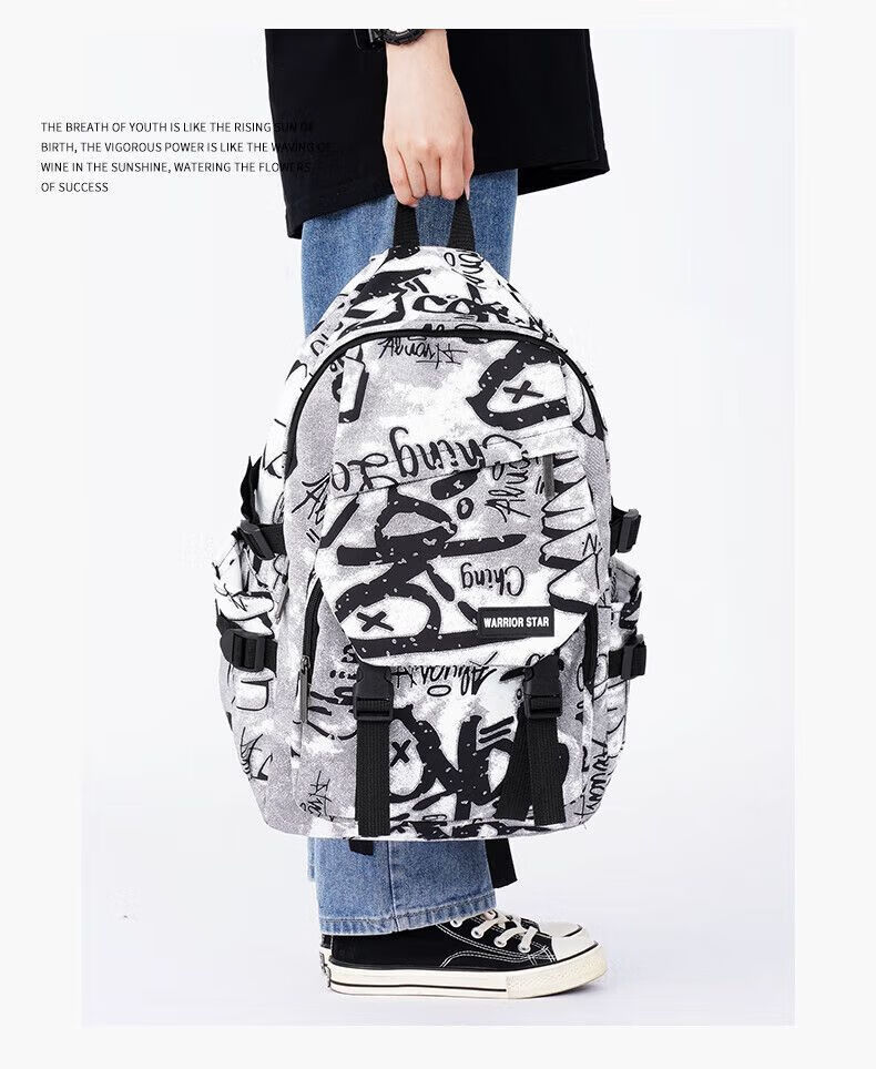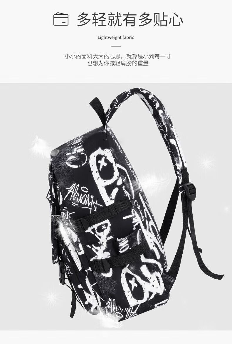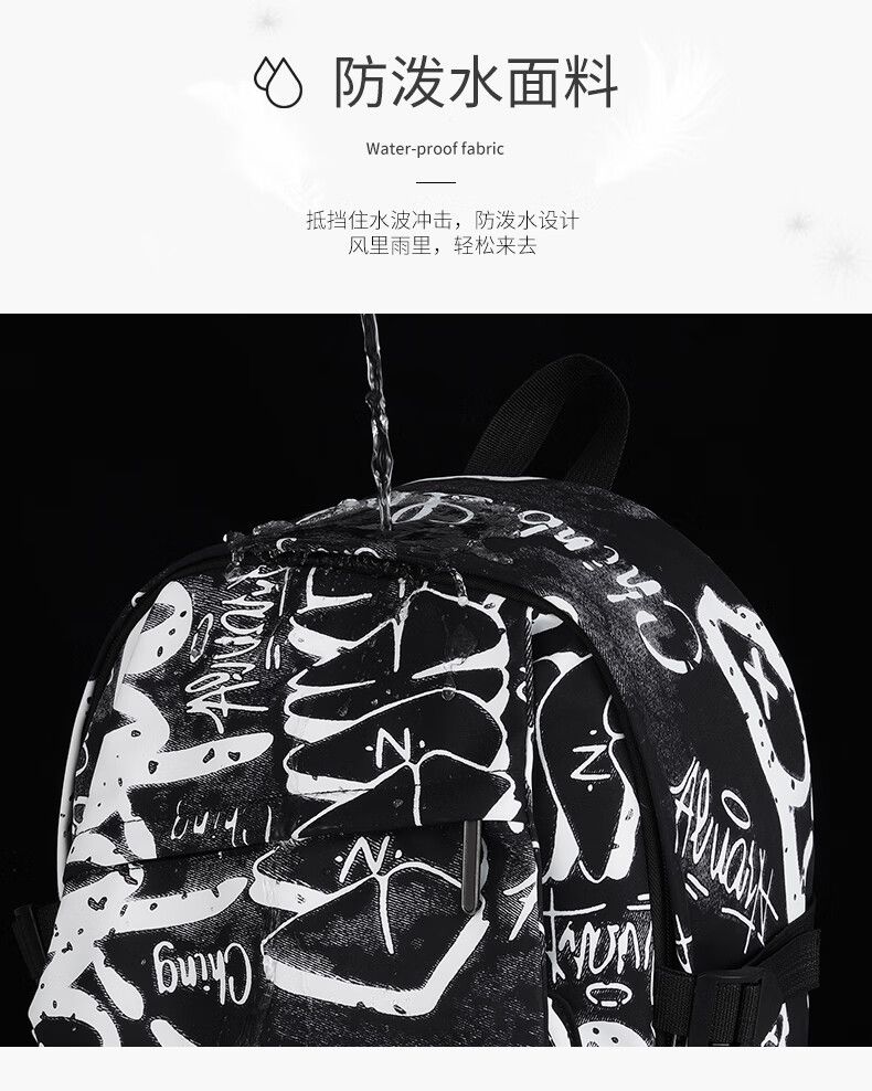 Pull back trendy brand backpack men's large capacity graffiti junior high school student school bag female ins cool casual college student backpack
