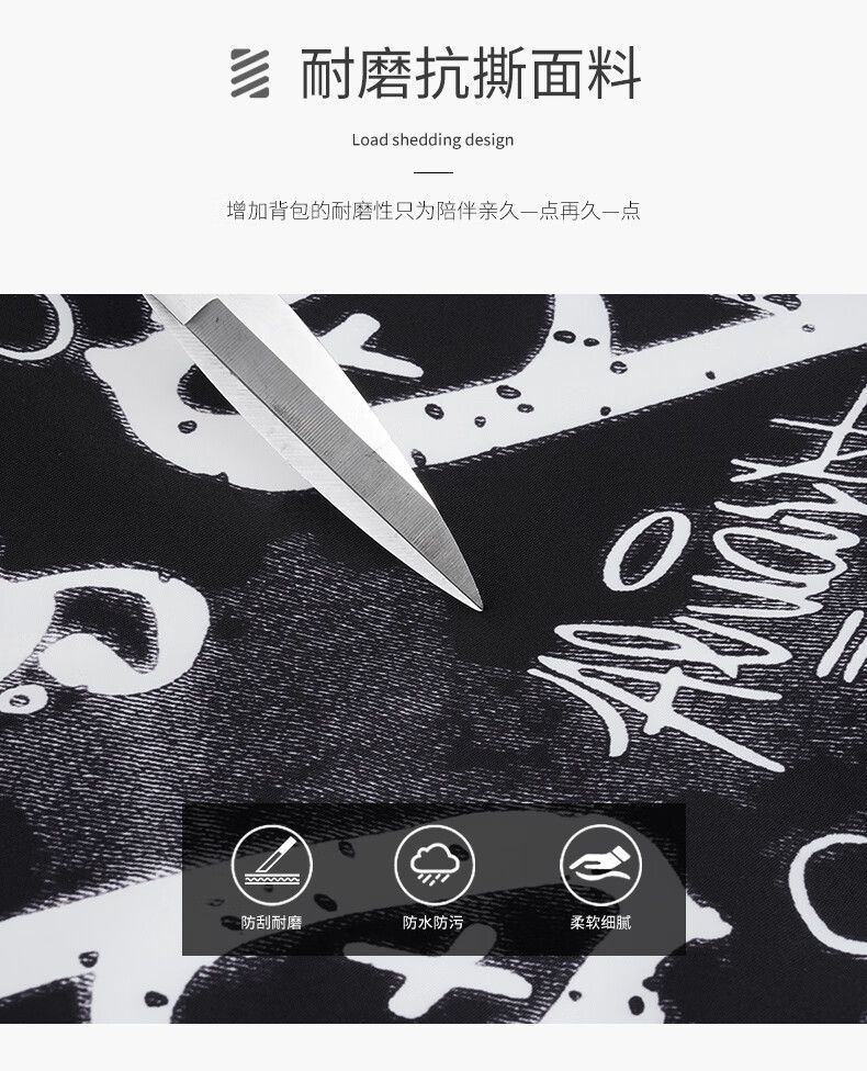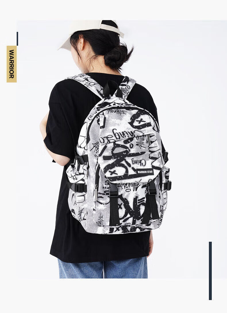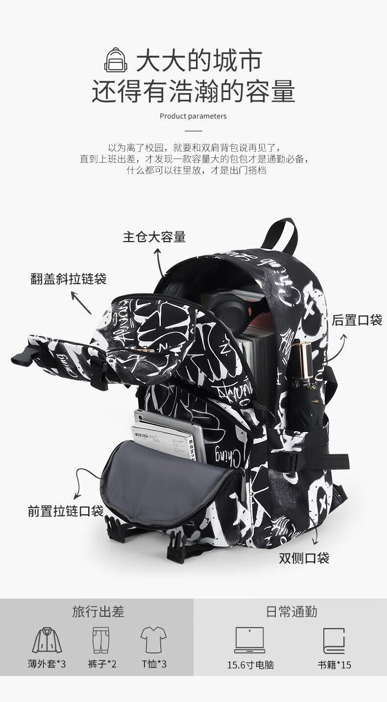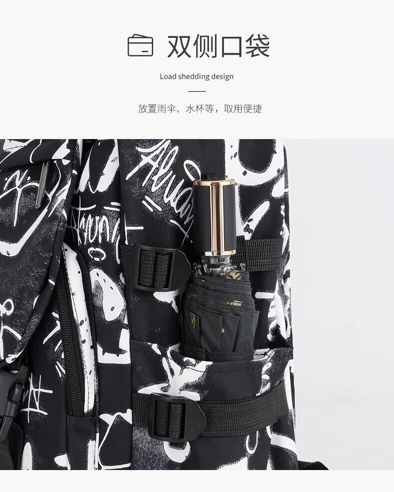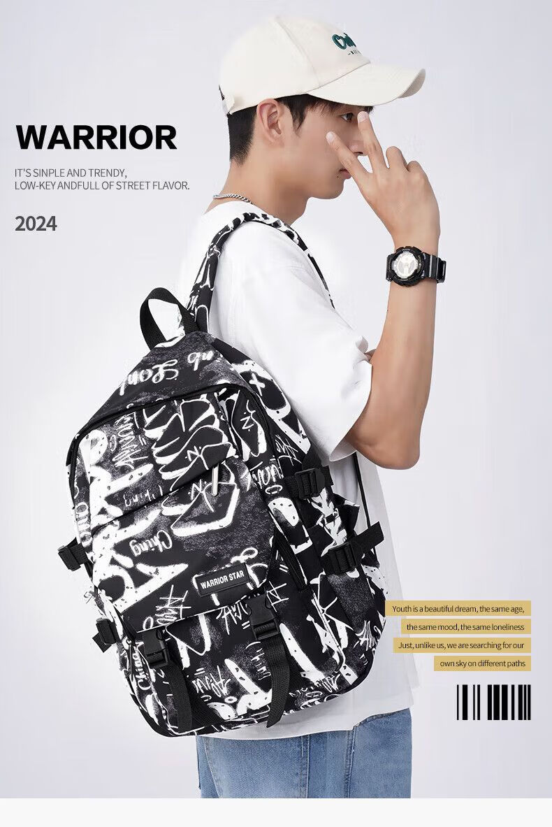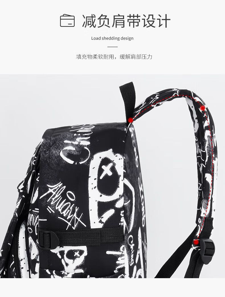 Pull back trendy brand backpack men's large capacity graffiti junior high school student school bag female ins cool casual college student backpack