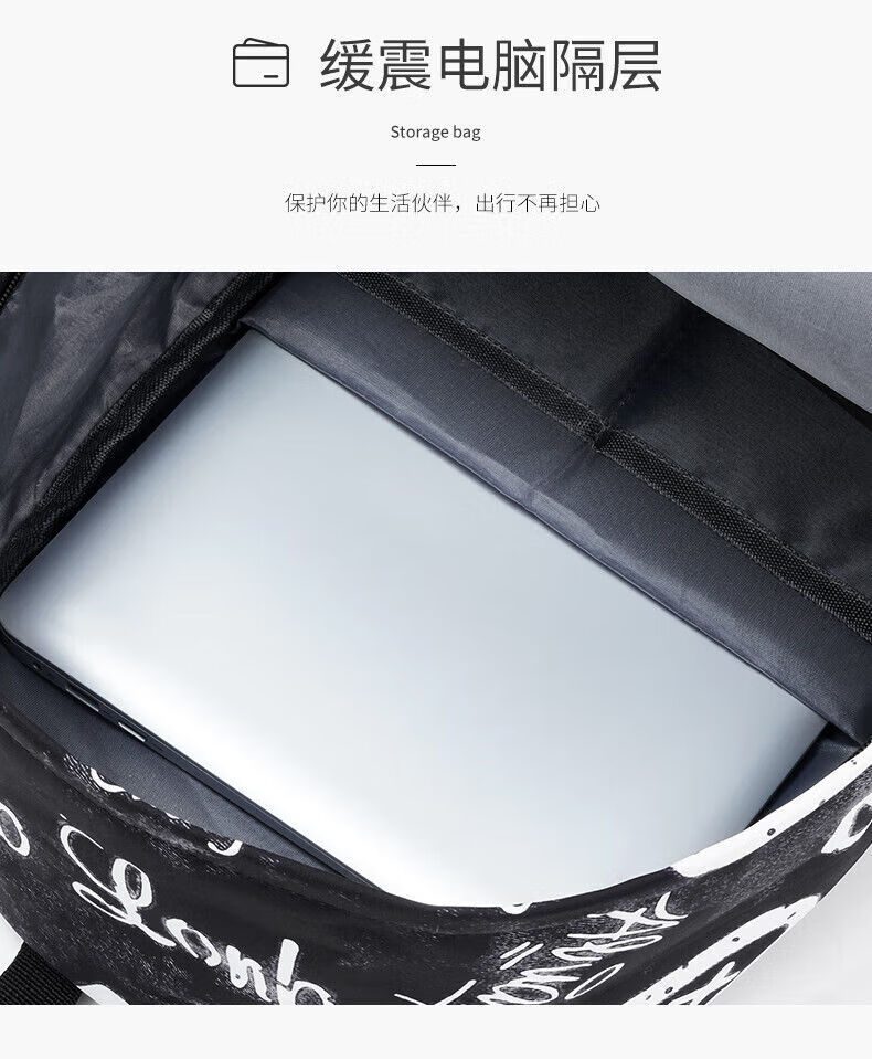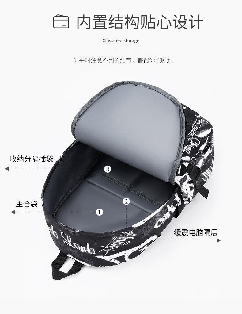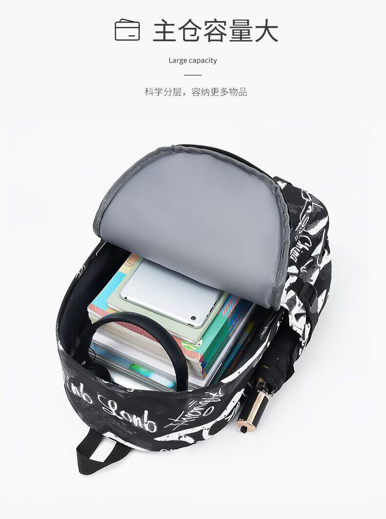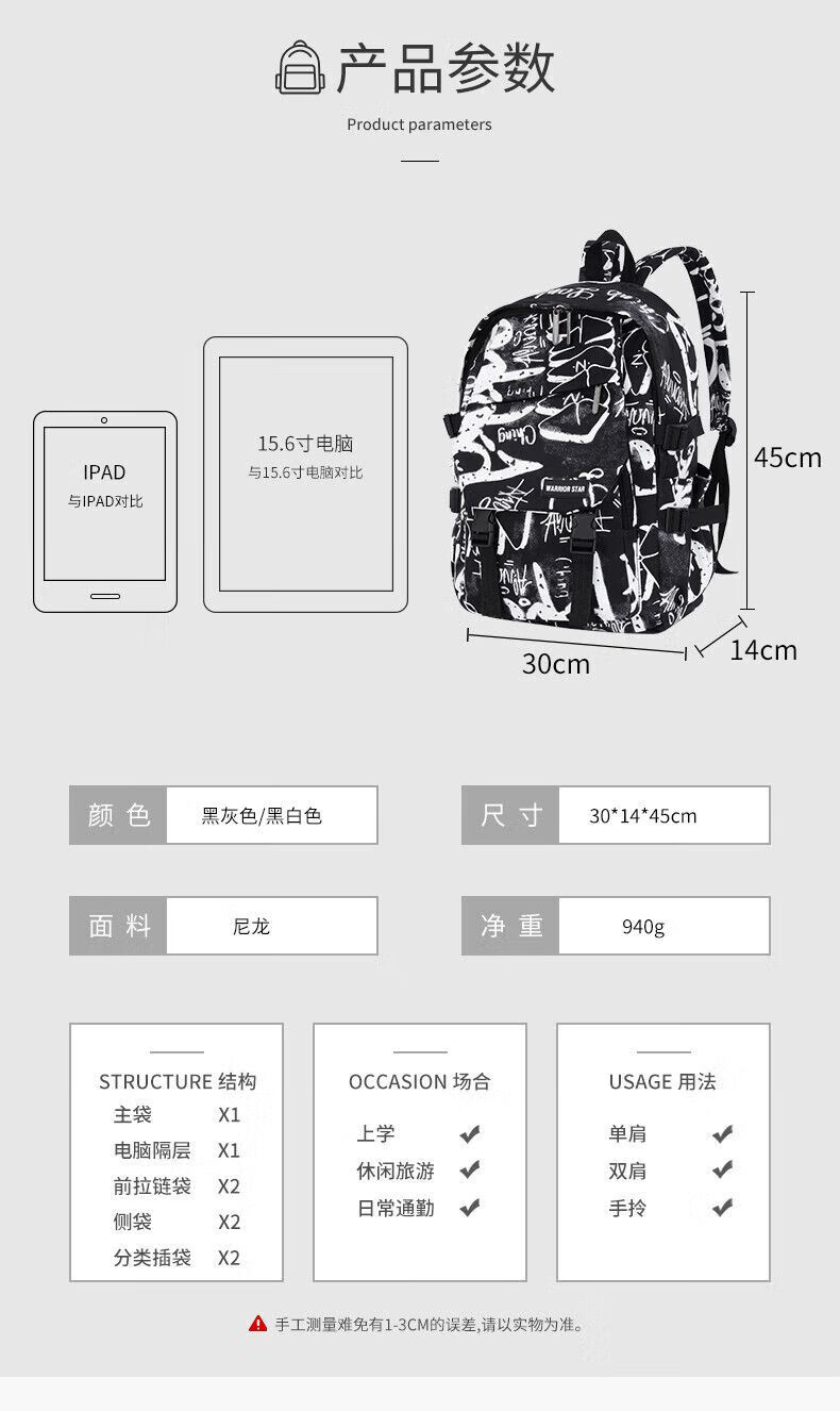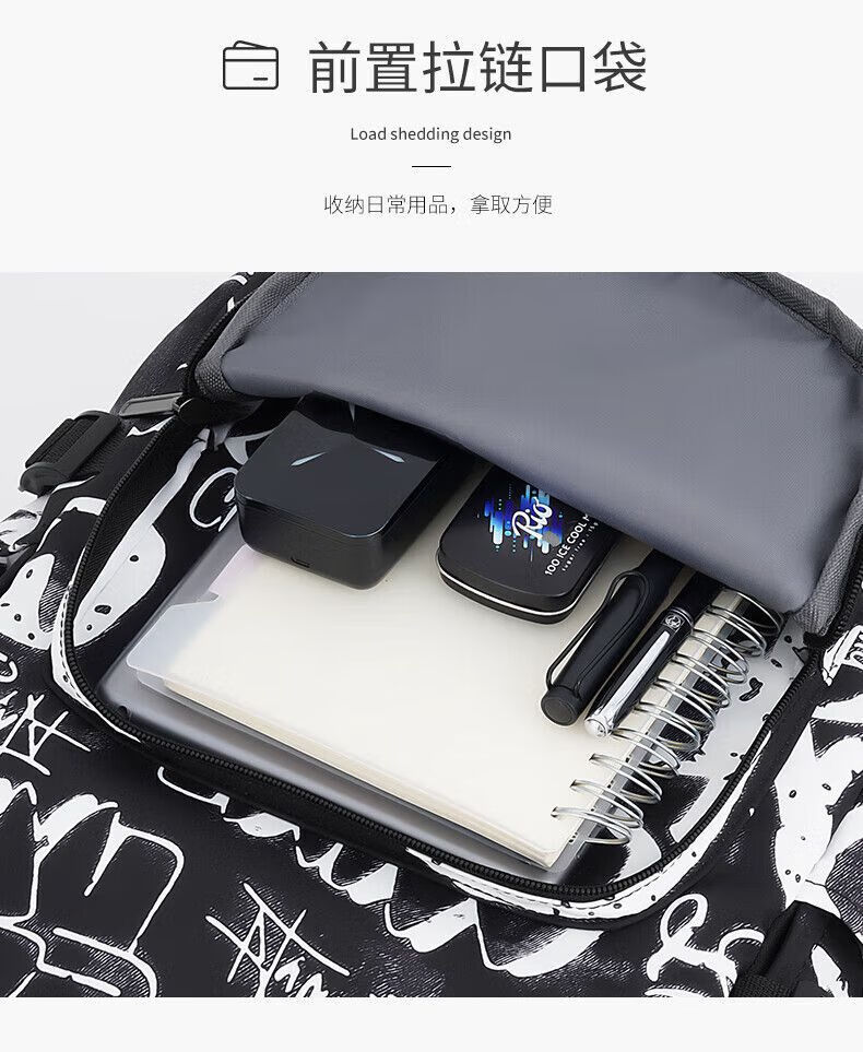 Pull back trendy brand backpack men's large capacity graffiti junior high school student school bag female ins cool casual college student backpack