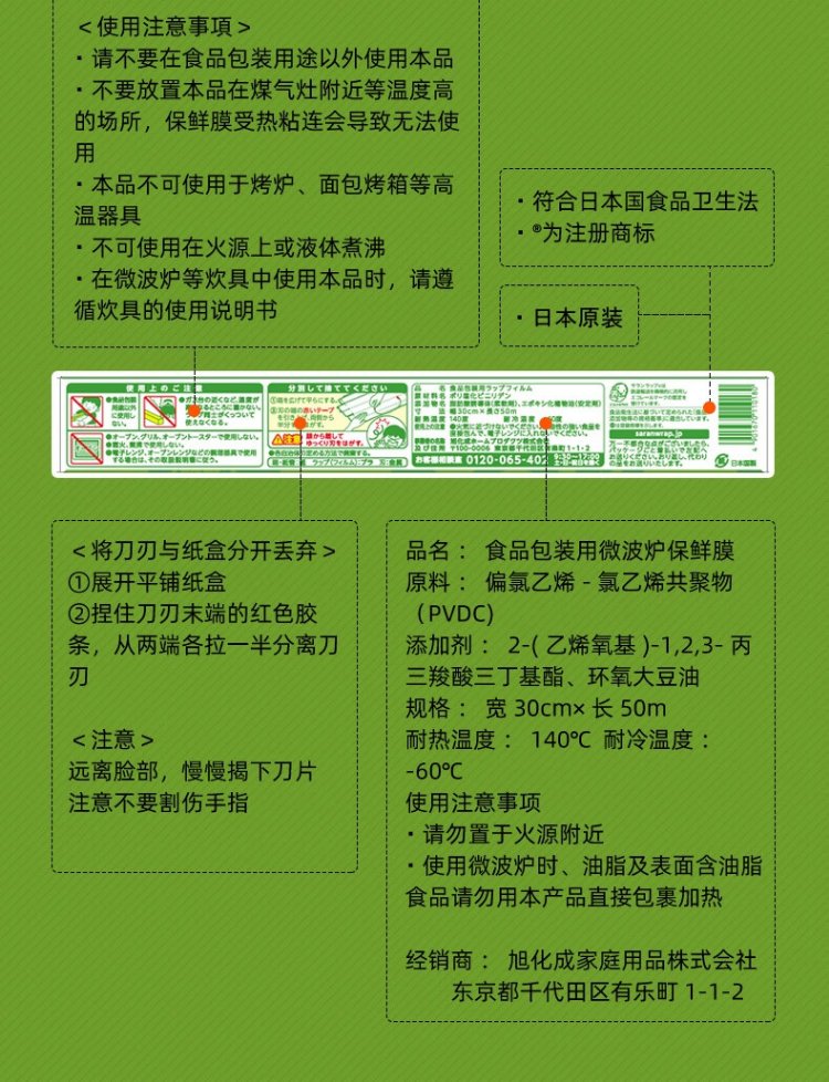 Asahi Baoxian Japan imported PVDC thickened cling film 30cm*20m high temperature resistant with cutter can be heated in a microwave oven