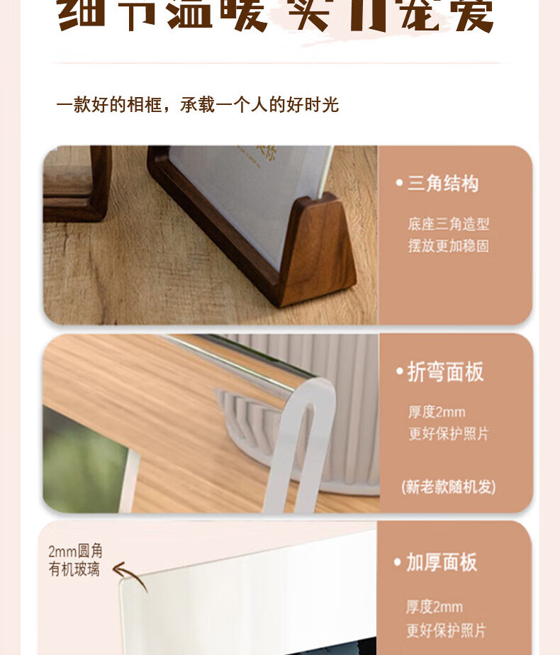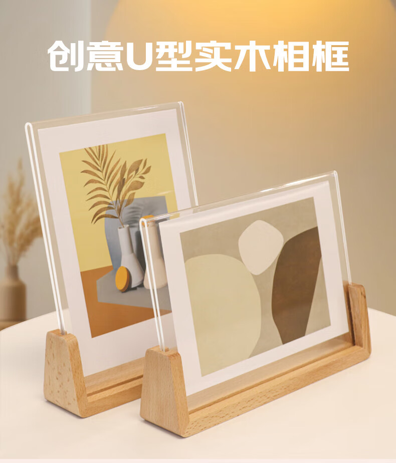 Aimo painted 8-inch solid wood photo frame table couple photo diy mounting transparent acrylic photo frame walnut U-shaped frame vertical version