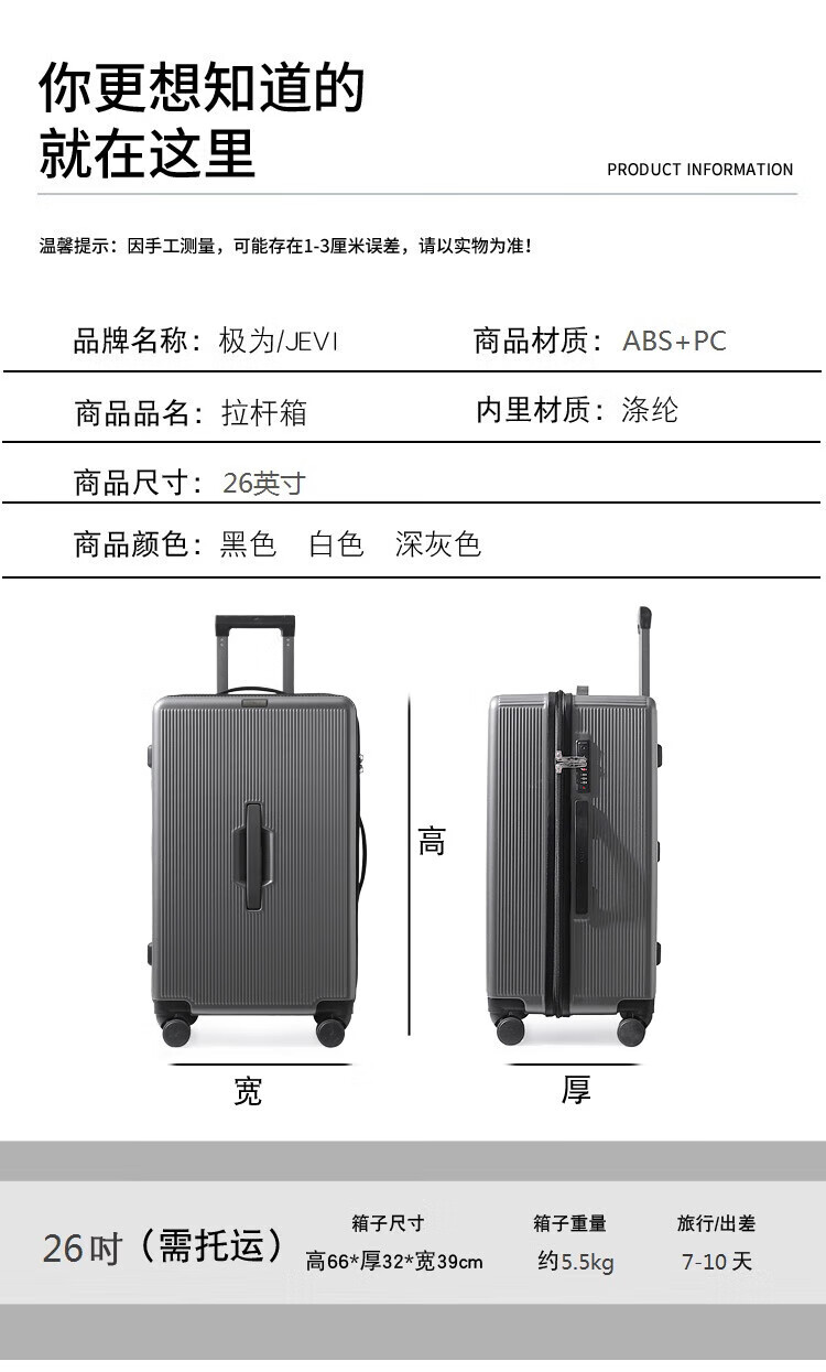 Extremely (JEVI) large-capacity suitcase for male and female students checked trolley suitcase lightweight universal wheel zipper password box 26 inches