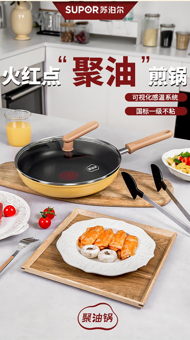 SUPOR frying pan 26cm yellow fire red dot poly-oil pan-fried steak non-stick pan universal induction cooker