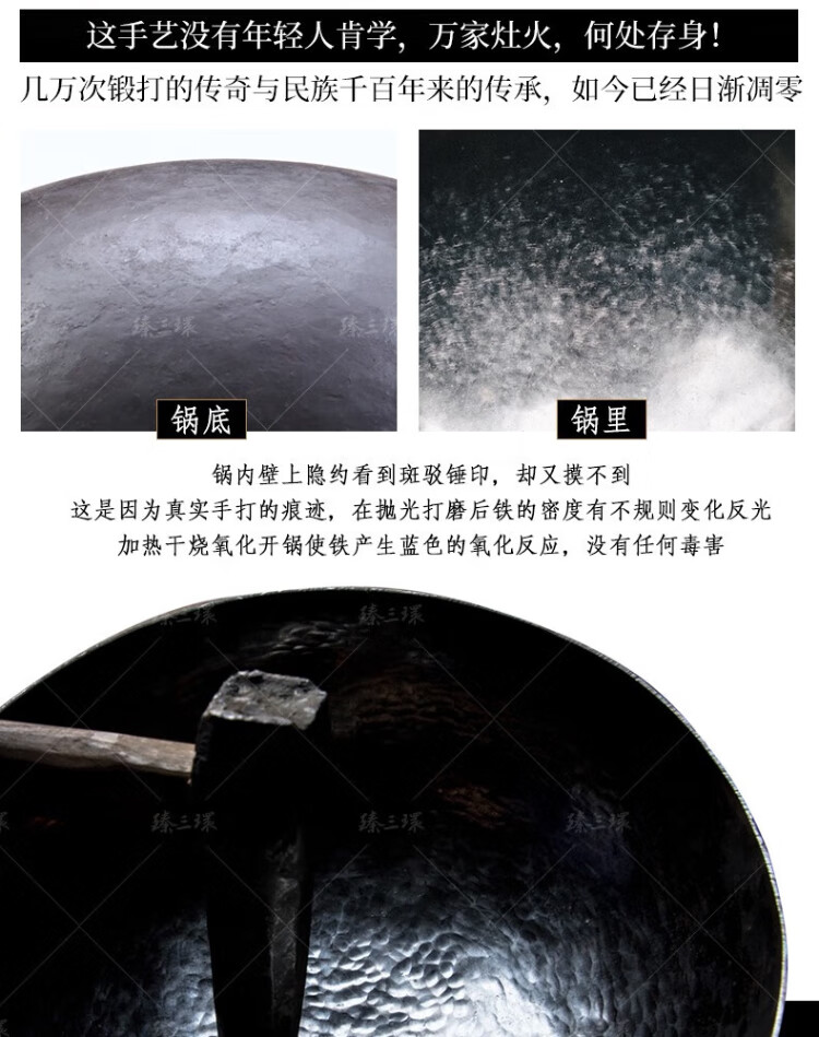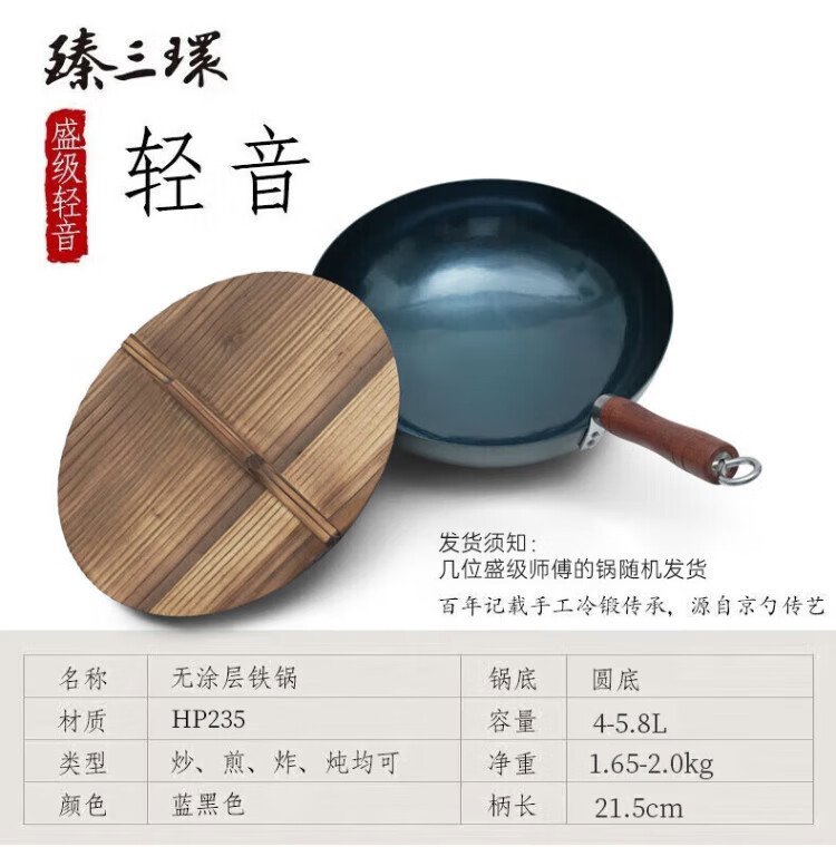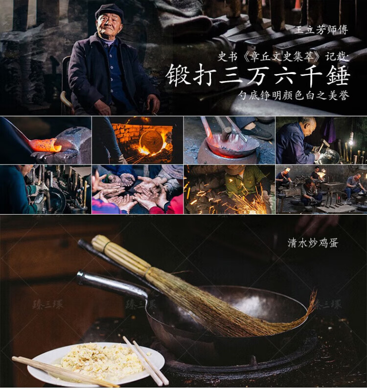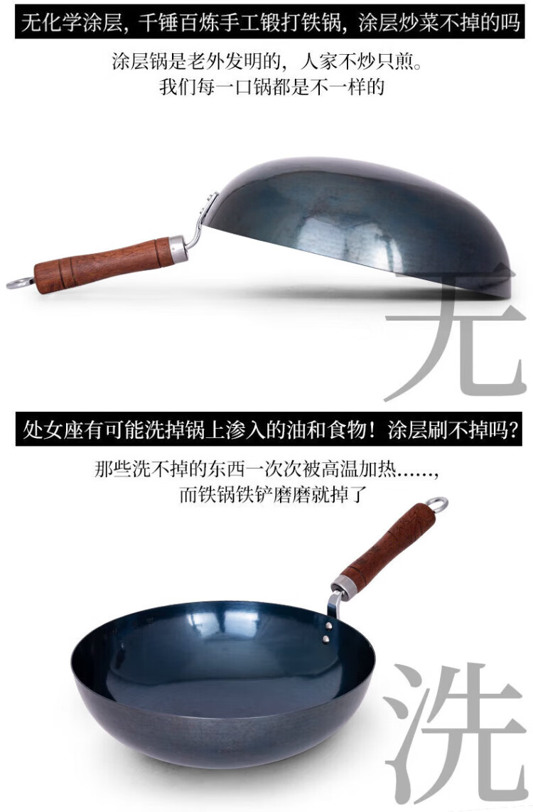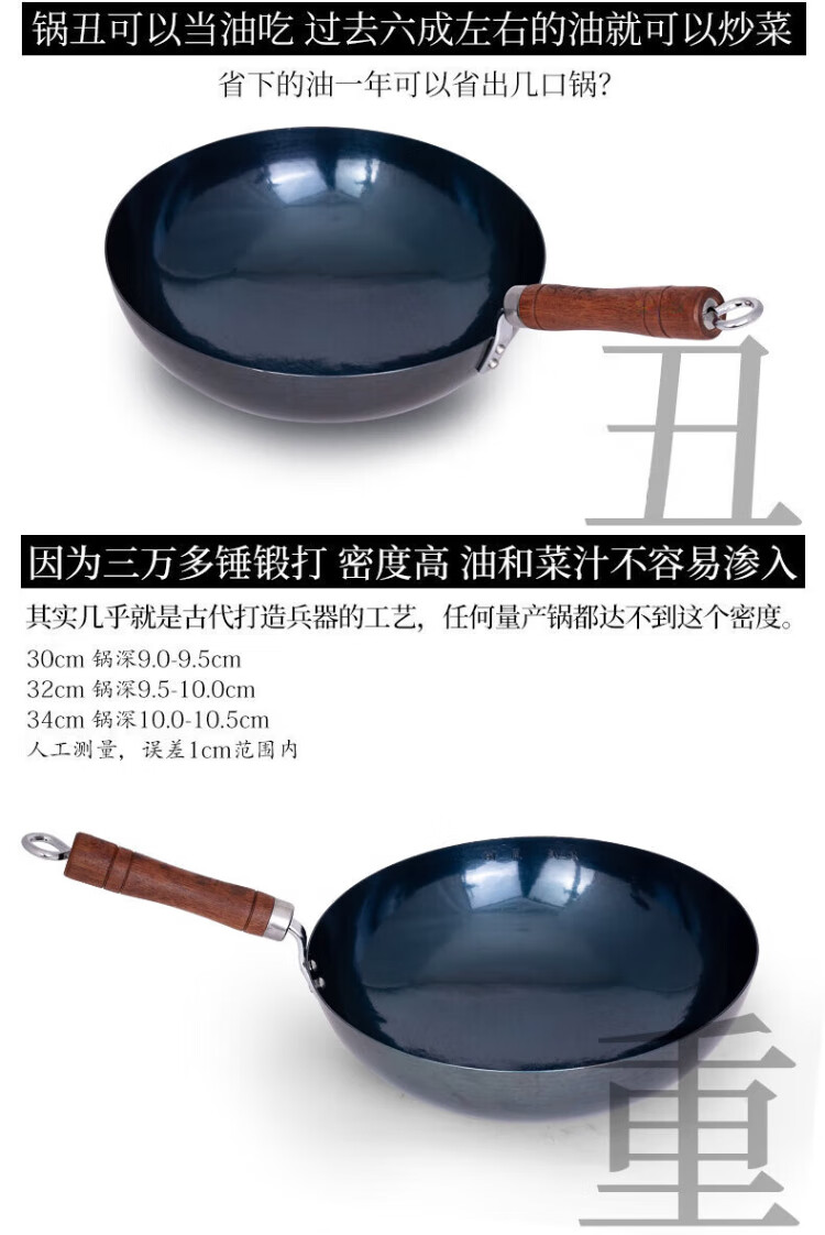 Zhensanhuan Zhangqiu iron pan, uncoated, not easy to stick, wok, forged with 20,000 hammers, wrought iron wok, Sheng-level light sound 32cm