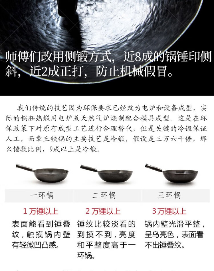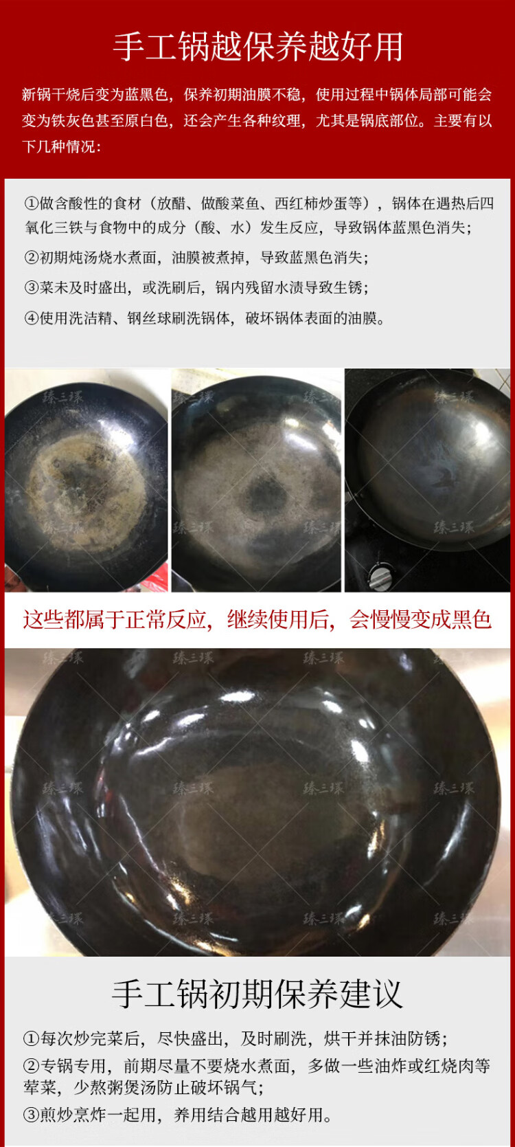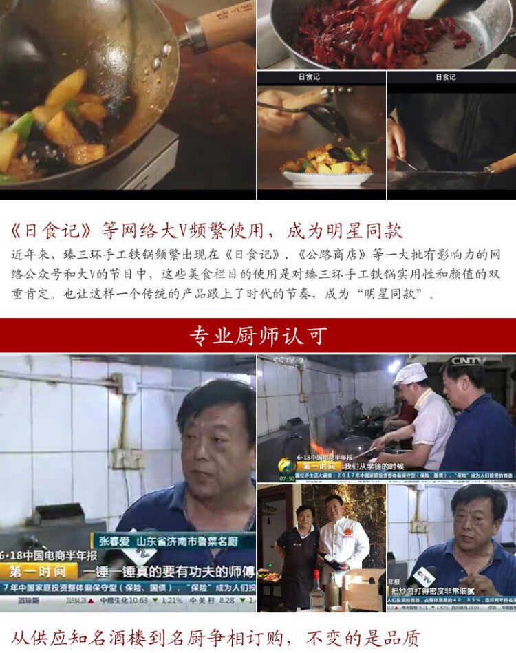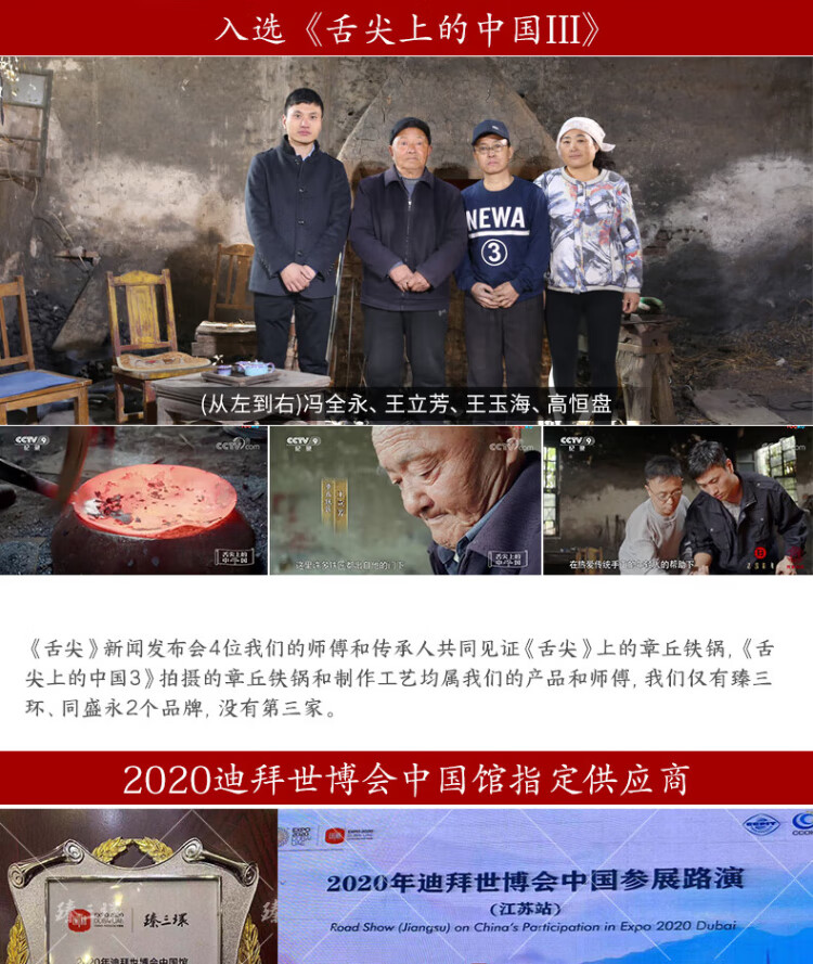 Zhensanhuan Zhangqiu iron pan, uncoated, not easy to stick, wok, forged with 20,000 hammers, wrought iron wok, Sheng-level light sound 32cm