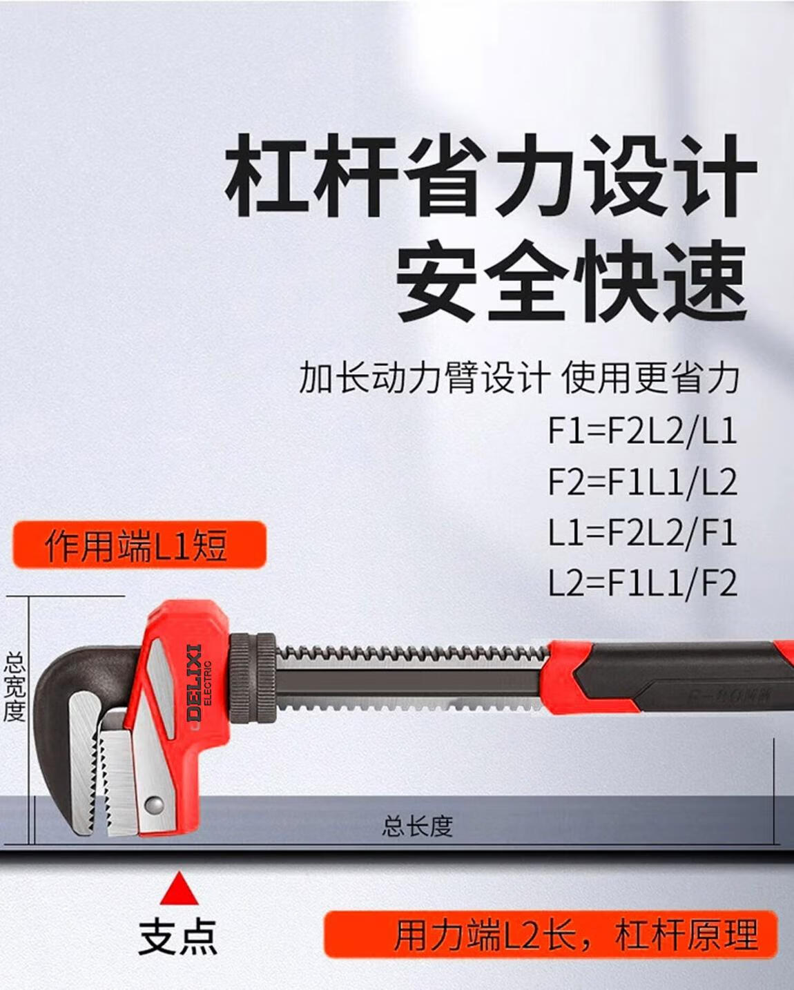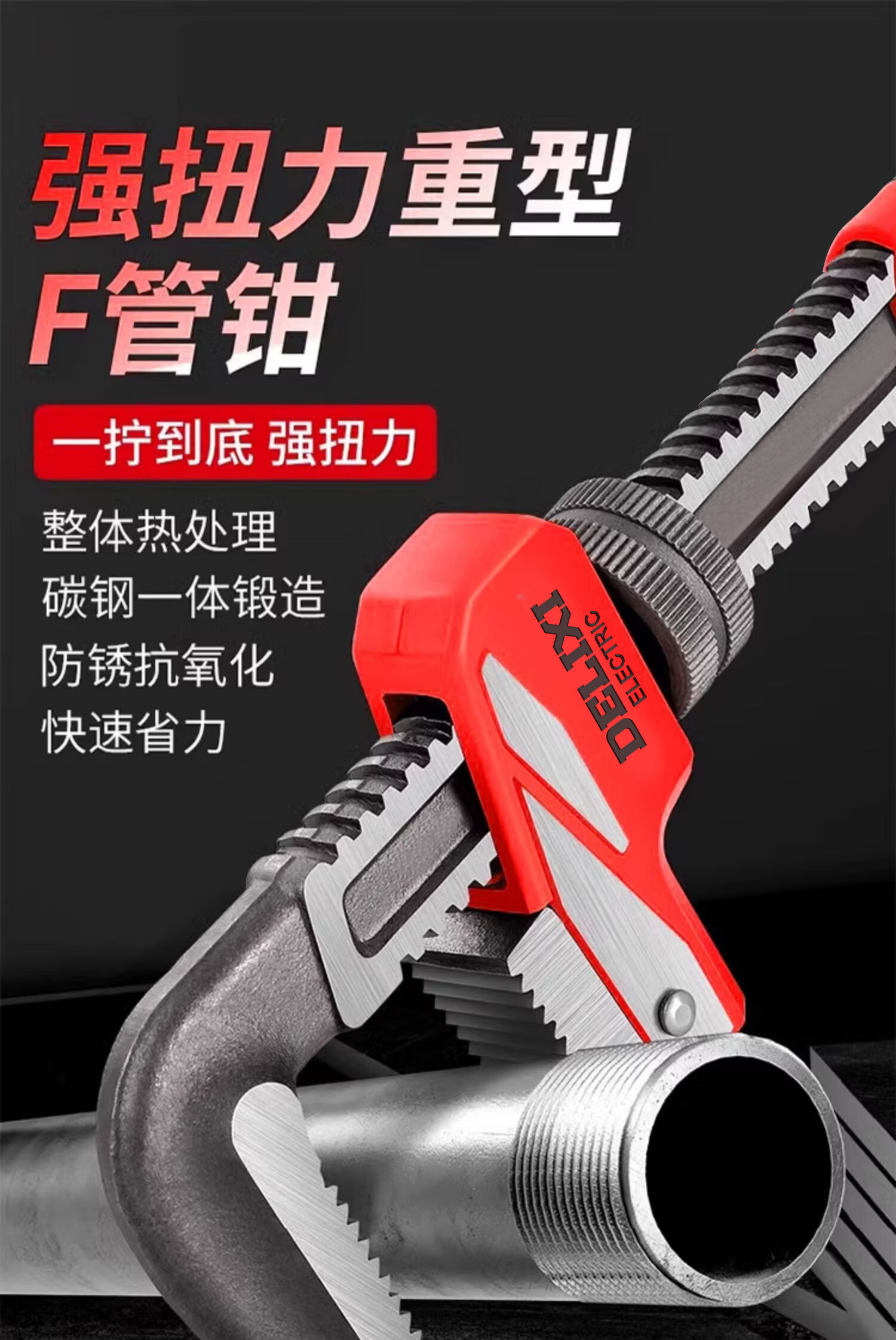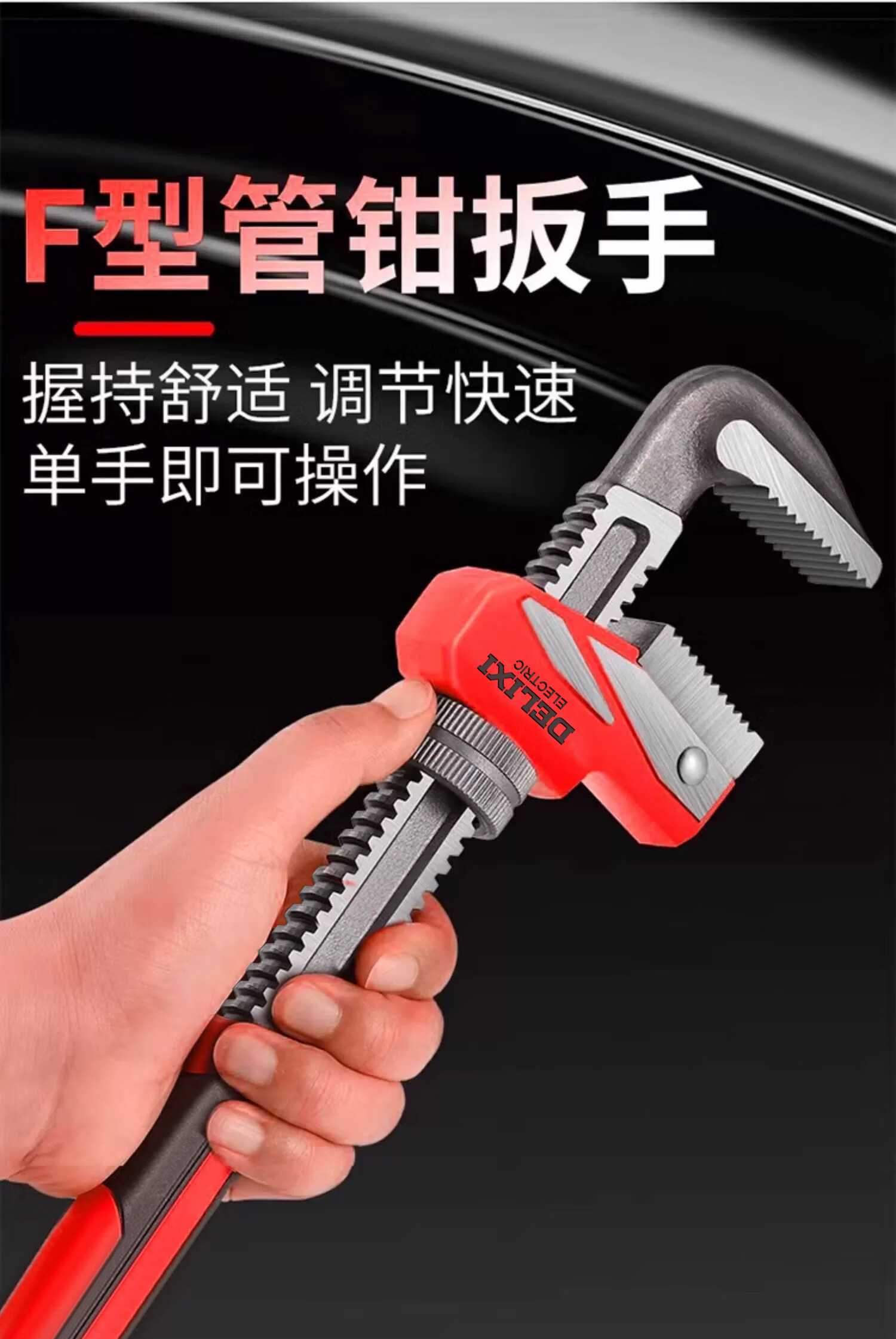 DELIXI ELECTRIC adjustable wrench household pipe wrench universal wrench large opening thickened multi-function F-type water pipe pliers