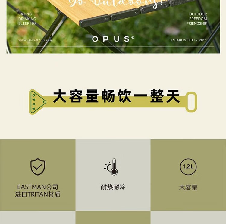 OPUS tea water separation large-capacity sports water cup anti-fall heat-resistant ton bucket Tritan outdoor high-looking big-bellied kettle