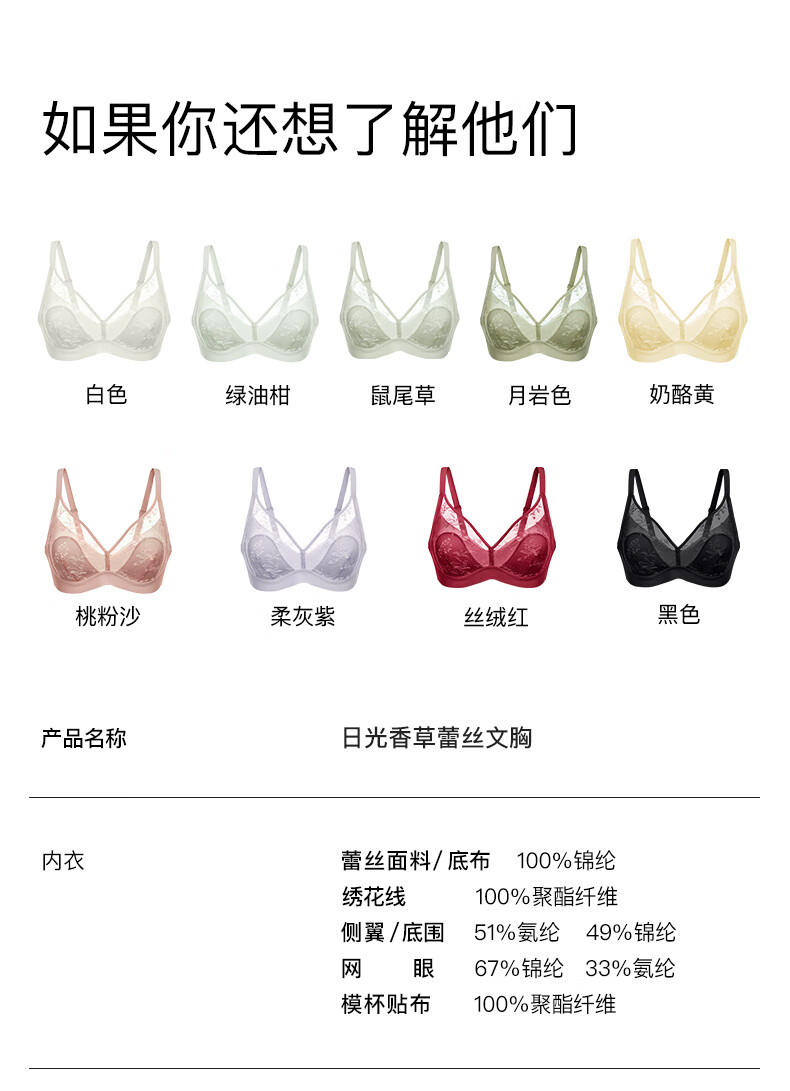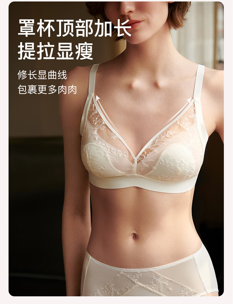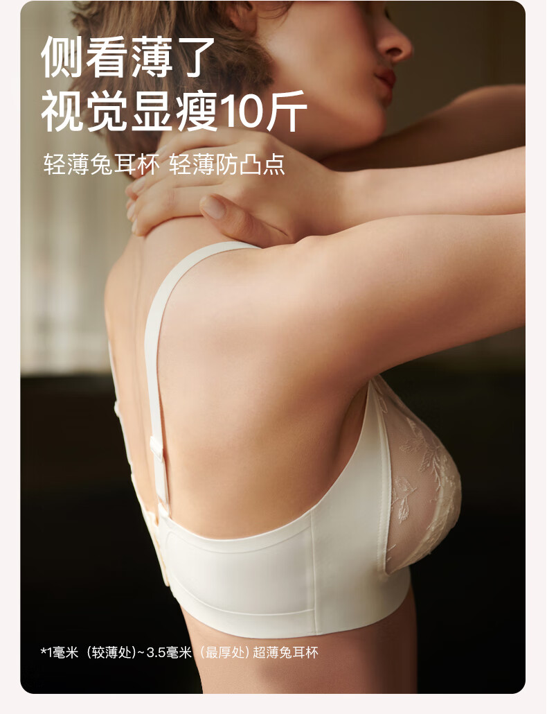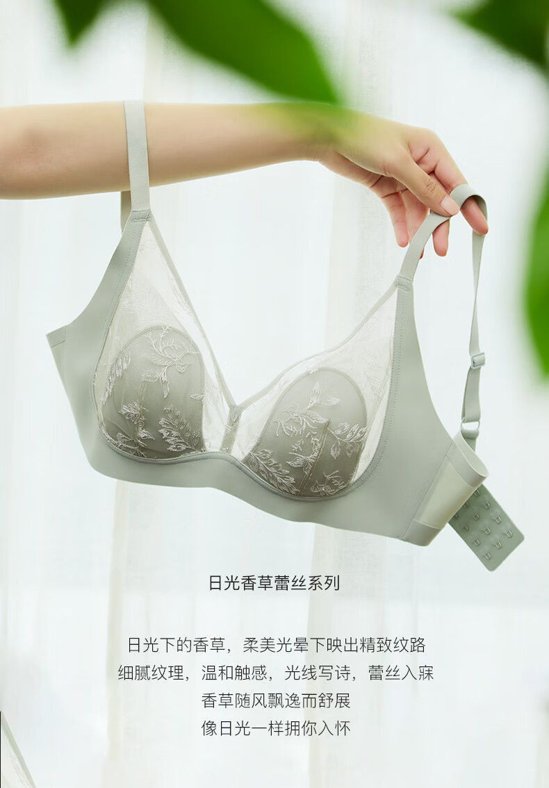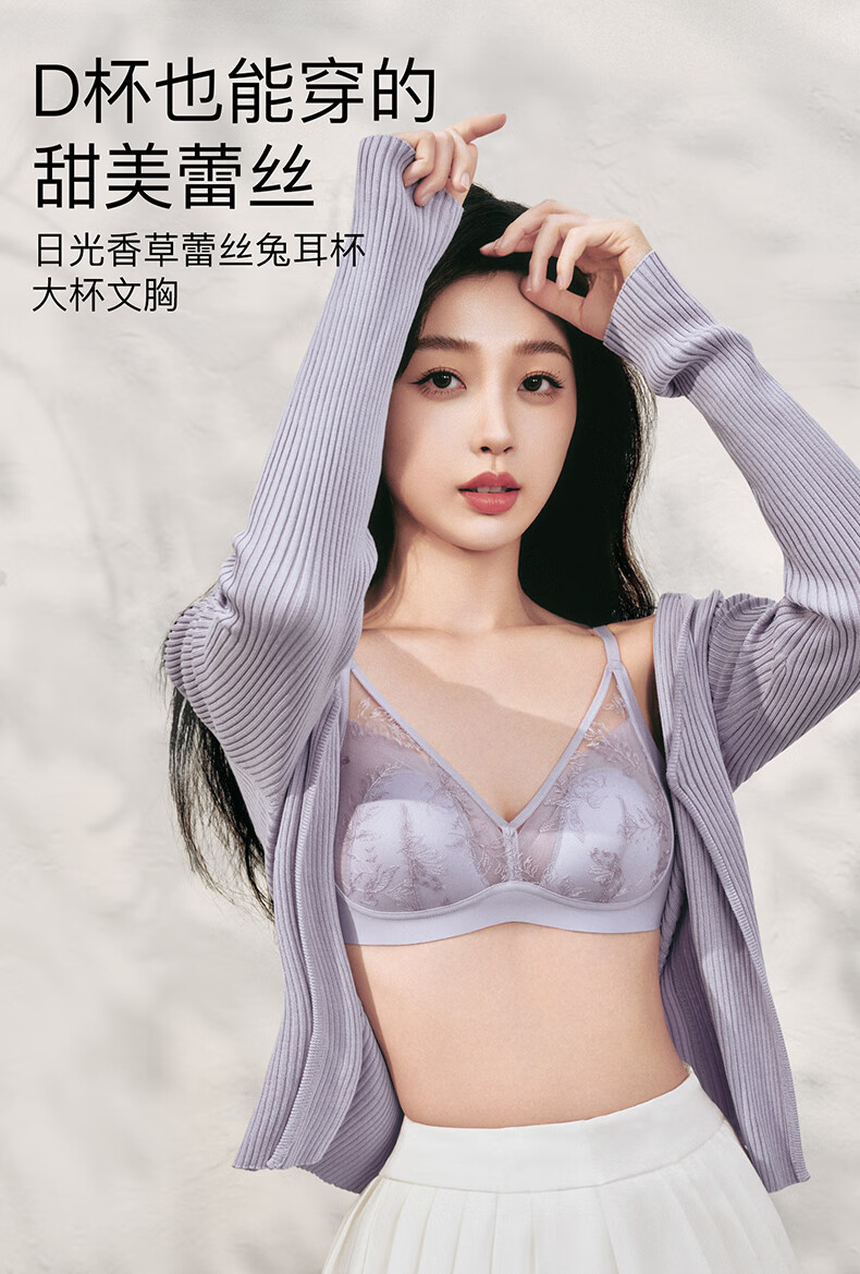 Ubras Yu Shuxin's same style sunlight vanilla lace rabbit ear cup big breast bra no wire bra soft gray purple M