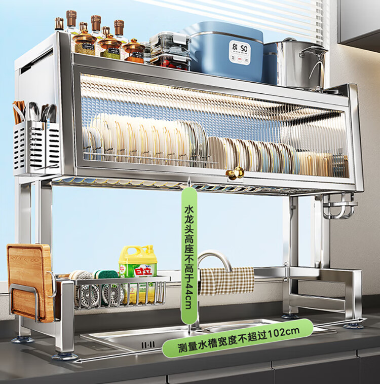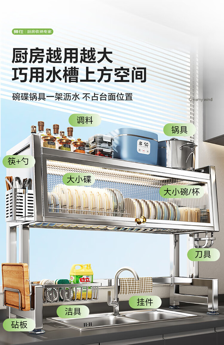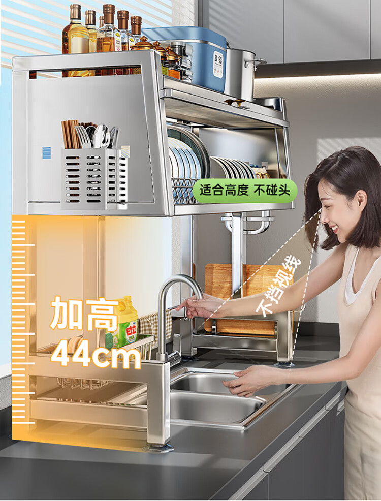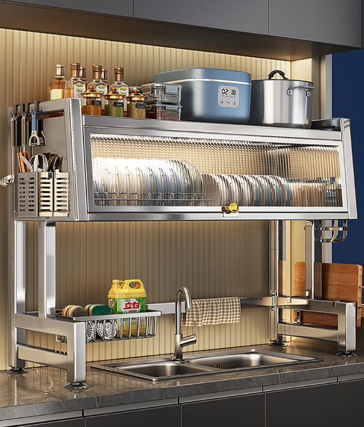Shuaishi kitchen rack stainless steel sink rack dish storage rack sink dishwashing rack drain rack with cabinet door 75 long