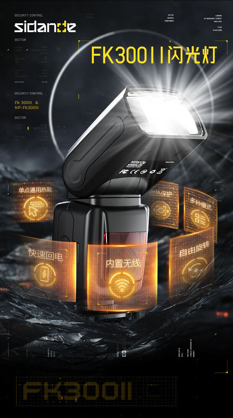 Sidande FK300II second generation universal on-camera flash photography lighting fill light compatible with Canon Nikon Sony SLR camera hot shoe light built-in trigger flash