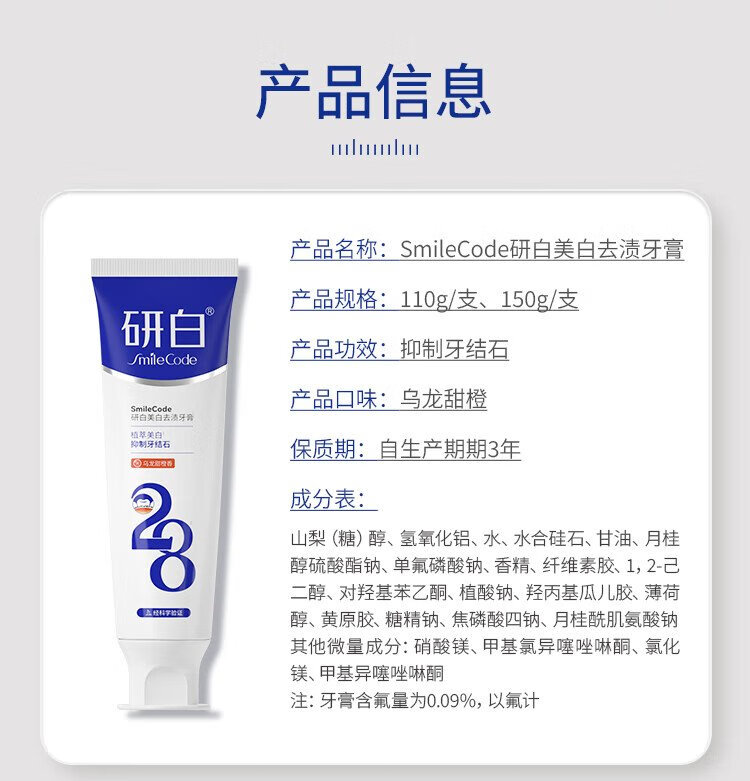 SMILECODE Whitening 28 Whitening and Stain Remover Toothpaste Deep Cleansing, Inhibits Tartar, Freshens Breath and Does Not Return Yellow 150g